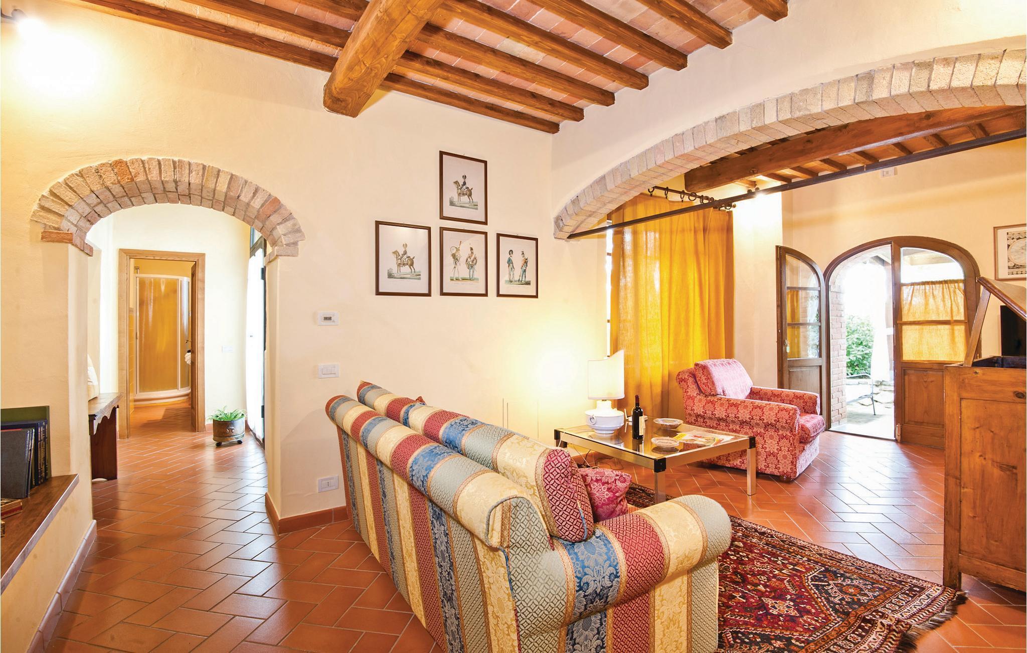 Ferienwohnung mit Gemeinschaftspool im Chianti- Gebiet. Die Wohnung liegt in einem wunderschönen Landhaus inmitten der typisch toskanischen Landschaft, umgeben von Weinbergen und Olivenhainen. Sie hat einen eigenen Eingang und einen privaten Bereich mit Tisch, Stühlen und Grill. Der Pool und die Sonnenliegen sind zur gemeinschaftlichen Nutzung. Nicht zu verpassen ist eine Weinprobe in den Chianti-Weinkellern in der Nähe der Unterkunft sowie ein Ausflug nach Castellina in Chianti (7 km), San Gimignano (18 km), Siena (25 km) oder Florenz, das in einer Autostunde erreichbar ist. Um Florenz zu erreichen, ist es empfehlenswert, die Straße durch das Chianti-Gebiet mit wunderschönem Panorama zu befahren. In Poggibonsi (7 km) finden Sie alle Arten von Geschäften. Das Haus besteht aus drei Wohnungen, von denen eine von den Eigentümern bewohnt wird.