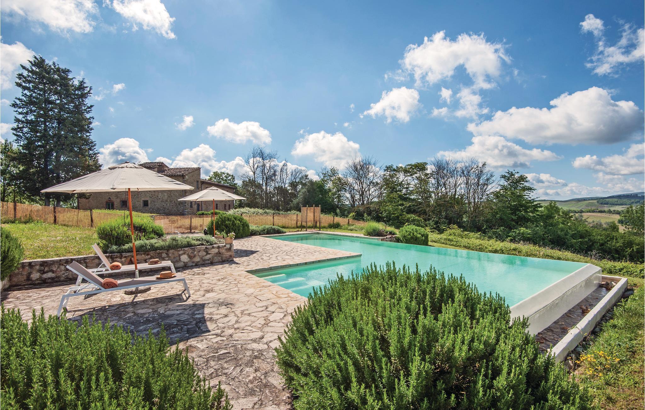 Großzügiges Ferienhaus aus Naturstein in dominierender Hügellage im Herzen des Chianti Classico, 5 km von dem Ort Castellina in Chianti entfernt und zentral zwischen den faszinierenden Kunststädten Siena und Florenz gelegen. Das Ferienhaus befindet sich im Innern eines renommierten, toskanischen Landguts, das natives Olivenöl und einen hervorragenden Wein produziert. Herrliche Aussicht auf die umliegende Landschaft, die Weinberge und Olivenhaine. Den Gästen stehen ein Garten, weitläufige Außenbereiche und ein L-förmiges Schwimmbad zur Verfügung. Zufahrt über ca. 500 m Schotterstraße. Zwei Parkplätze auf dem Grundstück. Der Preis beinhaltet zwei Stunden Reinigung pro Tag, von Montag bis Samstag. Auf Anfrage und gegen Bezahlung vor Ort: Haushaltshilfe (zusätzliche Stunden), Koch und Teilnahme an einem Abendessen (Buffet) mit regionalen Spezialitäten, das wöchentlich vom Vermieter organisiert wird. Klimaanlage in den Schlafzimmern im ersten Stock. In der Gegend gibt es zahlreiche, hervorragende Restaurants, in denen Sie die Spezialitäten der toskanischen Küche genießen können. Möglichkeit zu schönen Spaziergängen in einer malerischen Landschaft. Radda in Chianti 16 km, Siena und San Gimignano 20 km, Florenz 50 km.