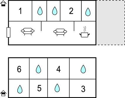 Badezimmer (nr. 6) - WC. Warmes und kaltes Wasser. Dusche