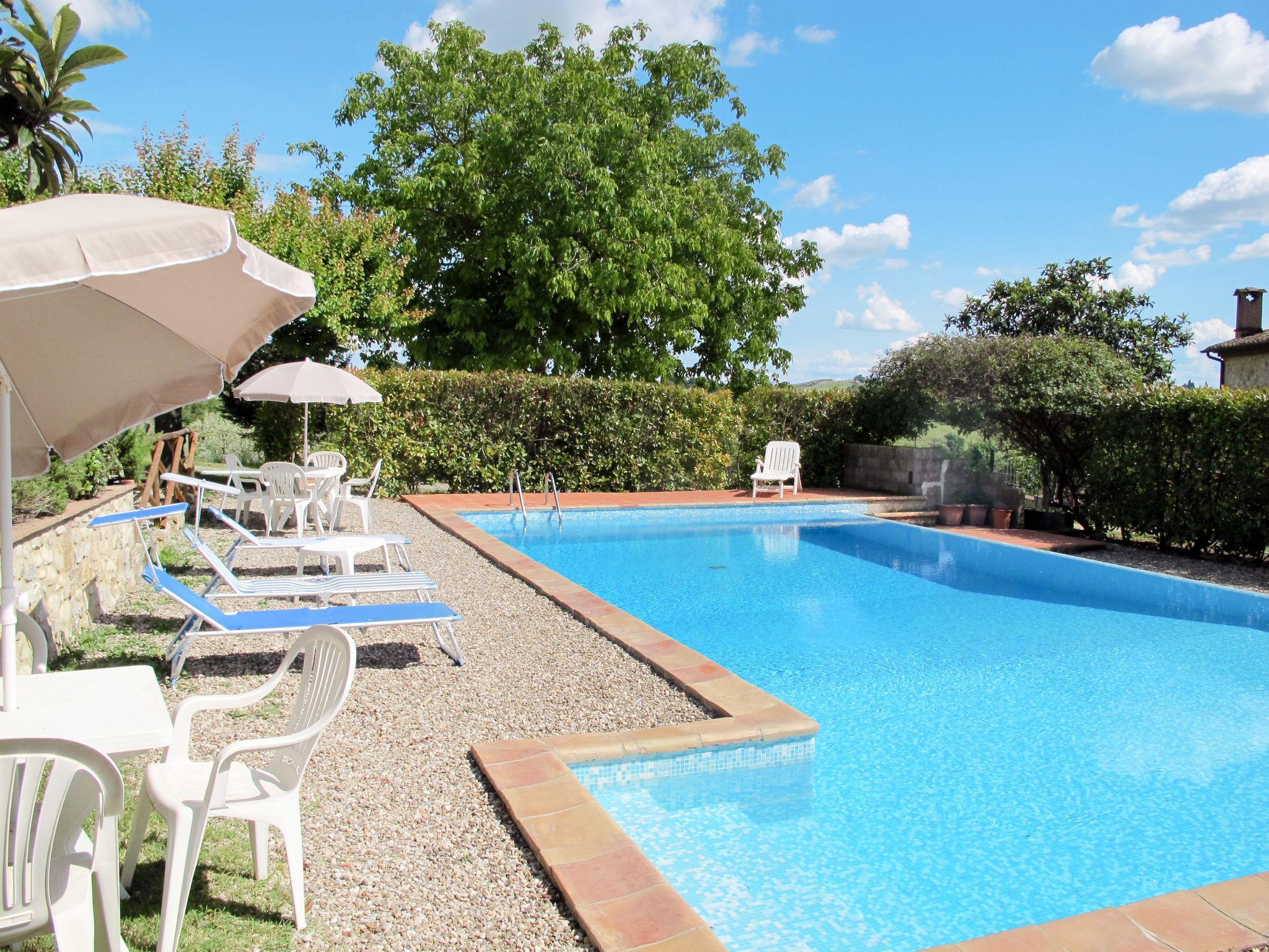 Landsitz "Cignanbianco", umgeben von Feldern und Weinbergen. 3 Häuser in der Residenz. 7 Wohnungen in der Residenz. 5 km vom Zentrum von Castellina in Chianti, 6 km vom Zentrum von Castellina Scalo, 27 km vom Zentrum von Siena, alleinstehende, sonnige Lage. Zur Mitbenutzung: Grundstück 30 ha mit Pflanzen und Bäumen, Naturgarten, Schwimmbad (12 x 6 m, saisonale Verfügbarkeit: 02.Mai. - 03.Okt.). Grill, Poolpflege durch den Besitzer/Gärtner. Im Hause: Waschmaschine (zur Mitbenutzung). 1 km lange Zufahrt (Naturweg). Parkplatz auf dem Grundstück. Einkaufsgeschäft 5 km, Lebensmittelgeschäft 5 km, Supermarkt 5 km, Restaurant 1.7 km, Fahrradverleih 5 km, Bushaltestelle "Castellina Scalo" 6 km, Bahnstation "Castellina Scalo" 6 km, Sandstrand "Cecina Mare" 83 km, Hallenbad 15 km. Nahe gelegene Sehenswürdigkeiten: Moneriggioni 10 km, San Gimignano 29 km, San Galgano 50 km, Volterra 52 km, Montalcino 65 km. Bitte beachten: Babyausstattung (inkl.). Jugendgruppen nur auf Anfrage. Ab Hof Verkauf von bäuerlichen Produkten. Der Besitzer wohnt auf dem gleichen Grundstück.