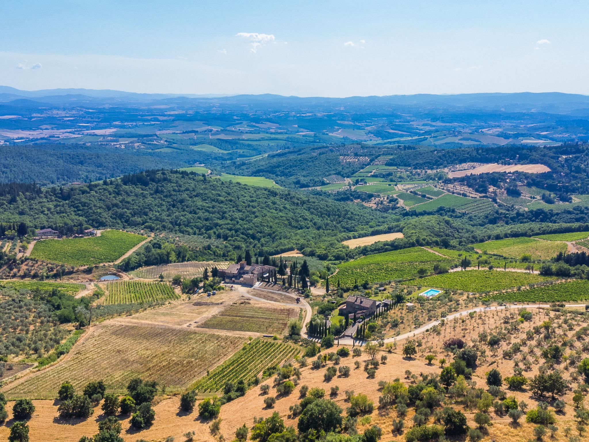 Castellina in Chianti: Grosses, modernes Haus "Terrazza sul Chianti", auf 2 Stockwerken, renoviert im Jahre 2025. 2 Häuser in der Residenz. 1.2 km vom Zentrum von Castellina in Chianti, alleinstehende, erhöhte Lage am Hang, in einem Wohnquartier, Richtung Westen. Zur Mitbenutzung: naturbelassenes Grundstück (eingezäunt), Parkplatz beim Haus auf dem Grundstück. Einkaufsgeschäft 1300 km, Lebensmittelgeschäft 1.3 km, Supermarkt 1.3 km, Restaurant 1 km, Bäckerei 1300 km, Bushaltestelle "Chiantigiana" 30 m, Bahnstation "Castellina Scalo" 7 km, Sandstrand "Cecina Mare" 95 km, Freibad 1 km. Nahe gelegene Sehenswürdigkeiten: Siena 20 km, Greve in Chianti 20 km, Radda in Chianti 12 km, Gaiole in Chianti 22 km, San Gimignano 27 km, Firenze 44 km. Bitte beachten: Babyausstattung (inkl.). Jugendgruppen nur auf Anfrage. Ein Teil des Hauses ist geschlossen und nicht bewohnt. Der Besitzer wohnt auf dem gleichen Grundstück. Hauptstrasse in der Nähe.