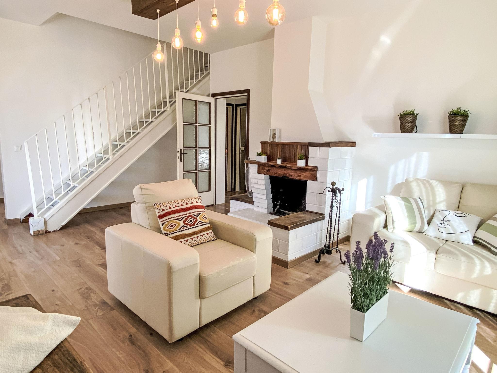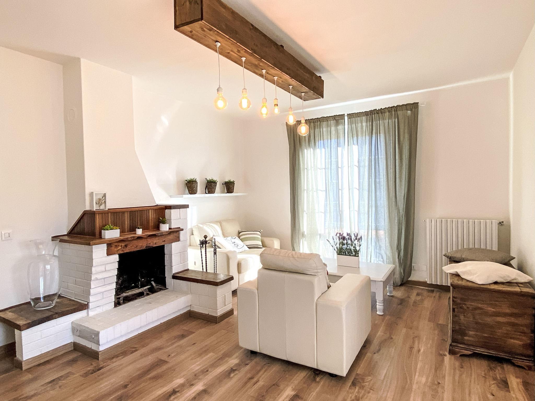 6-Zimmer-Haus 130 m2 auf 2 Stockwerken. Geräumig und hell, zweckmässig und modern eingerichtet: Obergeschoss: (Aussentreppe) offenes Wohn-/Esszimmer mit offenem Kamin (nur Deko), Esstisch und TV (Flachbildschirm), Klimaanlage. Ausgang zum Balkon. 2 Doppelzimmer. Küche (Backofen, Geschirrspüler, Gasherd, 5 Flammen, Toaster, Wasserkocher, Mikrowelle, elektrische Kaffeemaschine). Dusche/Bidet/WC. Keine Heizmöglichkeit. 2. Obergeschoss: (steile Treppe) abgeschrägt 1 Doppelzimmer. Abgeschrägt 1 Doppelzimmer mit 1 Doppeldiwanbett. Abgeschrägt 1 Zimmer mit 2 Betten. Bad. Balkon 5 m2, Gartensitzplatz überdacht. Terrassenmöbel, Gartengrill, Liegestühle. Schöne Fernsicht auf die Landschaft. Zur Verfügung: Waschmaschine, Fliegengitter, Babybett bis 3 Jahre, Haartrockner, Wickelkommode. Internet (WLAN, gratis). Bitte beachten: Maximal 2 Haustiere/Hunde erlaubt. Rauchmelder, Feuerlöscher. IT050010C2PYA15TW
