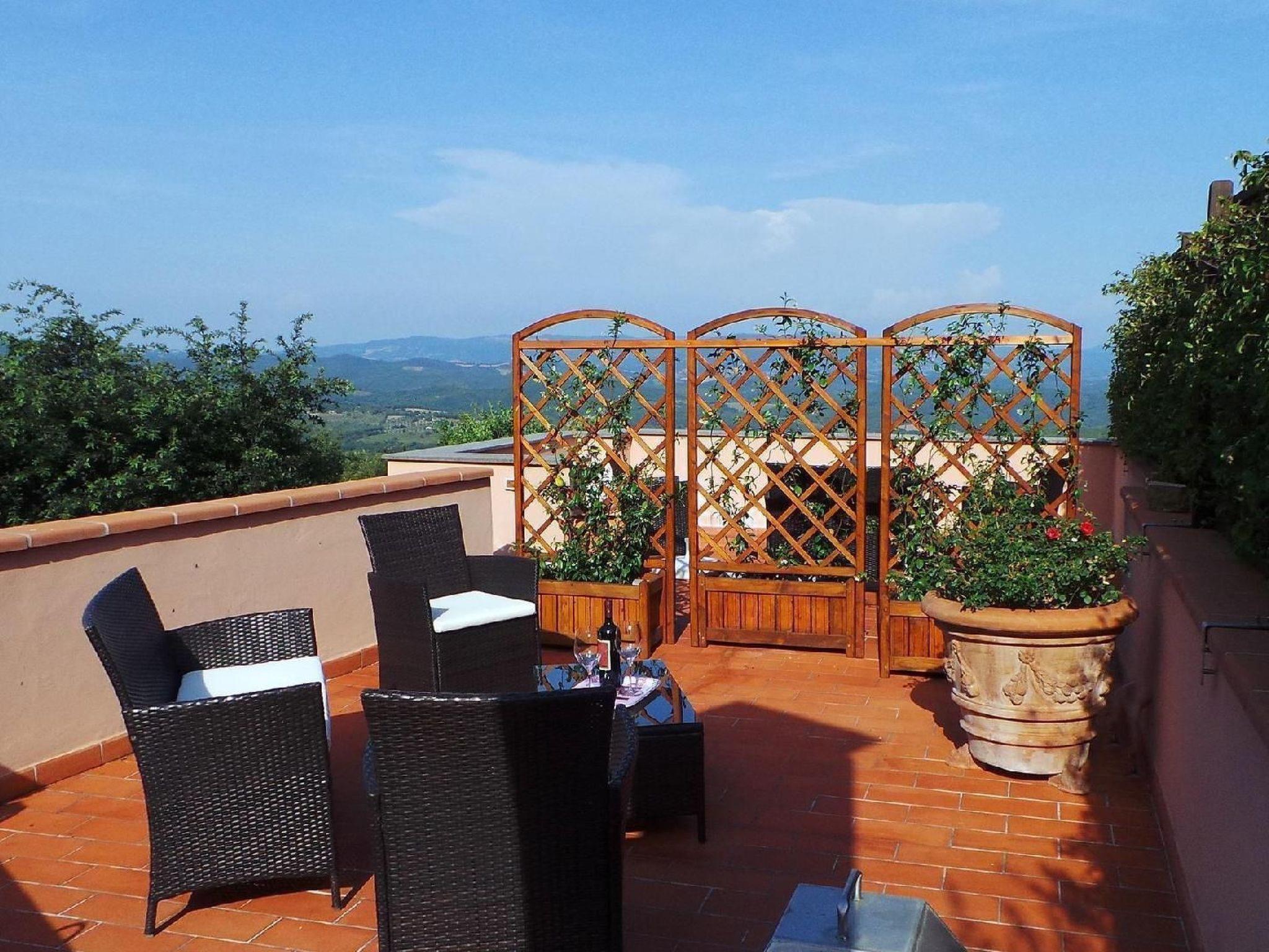 Die Wohnung verfügt über eine hübsche Terrasse mit Holztischen und -stühlen, die zum Essen im Freien einlädt, während man den spektakulären 180-Grad-Blick auf die toskanische Landschaft genießen kann. Die Gäste haben außerdem exklusiven Zugang zu einem festen Grill für unvergessliche Barbecues unter dem Sternenhimmel und einer privaten Terrasse/Solarium, die für entspannende Momente im Herzen der Natur ausgestattet ist.