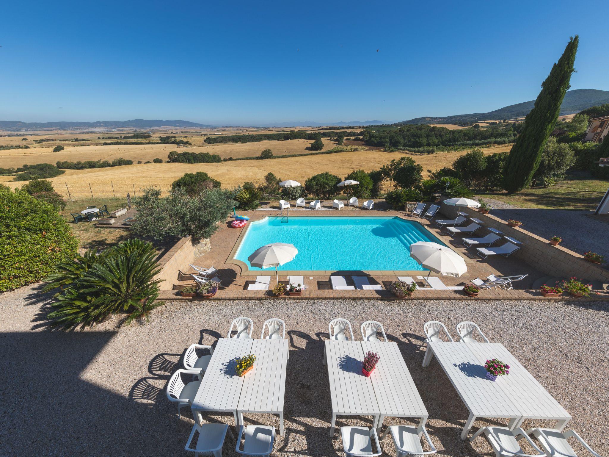 Die Villa kann bis zu 24 Personen beherbergen und genießt dank ihrer dominanten Lage einen atemberaubenden Blick über die Landschaft bis zum Meer, 12 km entfernt.