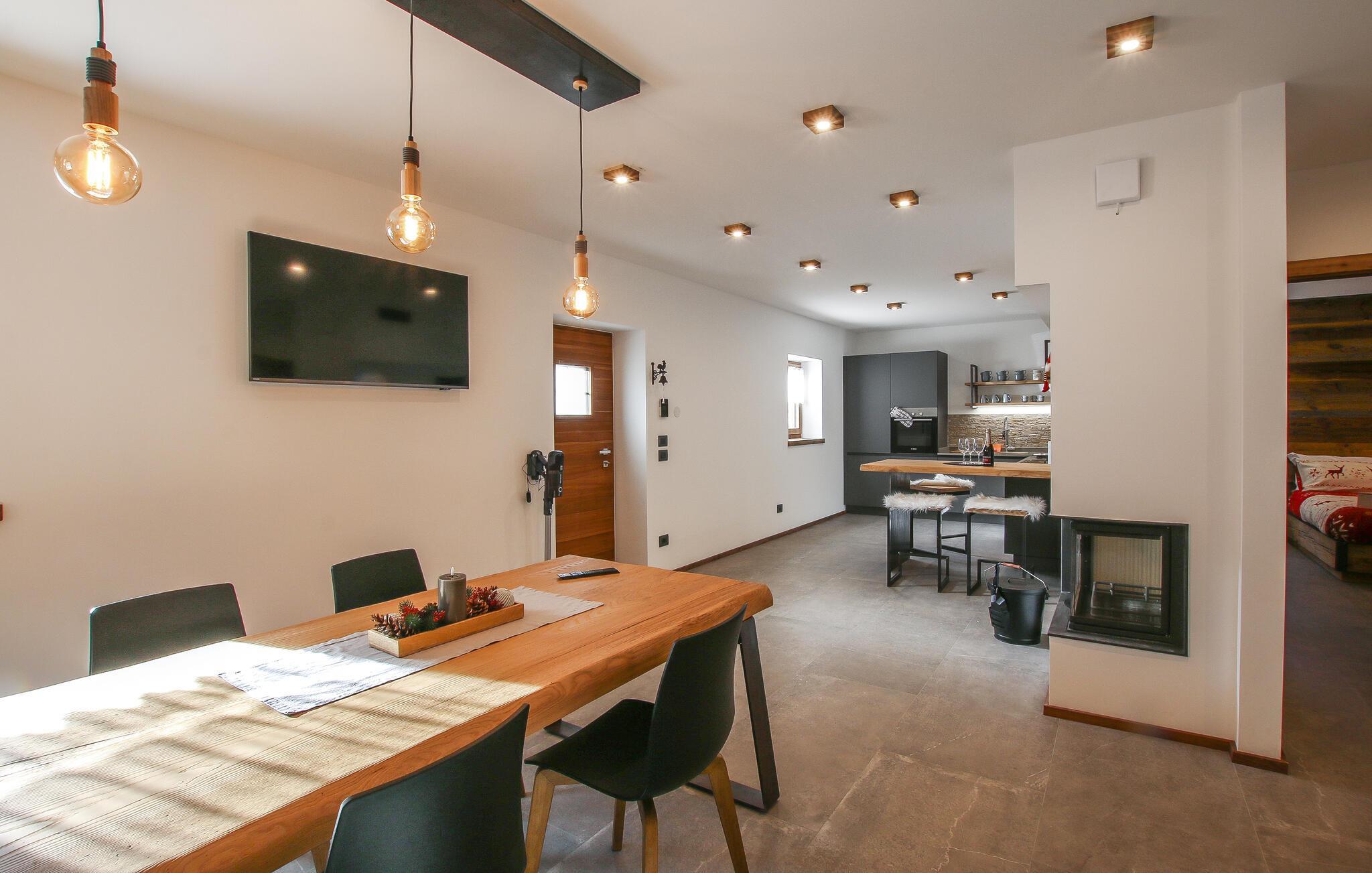 Willkommen im einladenden Chalet Aquila, einem angenehmen Rückzugsort für Ihren Familienurlaub! Hier verschmelzen authentische Rustikalität, moderne Ästhetik und Funktionalität zu einem harmonischen Raum mit einem warmen Ausdruck und jeder Gast wird sich wohlfühlen. Versammeln Sie sich am Tisch, während die Flammen im Kamin prasseln und eine wohlige Wärme versprühen. Der gemütliche, offene Wohnraum wird durch ein bequemes Sofa ergänzt, das zum Entspannen und Genießen von ruhigen Momenten einlädt. Darüber hinaus bietet das Chalet Aquila auch einen kleinen Arbeitsbereich für diejenigen, die die Flexibilität der Arbeit mit entspannten Tagen im Tesinotal verbinden möchten.