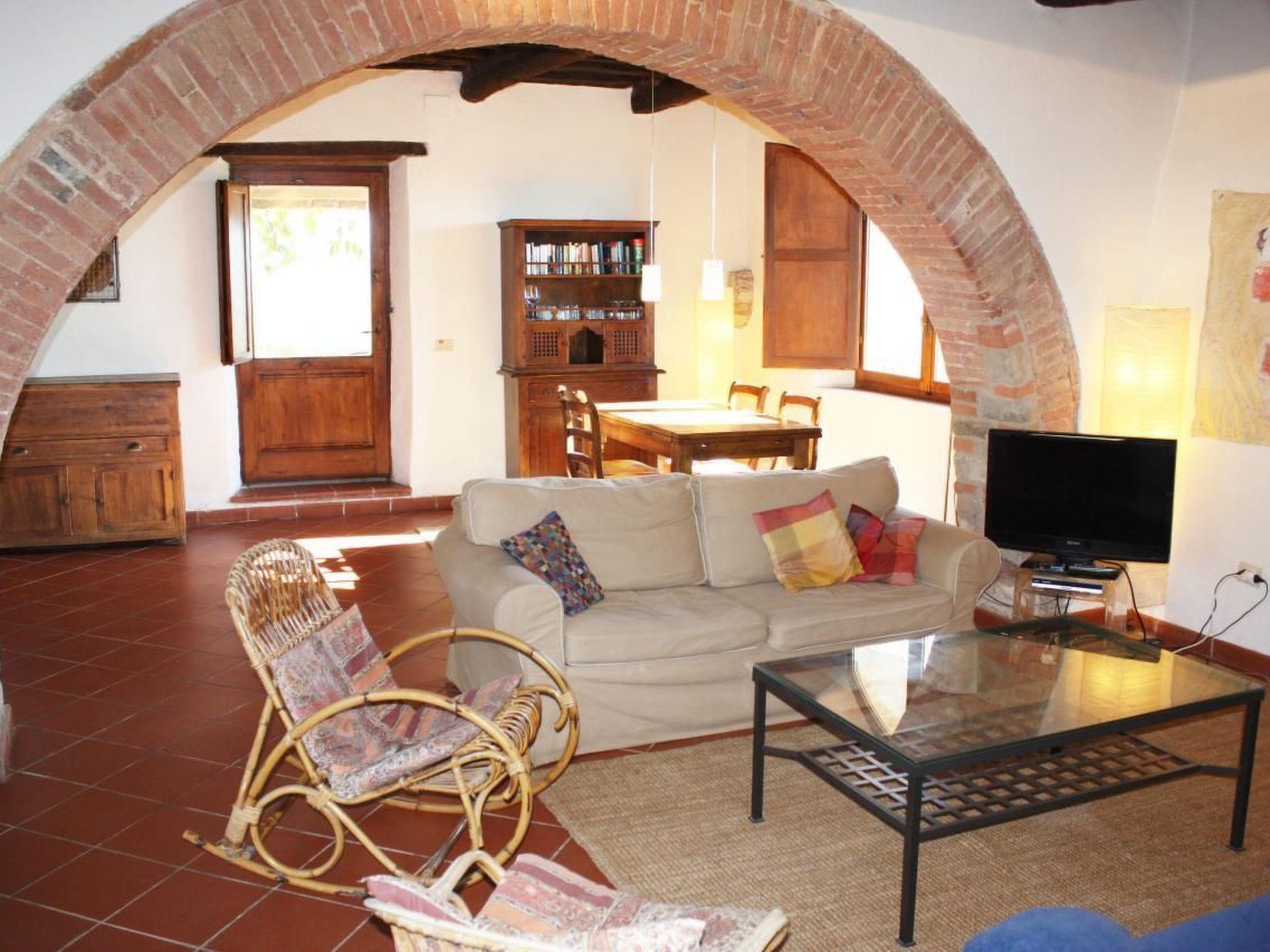Die Wohnung befindet sich in einer privilegierten Umgebung, die Ruhe und Abgeschiedenheit verspricht und doch so nah an allen wichtigen Kulturstädten liegt. Siena, Florenz, San Gimignano, Arezzo, Volterra, Pisa – alle diese Juwelen sind bequem für Tagesausflüge erreichbar. Zudem laden die toskanische Landschaft und das nahegelegene Tal zu ausgedehnten Wanderungen ein. Der nächste Lebensmittelhandel befindet sich nur 4000m entfernt, was zusätzlich für Komfort während Ihres Aufenthaltes sorgt.