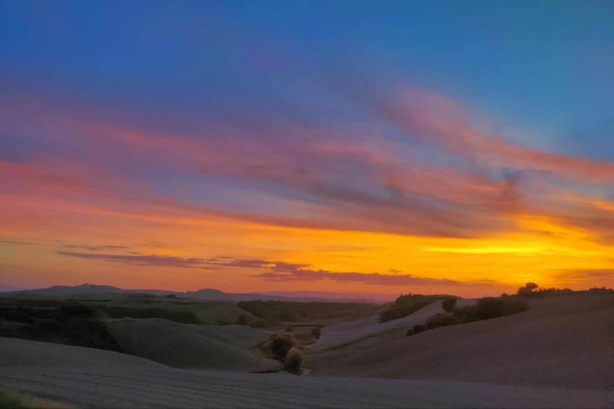 Machen Sie eine schöne Autofahrt bei Sonnenaufgang oder Sonnenuntergang in den Crete Senesi, spektakulären und einzigartigen Hügeln, die zu jeder Jahreszeit schön sind.