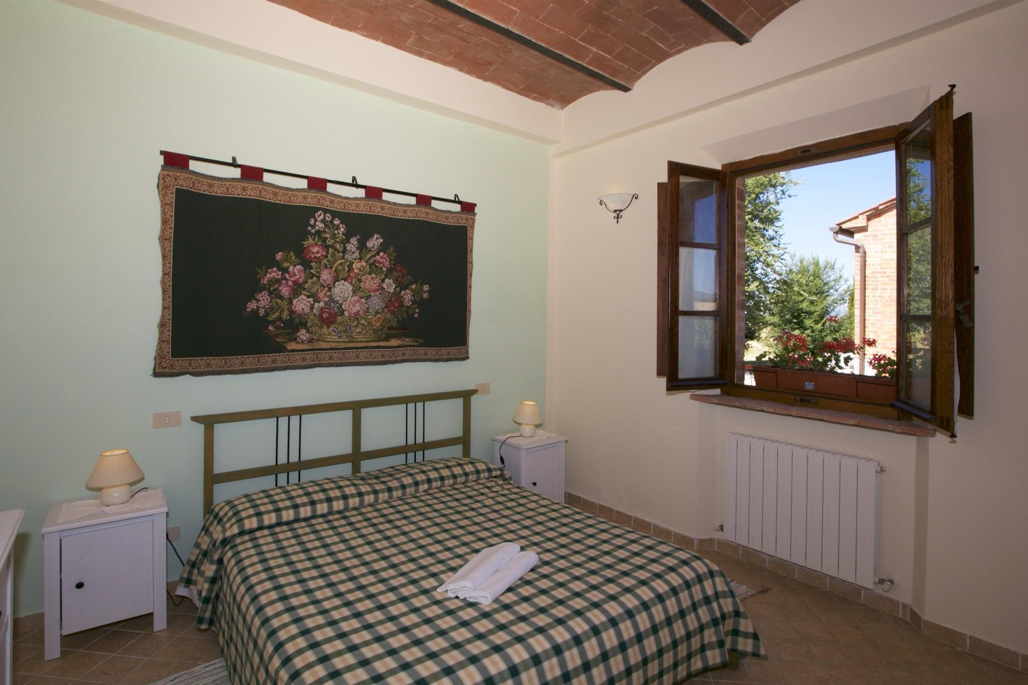 Umgeben von den malerischen Hügeln der Crete Senesi bietet dieses charmante Bauernhaus in Castelnuovo Berardenga einen ruhigen Rückzugsort im Herzen der Toskana. Nur 2,5 km von Geschäften, Restaurants und dem Stadtzentrum entfernt, verbindet es ländliche Ruhe mit Komfort. Das Haus ist ideal für Familien und Tierliebhaber und bietet drei komfortable Schlafzimmer – zwei mit Doppelbetten und eines mit zwei Einzelbetten – sowie zwei Badezimmer, eines mit Dusche und eines mit Badewanne. Der gemütliche Wohnbereich verfügt über einen Fernseher und Sitzgelegenheiten, während die offene Küche mit Backofen, Kaffeemaschine und Esstisch komplett ausgestattet ist. Im Außenbereich lädt ein gemeinschaftlicher Garten mit Grillplatz und Gartenmöbeln zu Mahlzeiten im Freien ein. Kinder werden sich über die Spielgeräte freuen, und Gäste können im Gemeinschaftspool (14 x 5 m, geöffnet von Mai bis September) entspannen. Eine Terrasse und ein privater Parkplatz tragen zum Komfort bei, und WLAN sorgt während Ihres gesamten Aufenthalts für Online-Verbindung. Dieses authentische toskanische Bauernhaus ist ideal für alle, die einen ruhigen Ausgangspunkt suchen, um Siena zu erkunden, lokale Weine zu genießen oder auf dem Land zu entspannen.