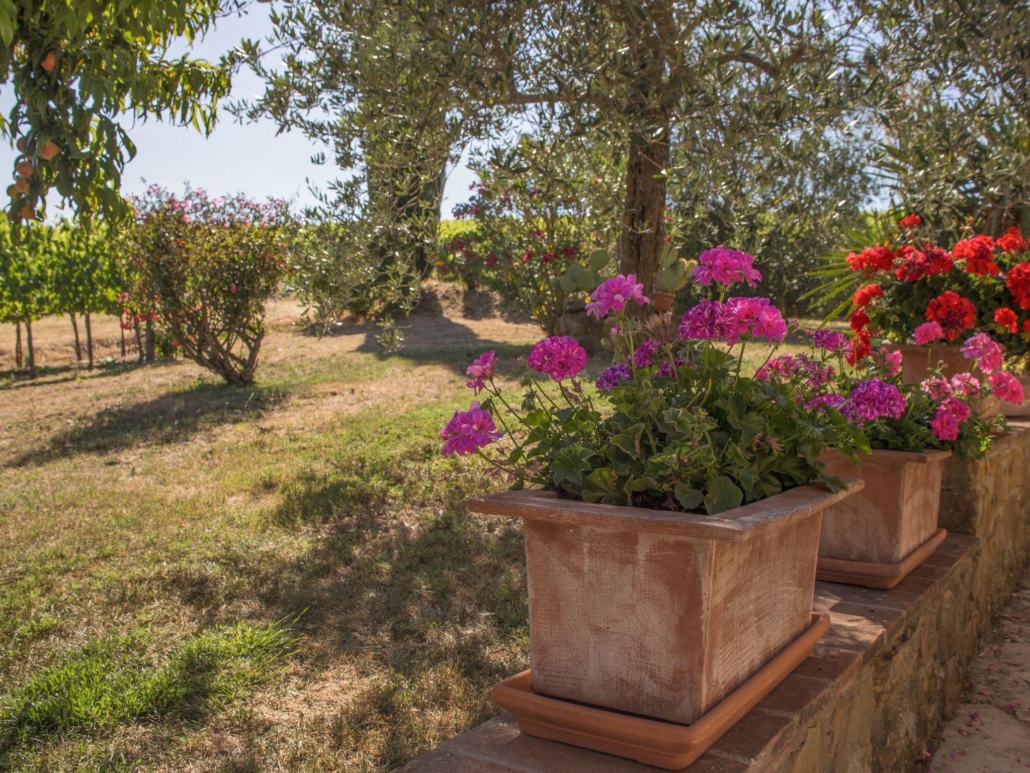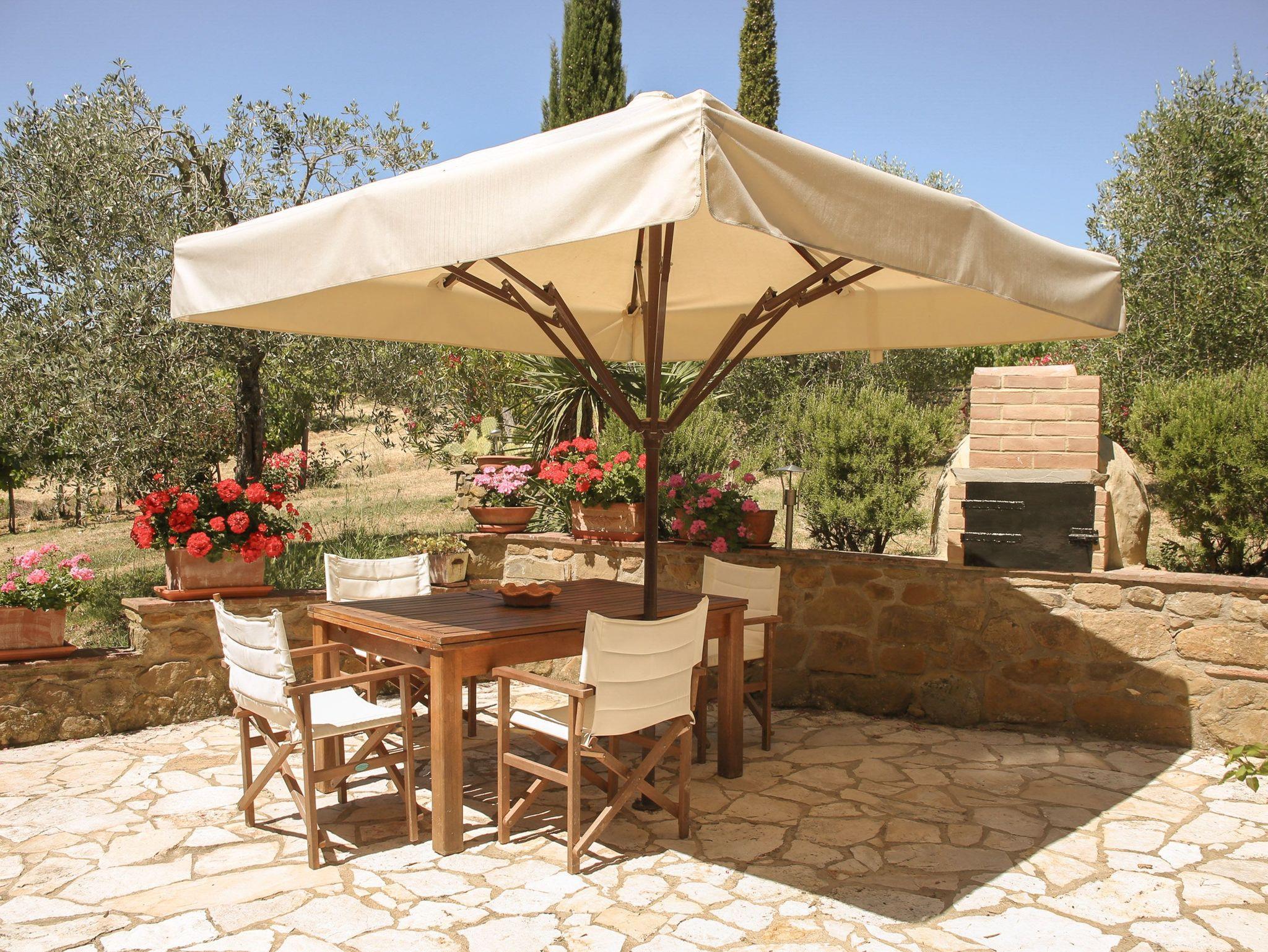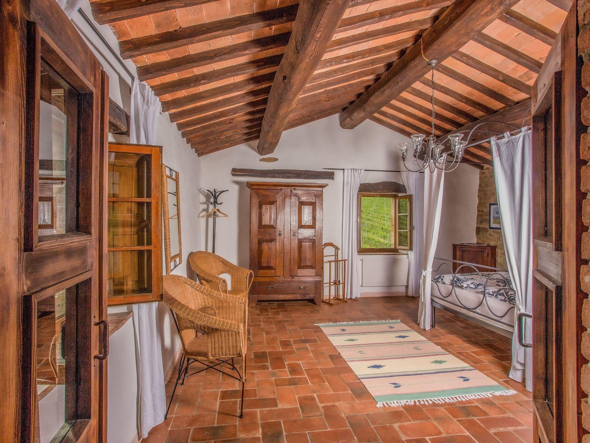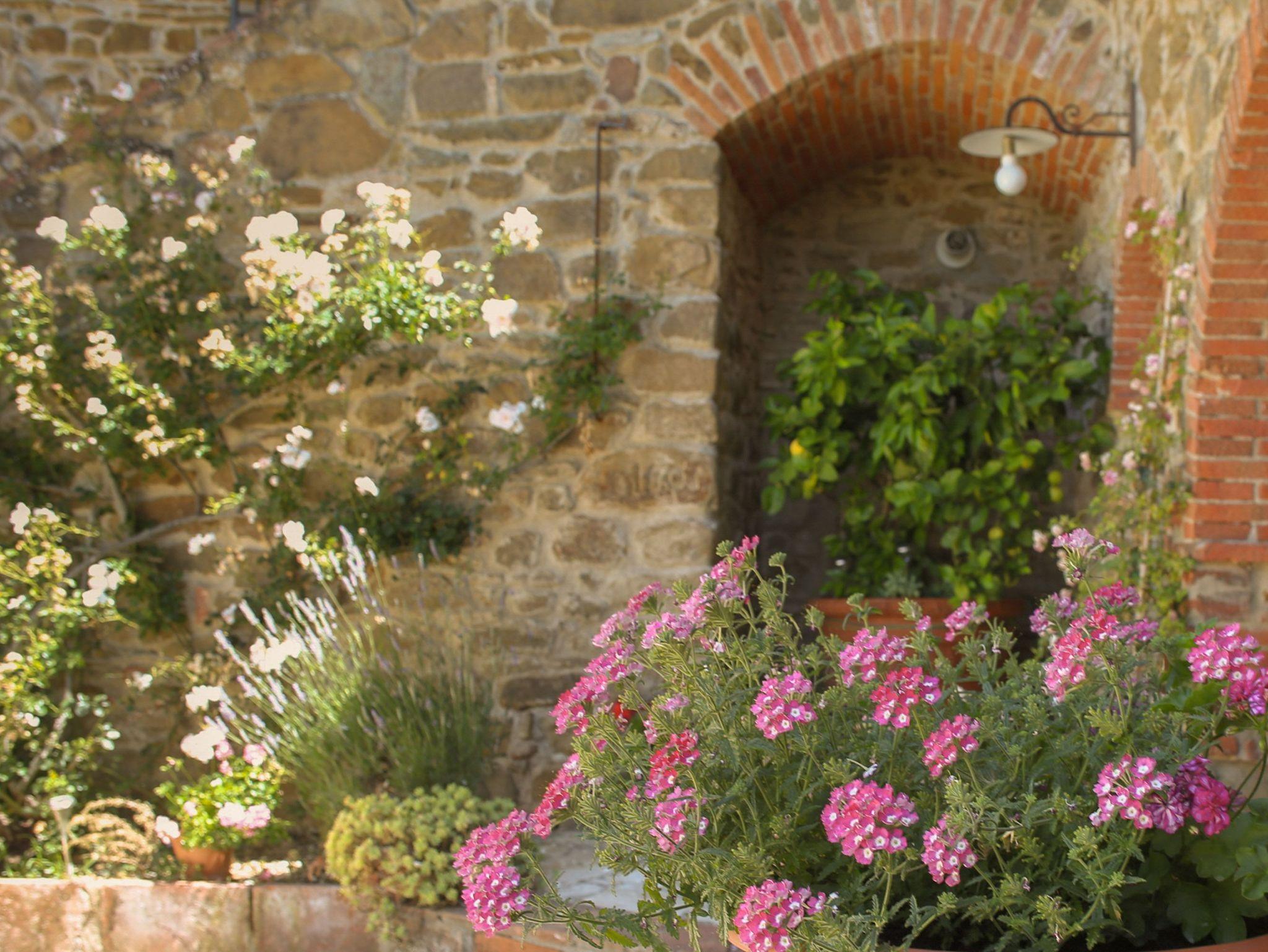 Der Poolbereich umfasst einen 4 x 11 Meter großen Pool mit einer Tiefe von 1,20 bis 1,60 Metern, perfekt für morgendliche Schwimmeinheiten. Die Reinigung erfolgt 2-3 Mal wöchentlich durch den Gastgeber. Eine Solar-Außendusche und eine große Loggia mit zahlreichen Liegestühlen sowie eine große Schaukel bieten Ihnen hier eine angenehme Location zum Wohlfühlen. Zahlreiche reizende Sitzplätze rund um das Haus geben Ihnen die Möglichkeit, die gesamte Natur der Umgebung zu genießen. Der Blick auf das kleine Dorf Montebenichi und die wunderschöne Aussicht über die Hügel des Chianti werden Sie begeistern. Das gesamte Grundstück liegt inmitten eines 8 Hektar großen Weinbergs und ist vollständig auf 2 Hektar mit einem 2 Meter hohen Zaun geschlossen.