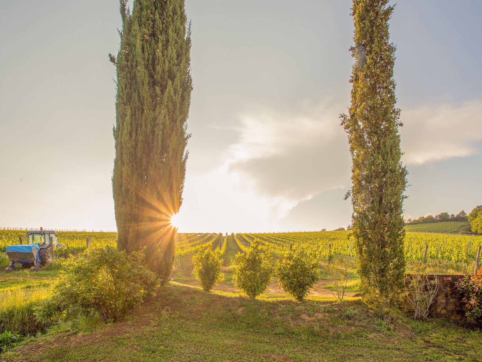 Die Aussicht auf den umliegenden Weinberg versetzt Sie bereits am frühen Morgen ins Staunen. Der gemütliche Vorplatz ist mit einem großen Holztisch, Sitzbank und Gartenstühlen unter den toskanischen Bögen der Loggia ausgestattet. Zusätzlich gibt es einen Tisch mit bequemen Stühlen unter einem großen Sonnenschirm. Hier kann auch eine Tischtennisplatte aufgestellt werden. Unterhalb des Anwesens, über eine Steintreppe erreichbar, befindet sich eine Wohlfühl-Oase mit einem hauseigenen Römer-Pool zur Alleinnutzung.