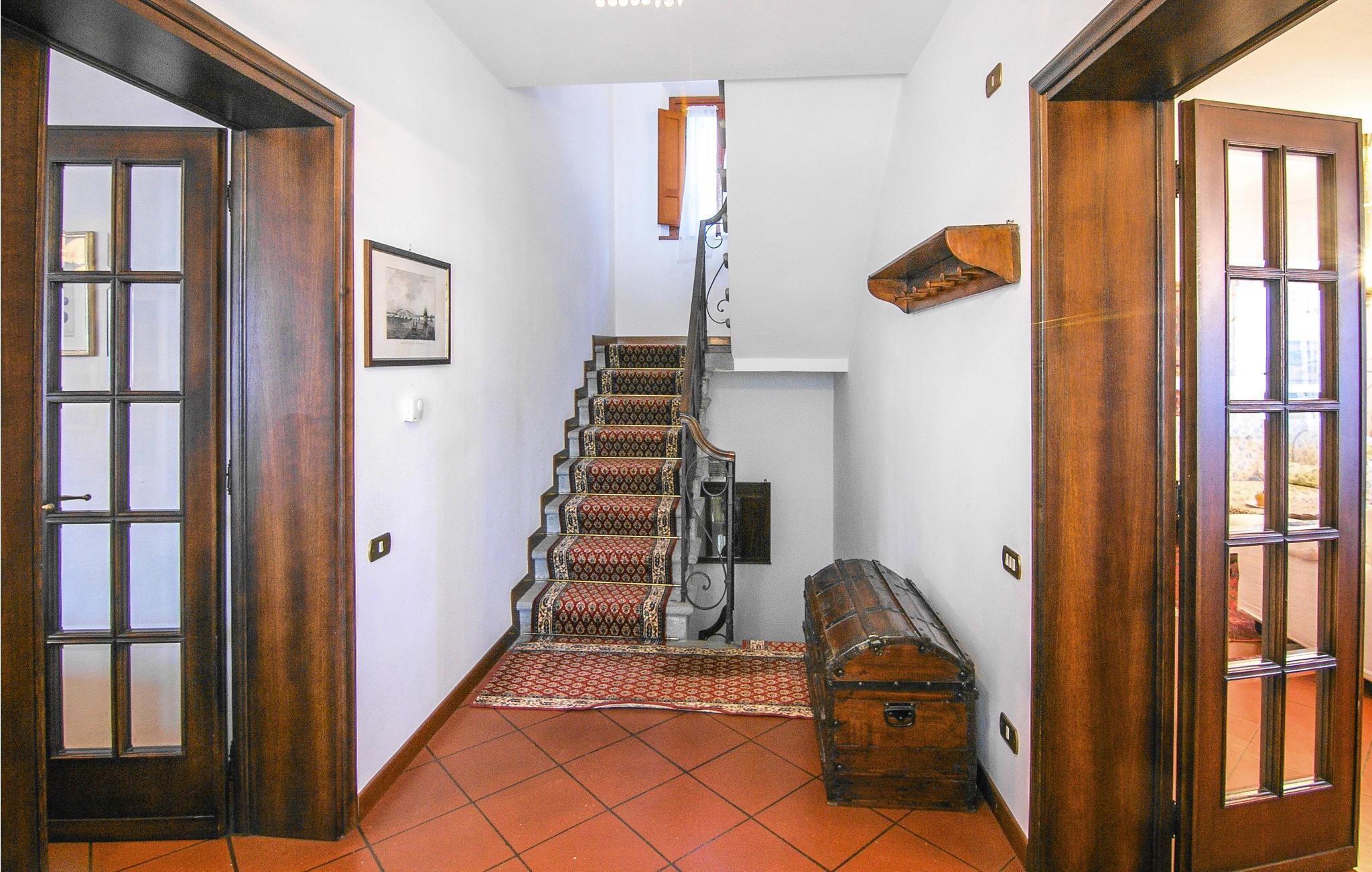 Wenn Sie vorhaben Ihren Urlaub in der Nähe von Lucca zu verbringen, dann ist dieses Ferienhaus mit Blick auf die Landschaft und Hügel genau richtig für Sie! Das Grundstück, in dem Sie gemütlich zusammensitzen können, liegt auf den vier Seiten des Hauses, ist leicht abfallend und besteht aus Naturrasen und bewaldeten Flächen. Das Haus liegt in Castelvecchio di Compito, einem ruhigen Landstrich mit niedrigen Hügeln, zwischen Lucca und Pisa, berühmt für die Ausstellung von antiken Kamelien, die jedes Jahr zwischen März und April stattfindet. Einige Entfernungen: 18 Km Lucca, 28 Km Pisa, 64 Km Florenz. Die Liebhaber der Outdoor-Aktivitäten haben hier die Qual der Wahl: Tennis, Ausritte und Golf oder erholsamen Tage an den Thermalbädern von San Giuliano. Die Küste ist ebenfalls schnell zu erreichen: 37 km zu den Sandstränden von Calambrone und 41 km zu den Kiesstränden in Marina di Pisa. Die jüngeren Gäste des Hauses werden an viel Freude an den Spieleinrichtungen des Hauses haben: ein kleines Planschbecken, eine Schaukel und ein Klettergerüst. Neben dem Haus befindet sich eine große offene Terrasse die mit Grill, Stühlen, Esstisch, Liegestühlen, Sonnenliegen und einem Außenwohnbereich der mit Infrarot-Heizelementen ausgestattet ist. Moskitonetze an den Fenstern.