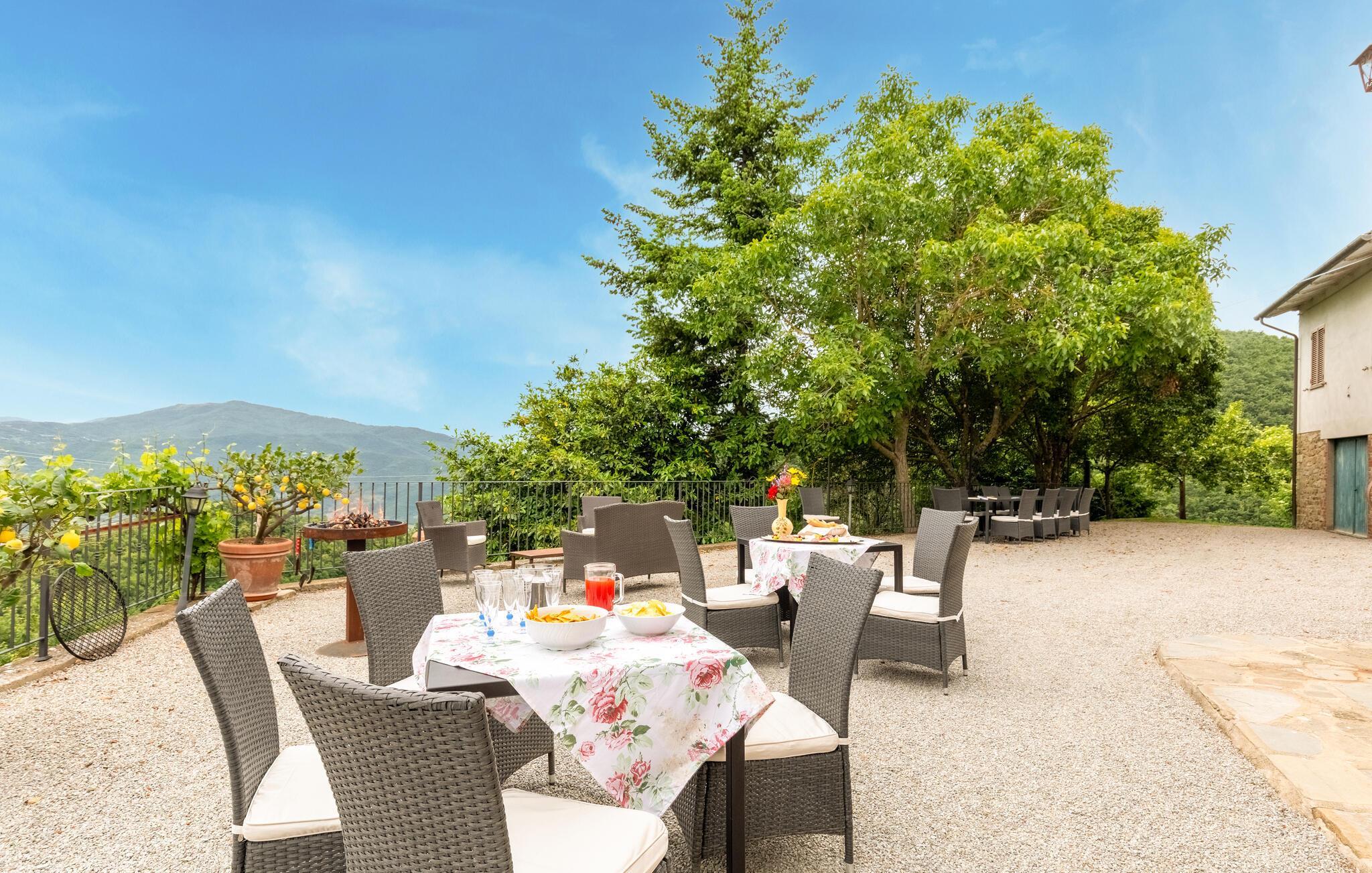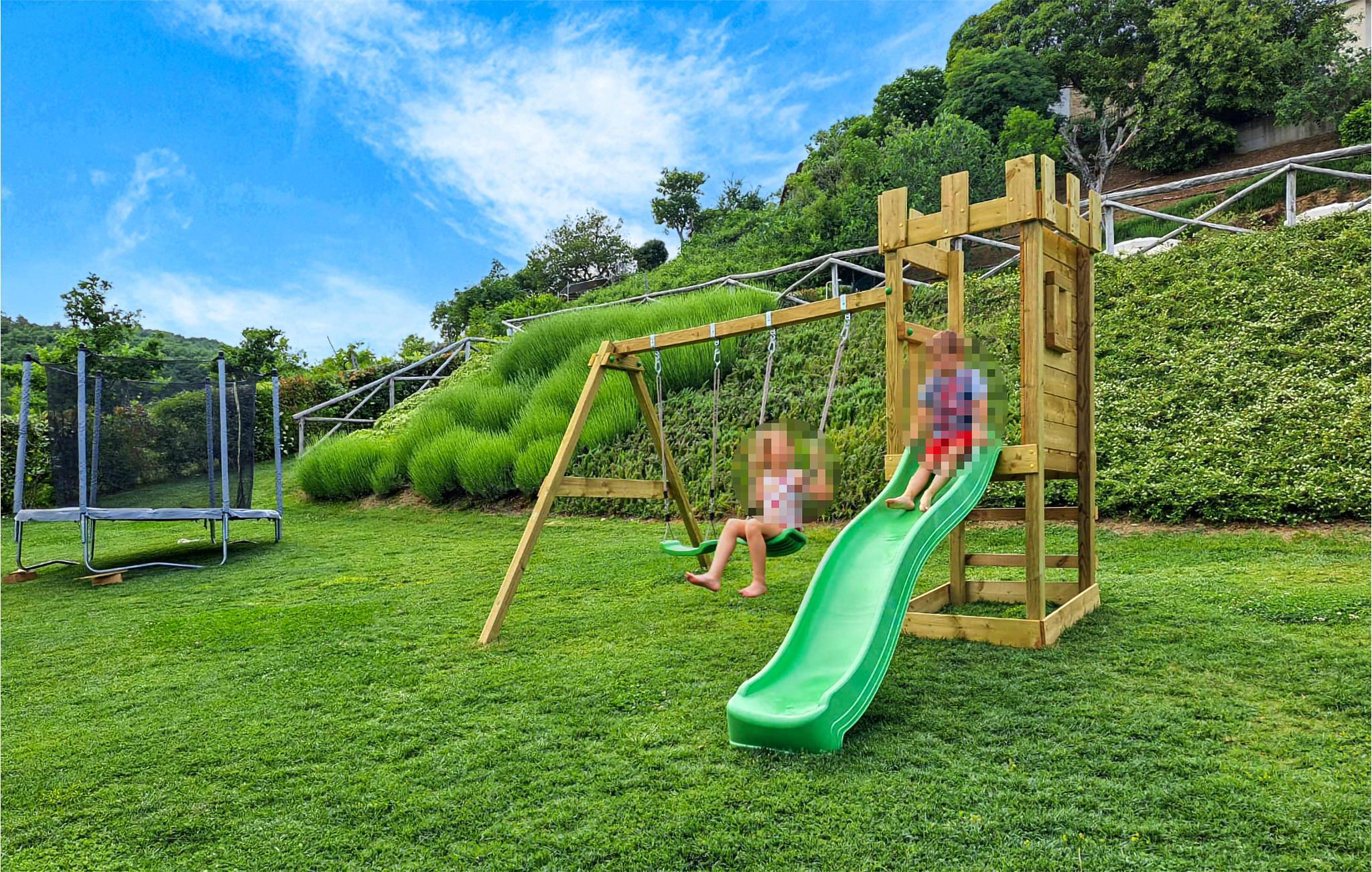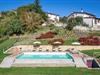Ein Highlight des Hauses ist der schöne Poolbereich, circa 70 m unter dem Haus gelegen, wo Sie sich an heißen Tagen abkühlen oder auf den Sonnenliegen entspannen können. Der schöne Garten bietet viel Platz, um den Urlaub und das angenehme Klima draußen zu verbringen.