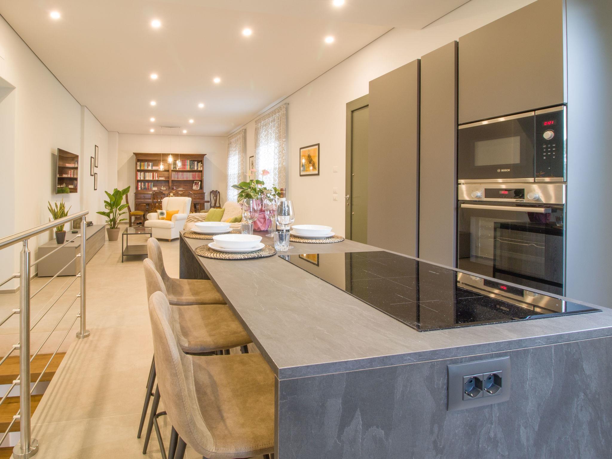3-Zimmer-Doppelhaushälfte 120 m2 auf 2 Stockwerken. Komfortabel und geschmackvoll eingerichtet: Wohnzimmer. Ausgang zum Garten. 1 Doppelzimmer mit Dusche/Bidet/WC. Ausgang zum Garten. Obergeschoss: (geländerlose Treppe) grosses Wohn-/Esszimmer mit Essecke, Küchenblock und TV (Flachbildschirm). Ausgang zum Garten, zum Balkon. 1 Doppelzimmer mit TV (Flachbildschirm). Kochnische (Backofen, Geschirrspüler, 4 Induktionskochplatten, Mikrowelle). Dusche/Bidet/WC. E-Heizung, Klimaanlage. Solarstrom. Terrassenmöbel. Zur Verfügung: Waschmaschine, Haartrockner. Internet (Wireless LAN). E-Ladestation. IT051012C2DPIDJOGM