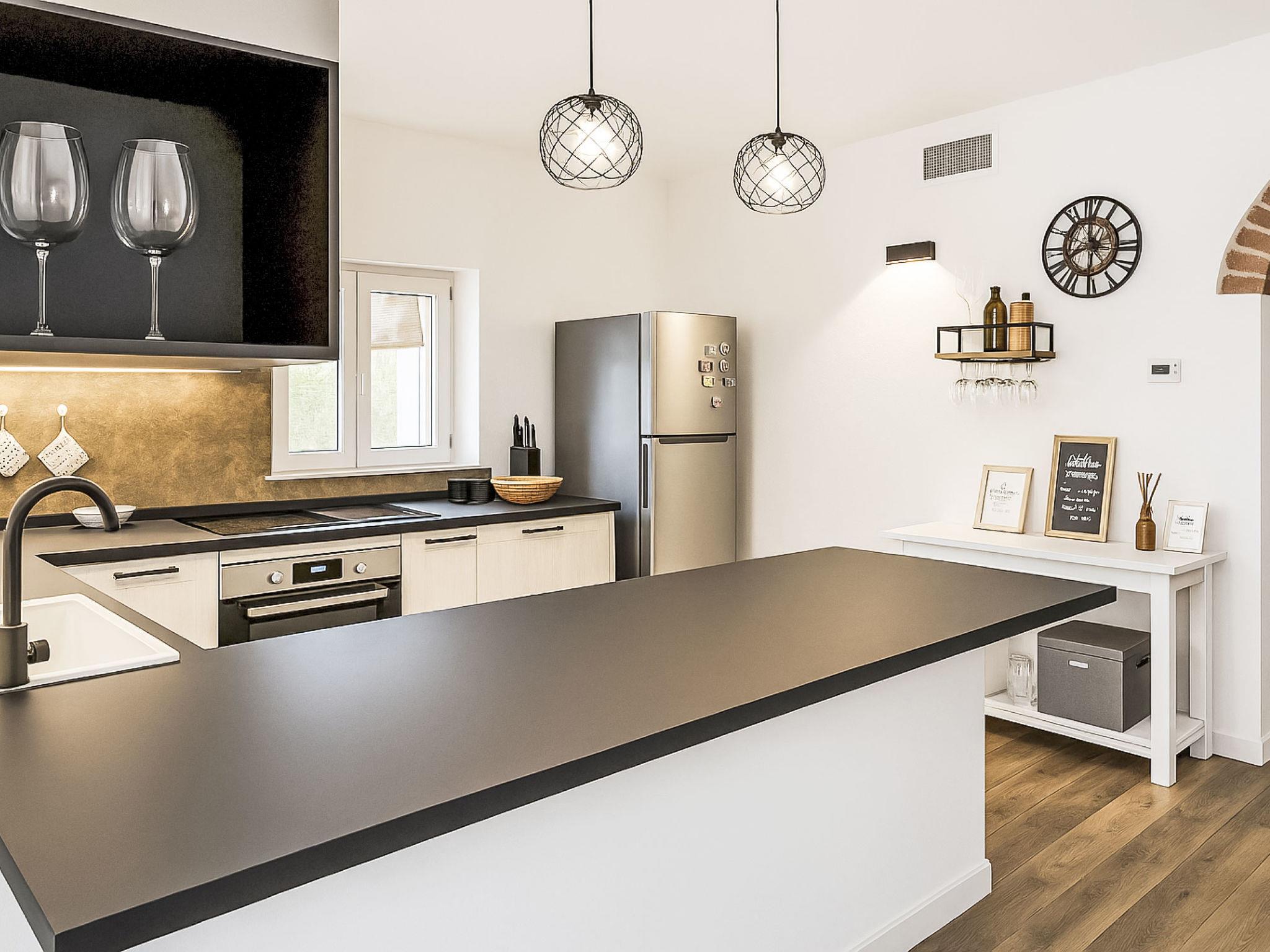 "Il Tiglioré", 3-Zimmer-Haus 80 m2, im Erdgeschoss. Hell, vollständig renoviert, modern und geschmackvoll eingerichtet: Wohn-/Esszimmer mit Esstisch und TV (Flachbildschirm). Ausgang zum Garten. 2 Zimmer, jedes Zimmer mit 1 Doppelbett (160 cm, Länge 190 cm), Klimaanlage und Warmluftheizung. Offene Küche (Backofen, Geschirrspüler, 4 Induktionskochplatten, Toaster, Wasserkocher, Mikrowelle, elektrische Kaffeemaschine). Ausgang zum Garten. Dusche/Bidet/WC. Klimaanlage, Warmluftheizung. Heizung nur verfügbar von 15.10. bis 15.04. Grosser Garten, Laube. Gartengrill, Sitzplatz. Zur Verfügung: Internet (WLAN, gratis). Parkplatz. Maximal 1 kleines Haustier/Hund erlaubt. IT051012C2BDTKR6JI