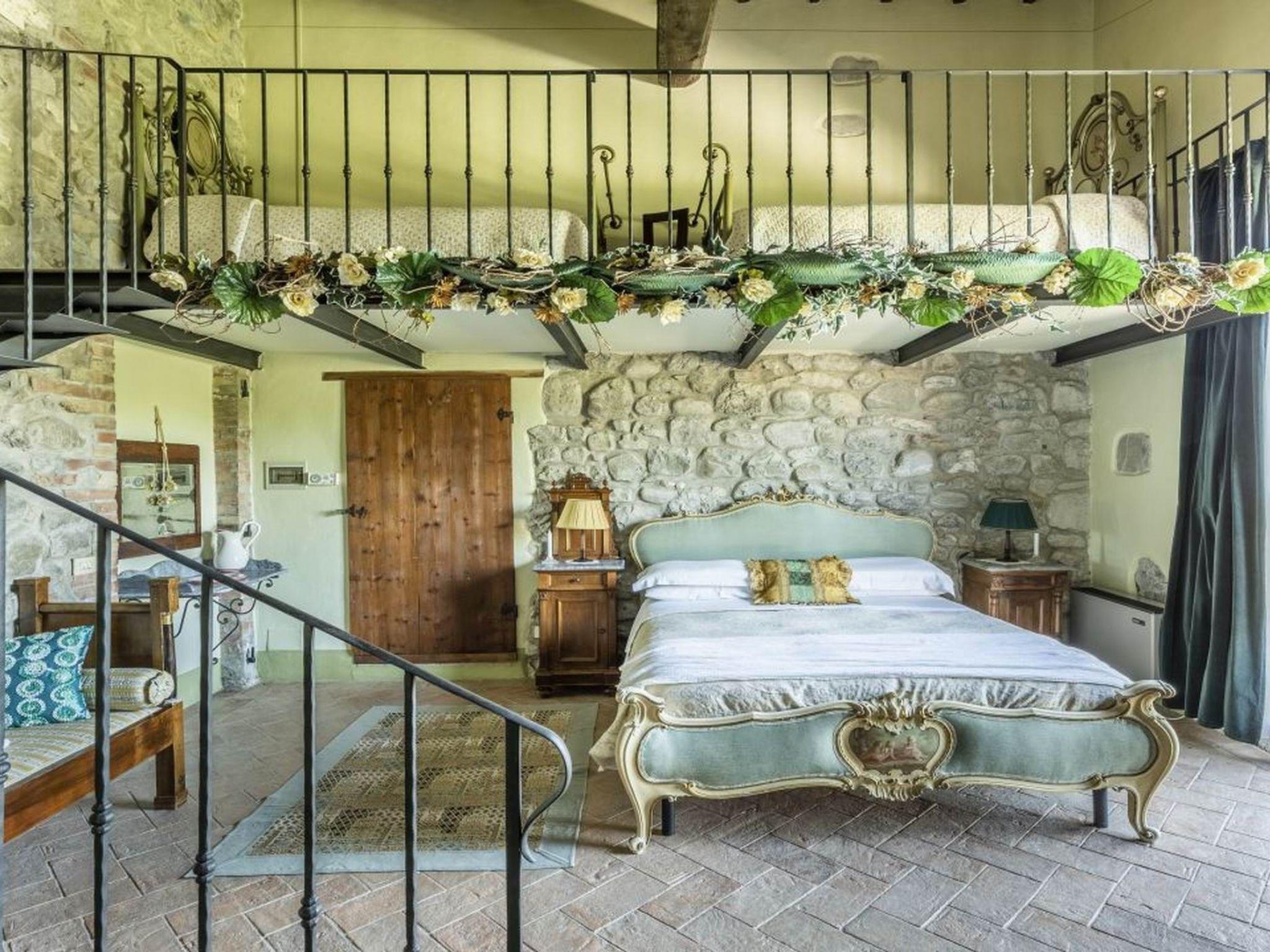 Im Erdgeschoss befindet sich ein großer Raum (60 qm), der in eine Küche mit Kochinsel, ein Wohnzimmer mit Kamin und einen Essbereich unterteilt ist. Diese Räume bieten einen direkten Zugang zum Garten und einem Pavillon. Im Erdgeschoss befinden sich außerdem zwei weitere Küchen mit Kamin und Wohnzimmer mit direktem Zugang zum Garten sowie vier Doppelzimmer, jedes mit eigenem Bad mit Dusche, von denen zwei über eine schmiedeeiserne Treppe zu einem Dachboden mit einem Einzelbett führen. Im ersten Stock gibt es eine vierte Küche mit Holzofen und ein Wohnzimmer, ein Doppelschlafzimmer mit eigenem Bad mit Dusche und ein weiteres Doppelschlafzimmer mit eigenem Bad, ein Bad mit Dusche und einen Dachboden mit einem Einzelbett, der über eine Holztreppe erreichbar ist. Es gibt auch 2 Schlafsofas, die für Kinder geeignet sind. Im großen Garten können Sie sich entspannen, lesen oder ein Glas Wein im Schatten trinken.