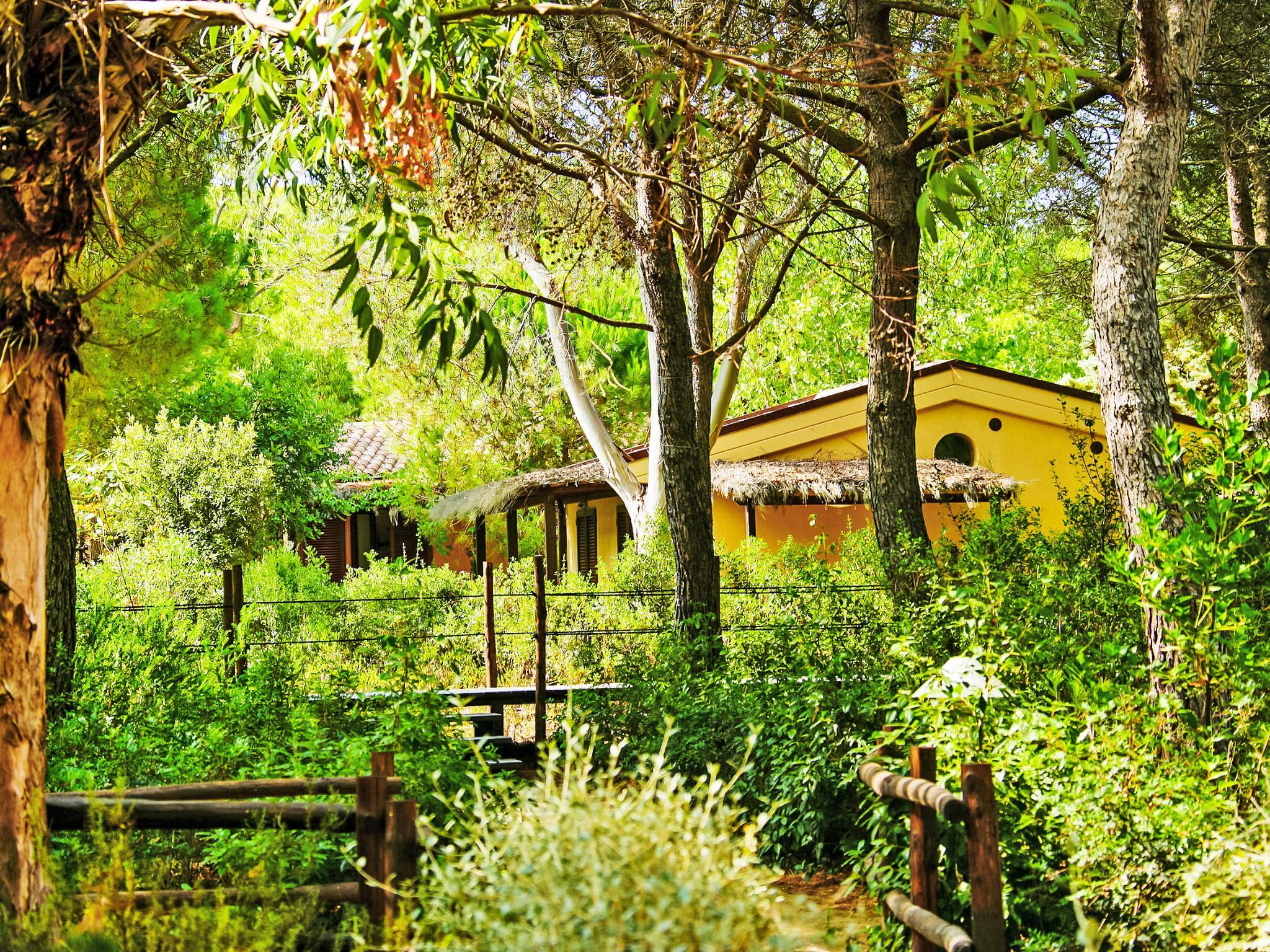 "Tipo A", 2-Zimmer-Landhaus 21 m2, im Erdgeschoss. Objekt geeignet für 2 Erwachsene + 1 Kind. Komfortabel eingerichtet: Wohn-/Esszimmer mit 1 Schlafmöglichkeit, Küchenblock und TV. Ausgang zur Terrasse. 1 Doppelzimmer. Kochnische (4 Flammen). Dusche/Bidet/WC. Klimaanlage. Gartensitzplatz. Sitzplatz. Zur Verfügung: Internet (Wireless LAN, gratis). Bitte beachten: eigener Eingang. Doppelhaus an ruhiger Lage. Beide Wohnhälften mit Terrasse, umgeben von einem mediterranen Kiefernholz. Objekt geeignet für 2 Erwachsenen und 1x Kind bis 10 Jahre.