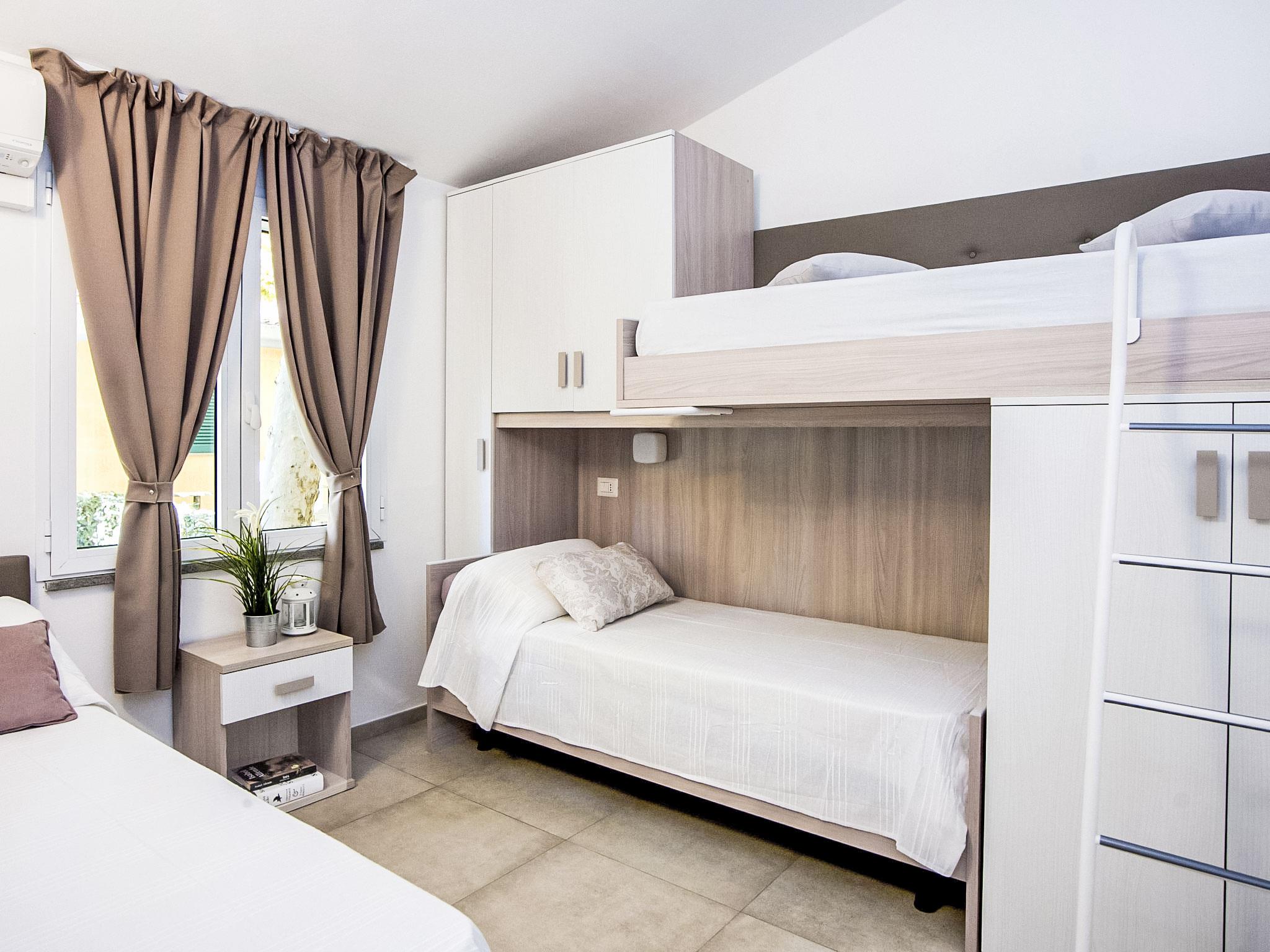 "De Luxe Plus", 3-Zimmer-Haus 40 m2, im Erdgeschoss. Objekt geeignet für 4 Erwachsene + 2 Kinder. Komfortabel eingerichtet: Wohn-/Esszimmer mit Sat-TV. Ausgang zum Garten, zur Veranda. 1 Doppelzimmer. 1 Zimmer mit 1 Bett und 1 x 2 Etagenbetten. Kochnische (4 Kochplatten, Geschirrspüler). Dusche/Bidet/WC, sep. WC. Klimaanlage. Gartensitzplatz 12 m2, grosser Garten. Terrassenmöbel, Sitzplatz. Zur Verfügung: Safe, Fliegengitter, Haartrockner. Internet (WLAN, gratis). E-Ladestation. Bitte beachten: eigener Eingang. IT053006B1ZWQW8ZUA