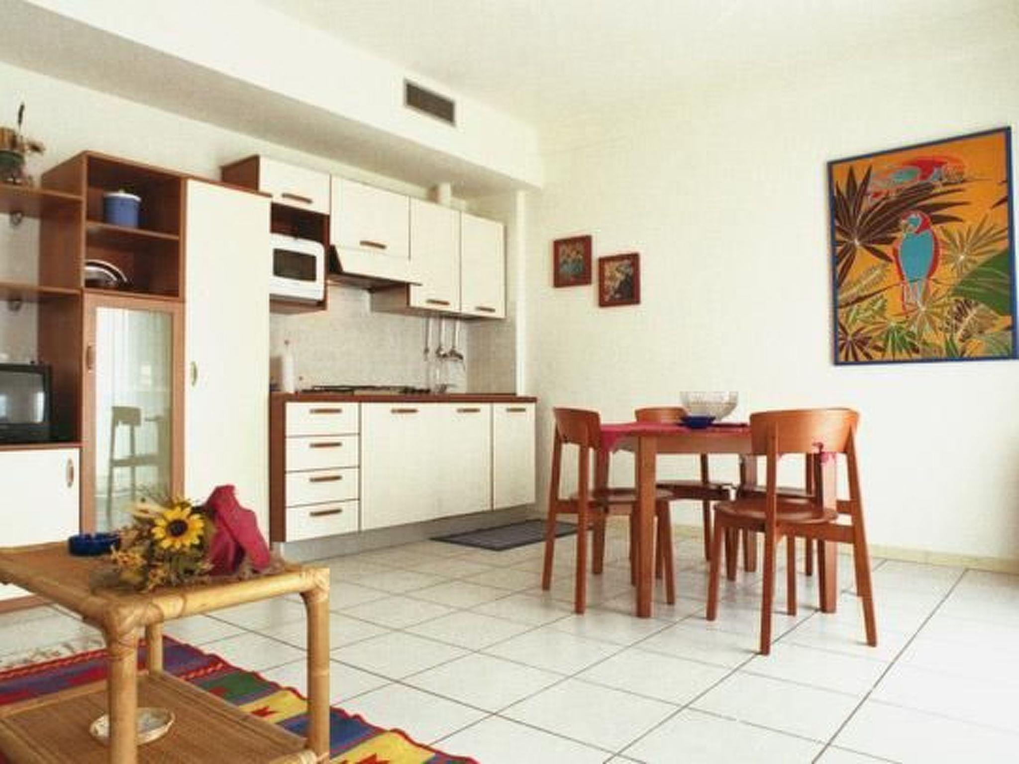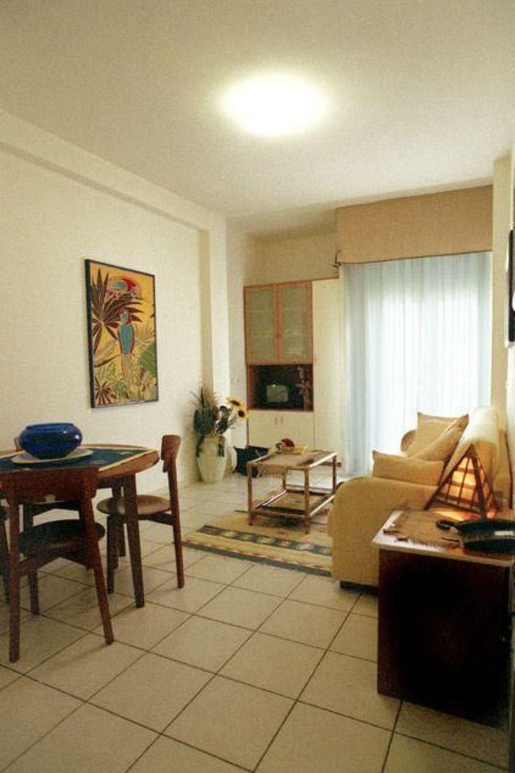 Sie umfasst ein Wohn-/Esszimmer mit voll ausgestatteter Küchenzeile und einem Doppelschlafsofa, zwei Schlafzimmern und zwei Bädern mit Duschkabine. Die Wohnung ist vollständig möbliert und komfortabel. Die Wohnung hat einen Balkon mit Meerblick.