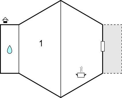 Badezimmer (nr. 1) - WC. Warmes und kaltes Wasser. Dusche