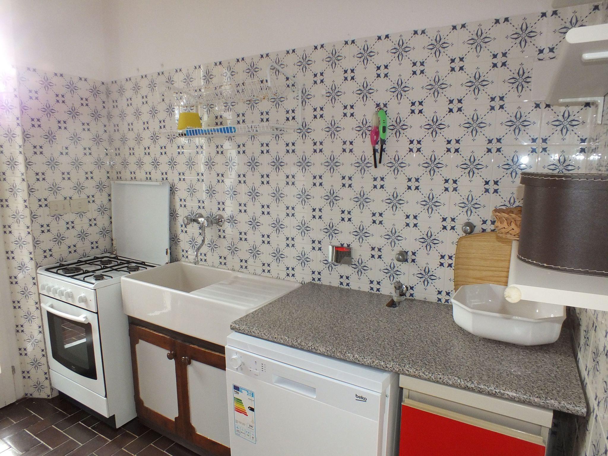Vom Wohnzimmer aus gibt es einen direkten Zugang zur Veranda, die mit Gartenmöbeln ausgestattet ist. Der große Garten mit Außendusche ist von Pinienbäumen umgeben und lädt zum Entspannen und Spielen ein. Hier können Sie gemütliche Grillabende auf dem Holzkohlegrill verbringen und die frische Seeluft genießen. Auf dem Grundstück befinden sich zwei Parkplätze, die Sie natürlich gerne nutzen können. Das Grundstück ist komplett eingezäunt.