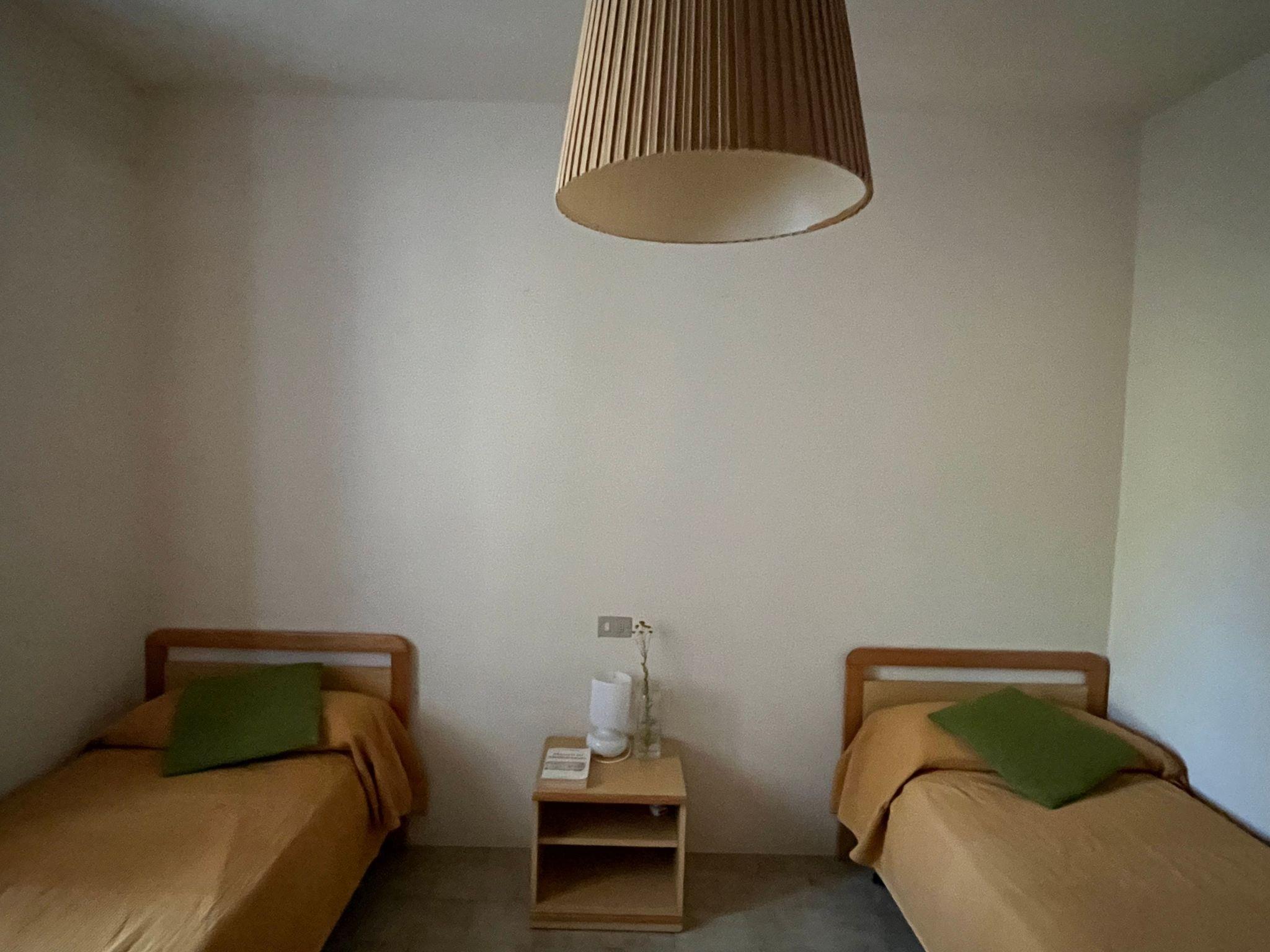 Die Wohnung ist funktionell und mit allem ausgestattet, was Sie für einen angenehmen Aufenthalt benötigen. Die Wohnküche verfügt über ein praktisches Schlafsofa, das dank des Auszugssystems in zwei Einzelbetten umgewandelt werden kann, was die Verwaltung der Wohn- und Schlafbereiche erleichtert. Die Schlafzimmer sind gut aufgeteilt, mit einem Doppelbett für einen ruhigen Schlaf und einem mit zwei Einzelbetten, ideal für Kinder oder Alleinreisende. Außerdem verfügt das Zimmer über einen nützlichen Stauraum für Ihre persönlichen Gegenstände, der das Gefühl von Ordnung und Platz erhöht.