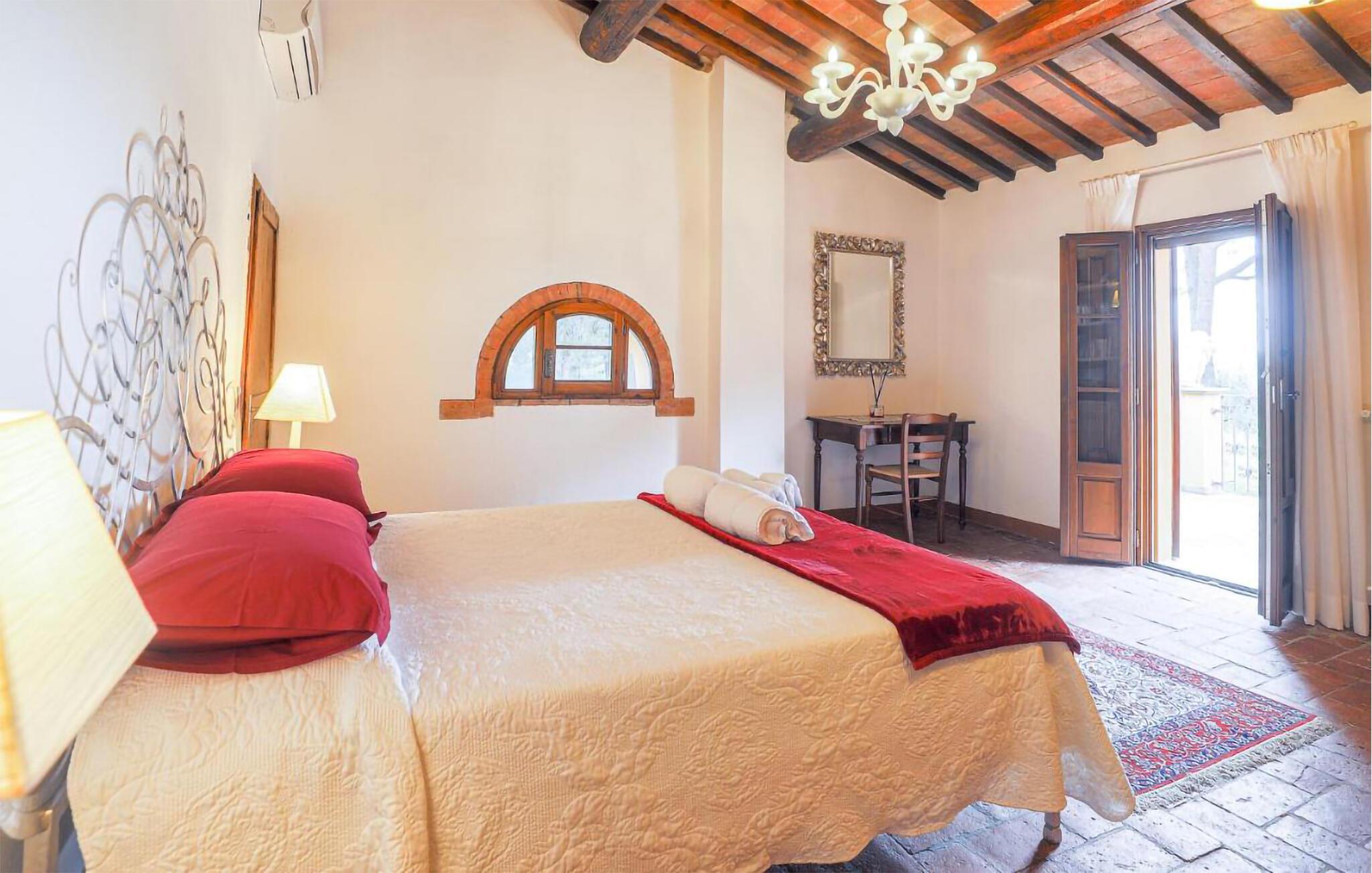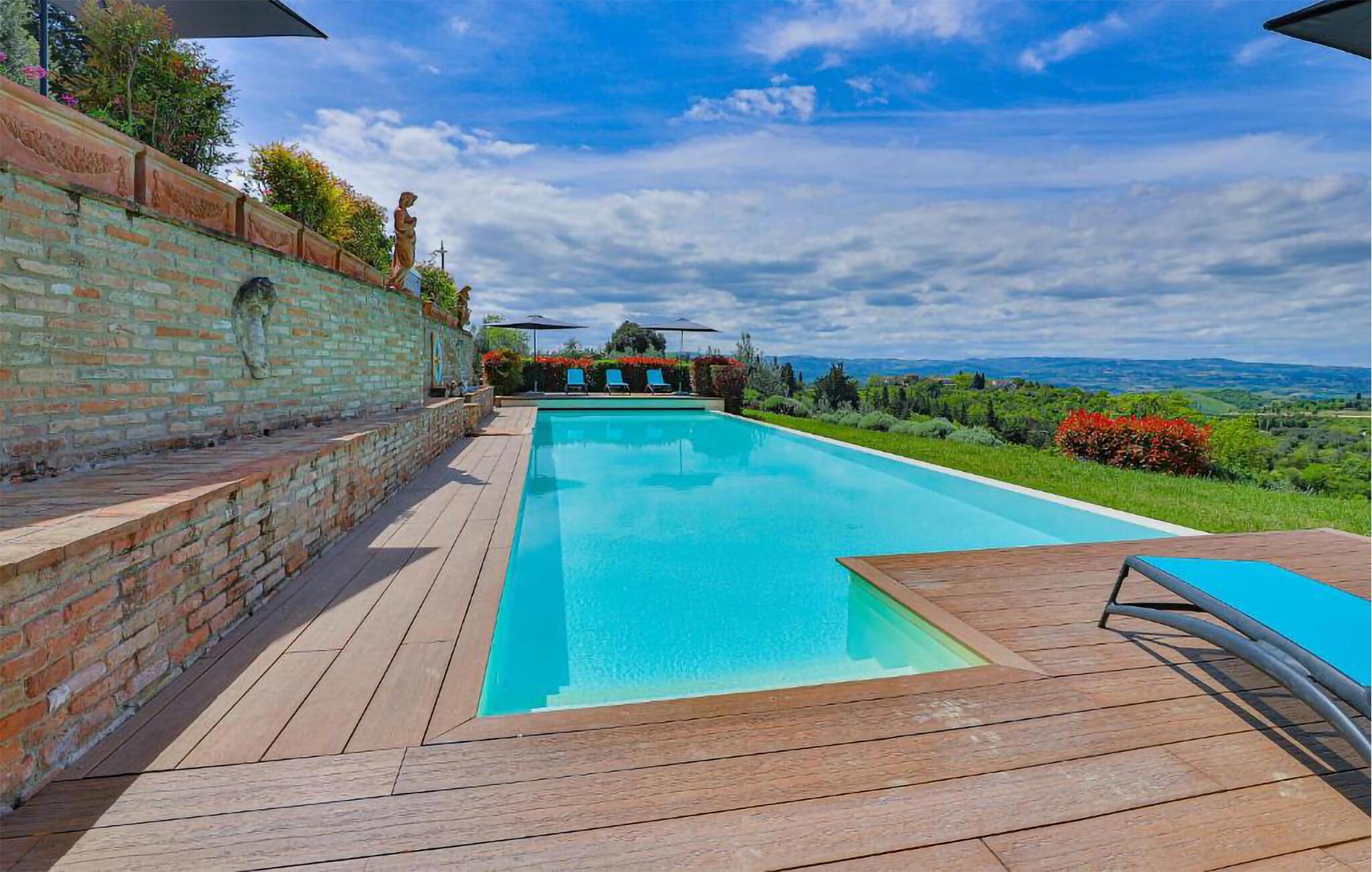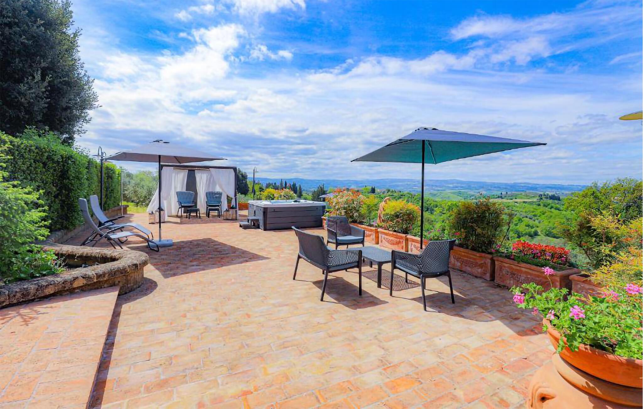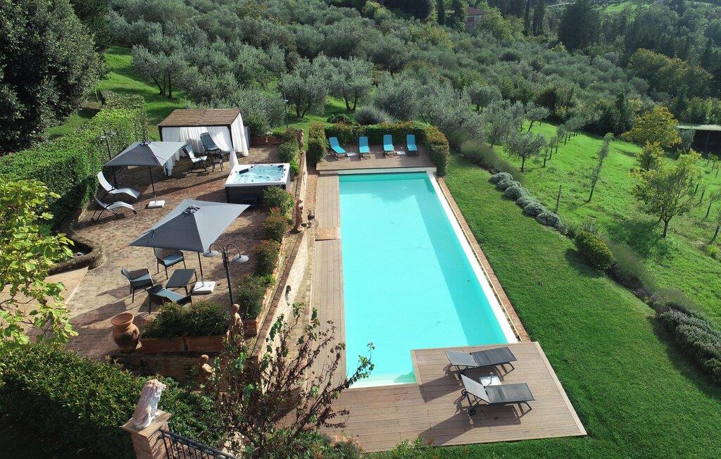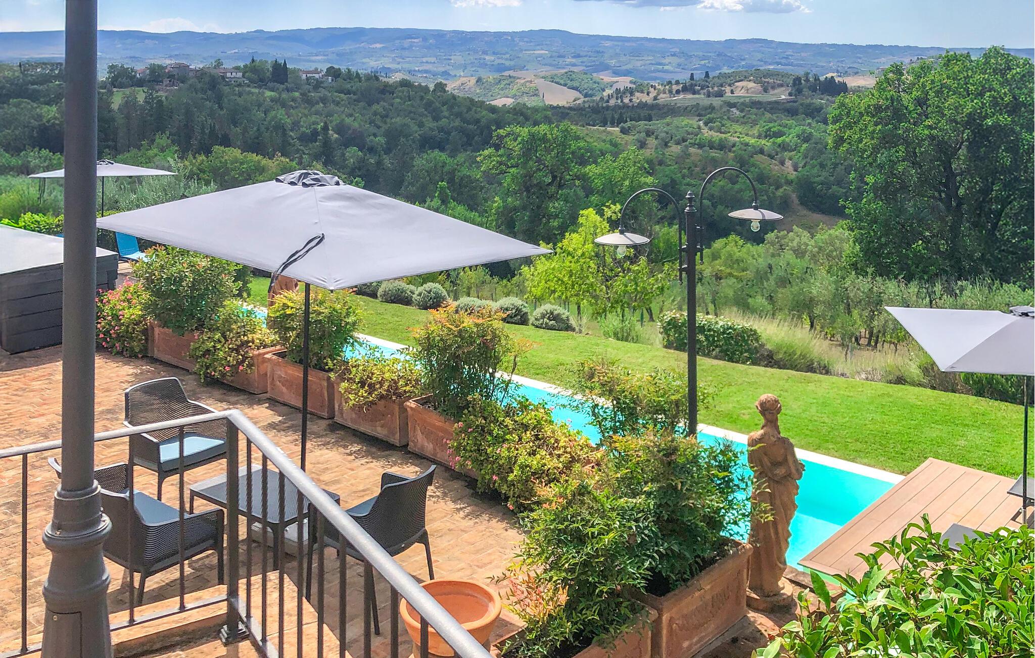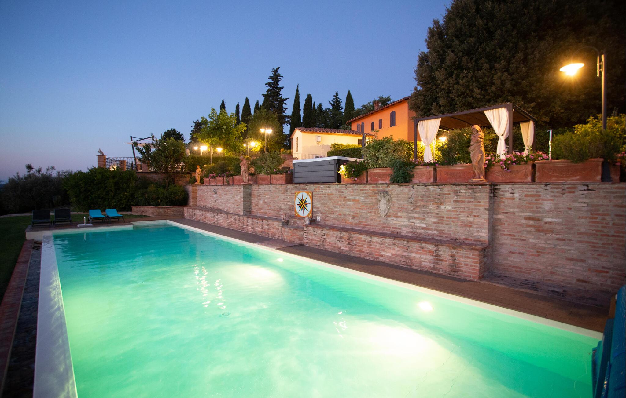 Ziehen Sie morgens gemächlich Ihre Bahnen im großen Pool und lassen Sie bei einem herrlichen Frühstück im Freien den Blick über die sanft hügelige Landschaft der Toskana schweifen. Während die Kinder Tischtennis spielen oder im Schatten der hohen Bäume ein Picknick veranstalten, können Sie im Whirlpool entspannen oder ein Festmahl an einem der vielen lauschigen Plätze servieren.