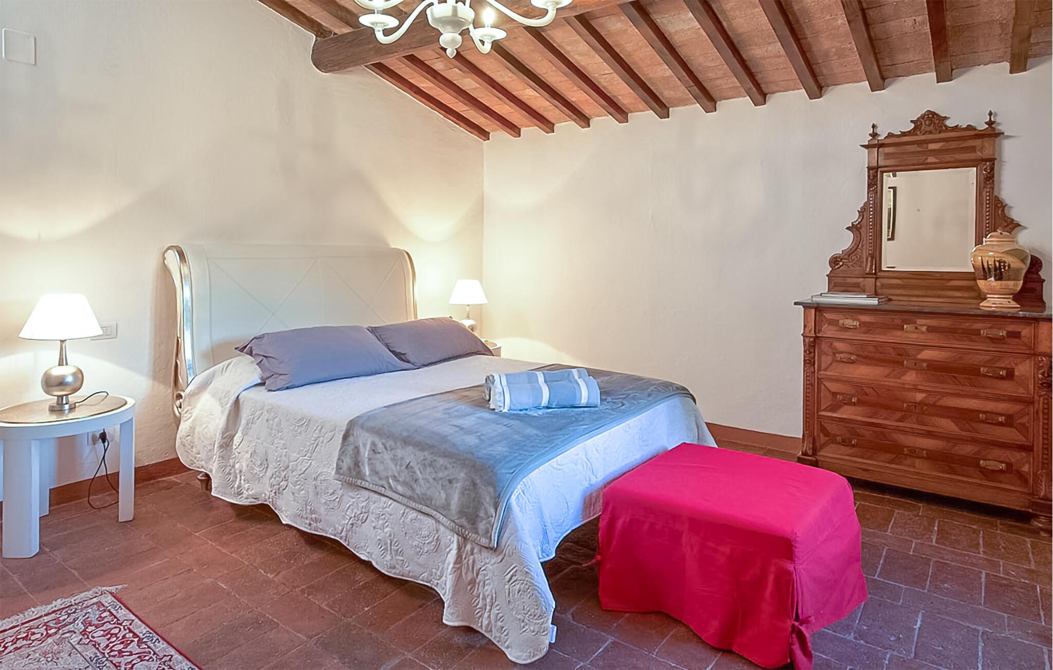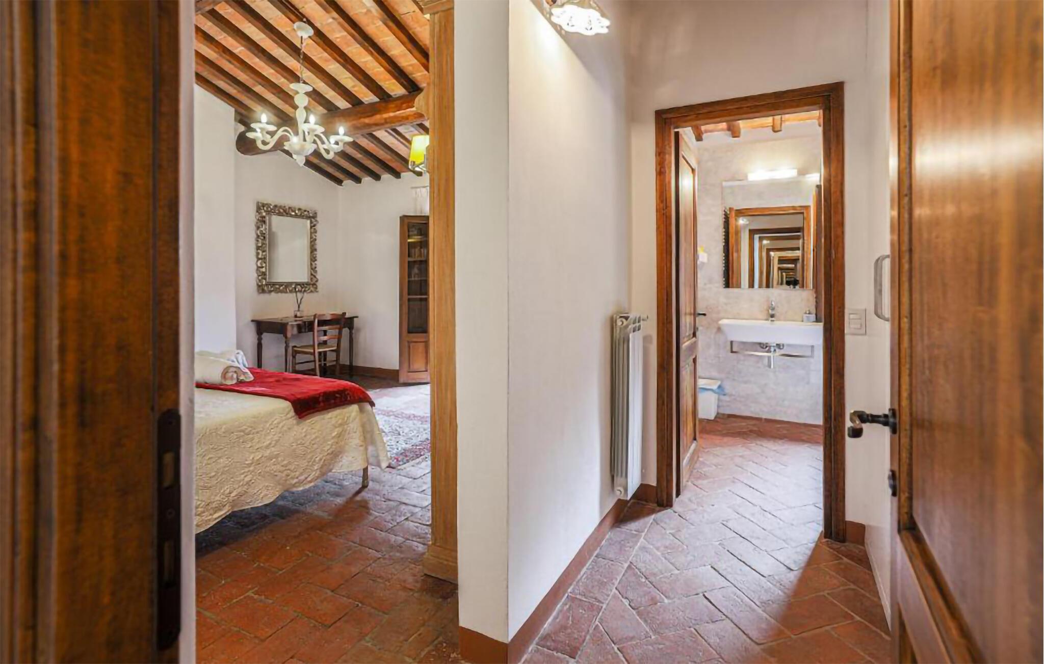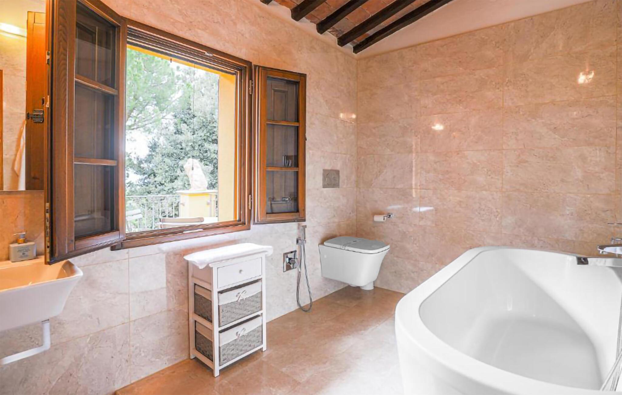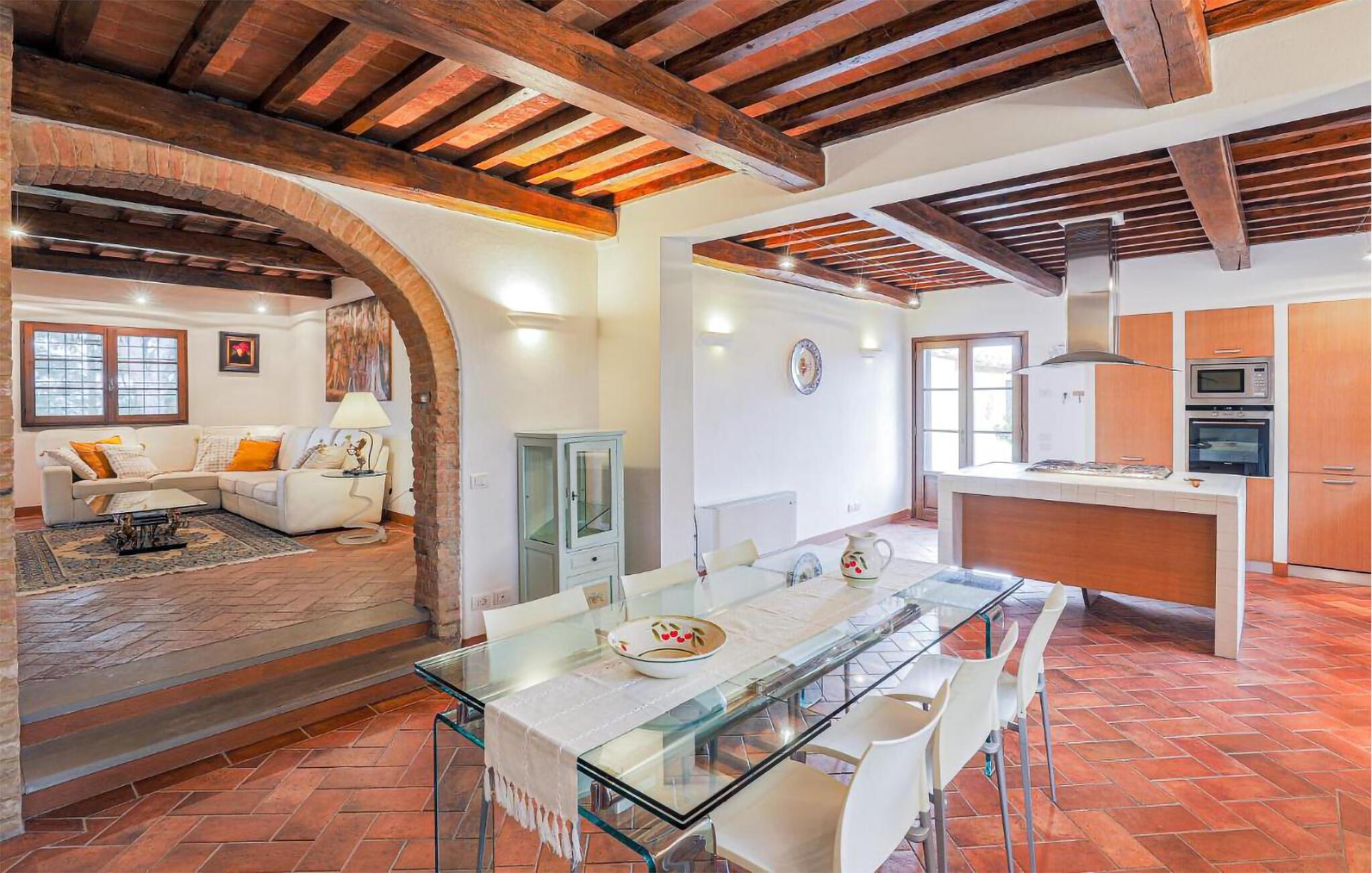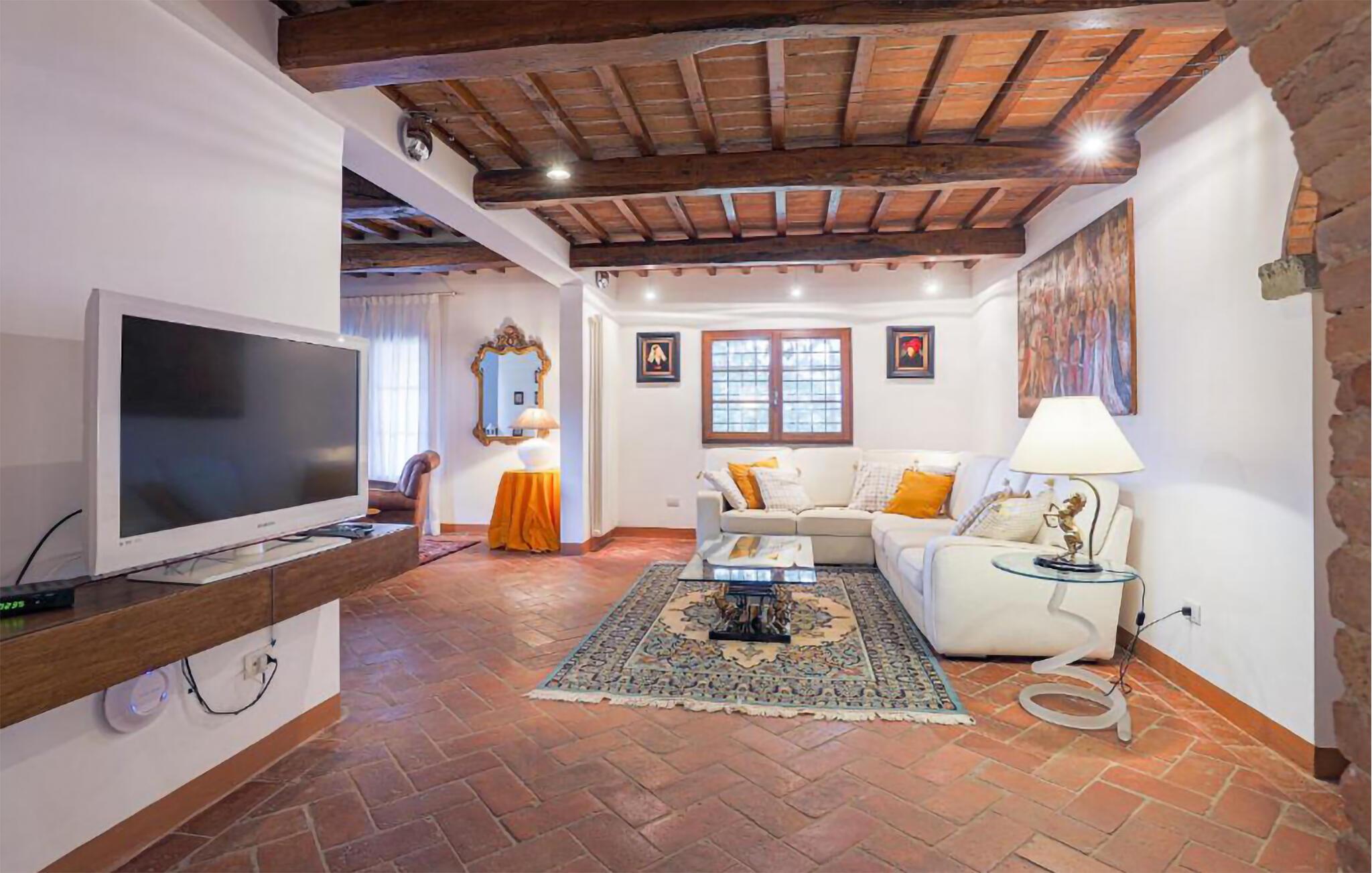 Ziehen Sie morgens gemächlich Ihre Bahnen im großen Pool und lassen Sie bei einem herrlichen Frühstück im Freien den Blick über die sanft hügelige Landschaft der Toskana schweifen. Während die Kinder Tischtennis spielen oder im Schatten der hohen Bäume ein Picknick veranstalten, können Sie im Whirlpool entspannen oder ein Festmahl an einem der vielen lauschigen Plätze servieren.