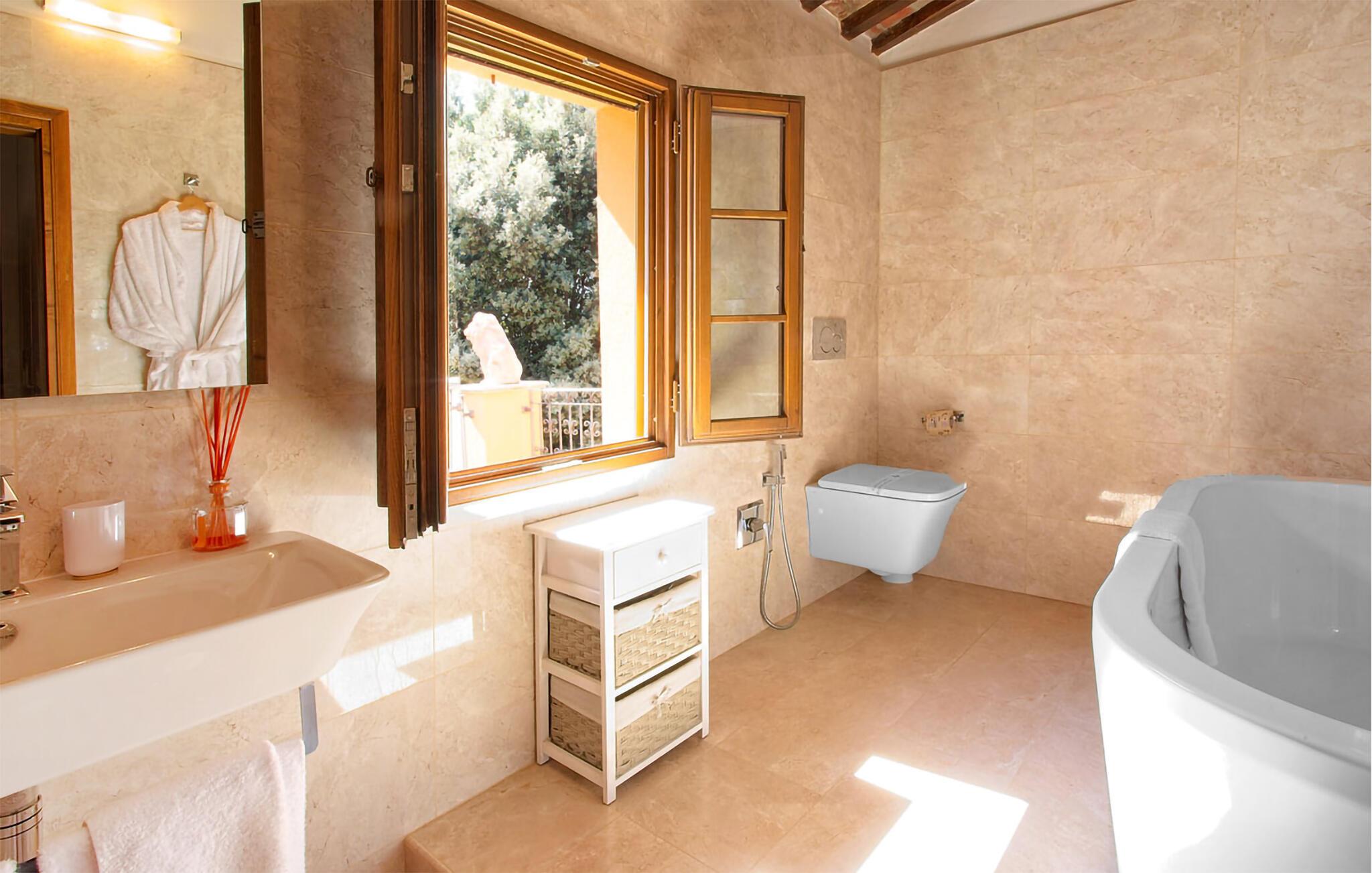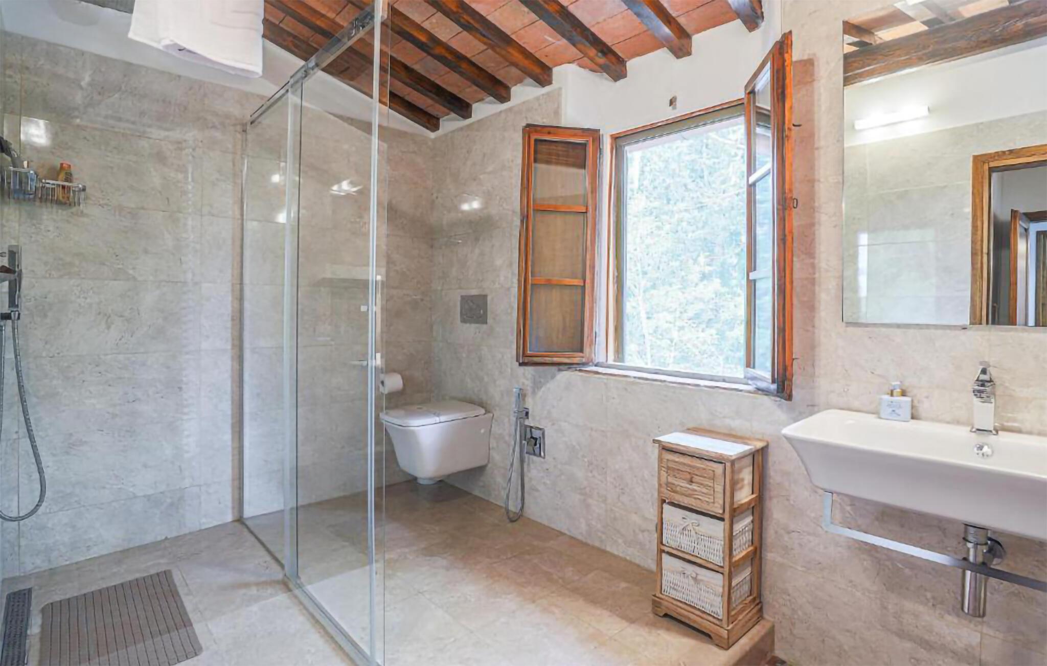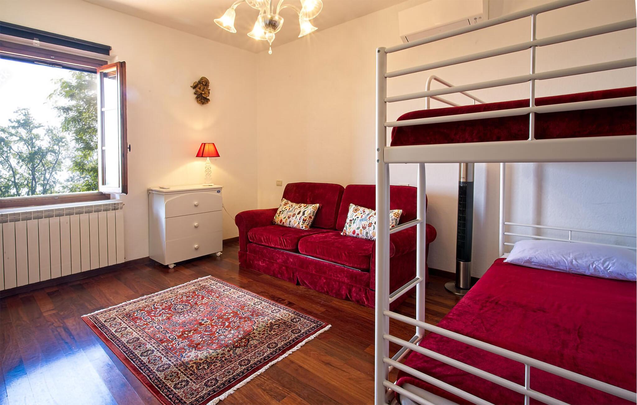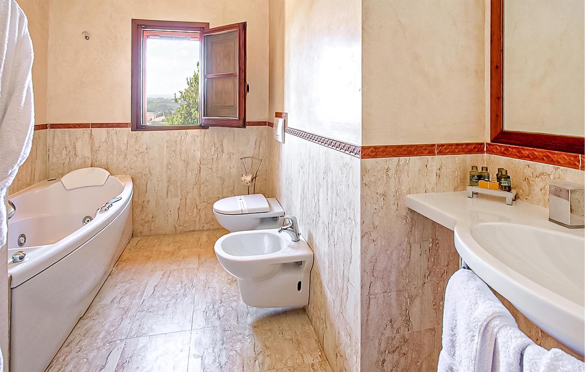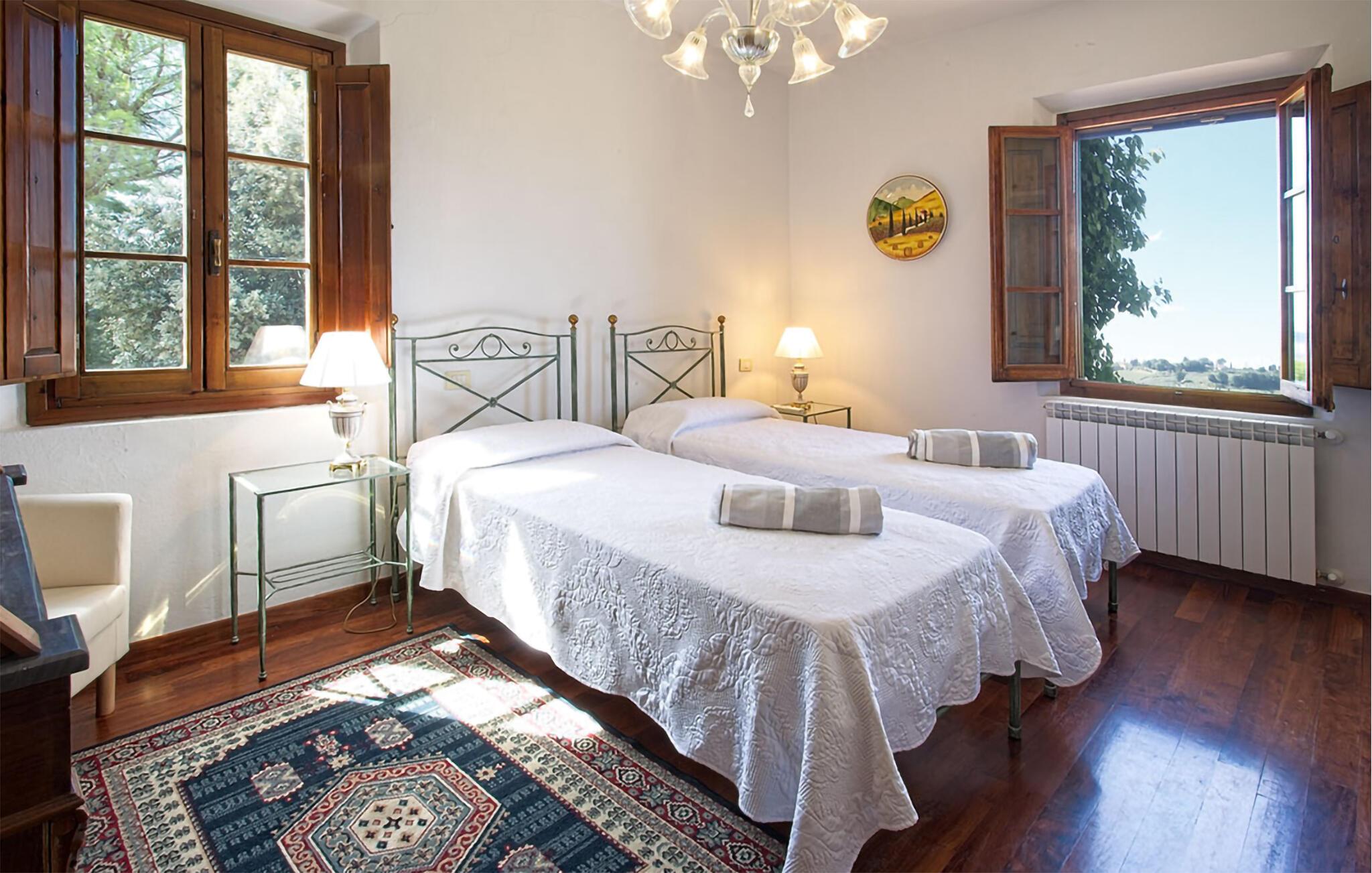 Ziehen Sie morgens gemächlich Ihre Bahnen im großen Pool und lassen Sie bei einem herrlichen Frühstück im Freien den Blick über die sanft hügelige Landschaft der Toskana schweifen. Während die Kinder Tischtennis spielen oder im Schatten der hohen Bäume ein Picknick veranstalten, können Sie im Whirlpool entspannen oder ein Festmahl an einem der vielen lauschigen Plätze servieren.
