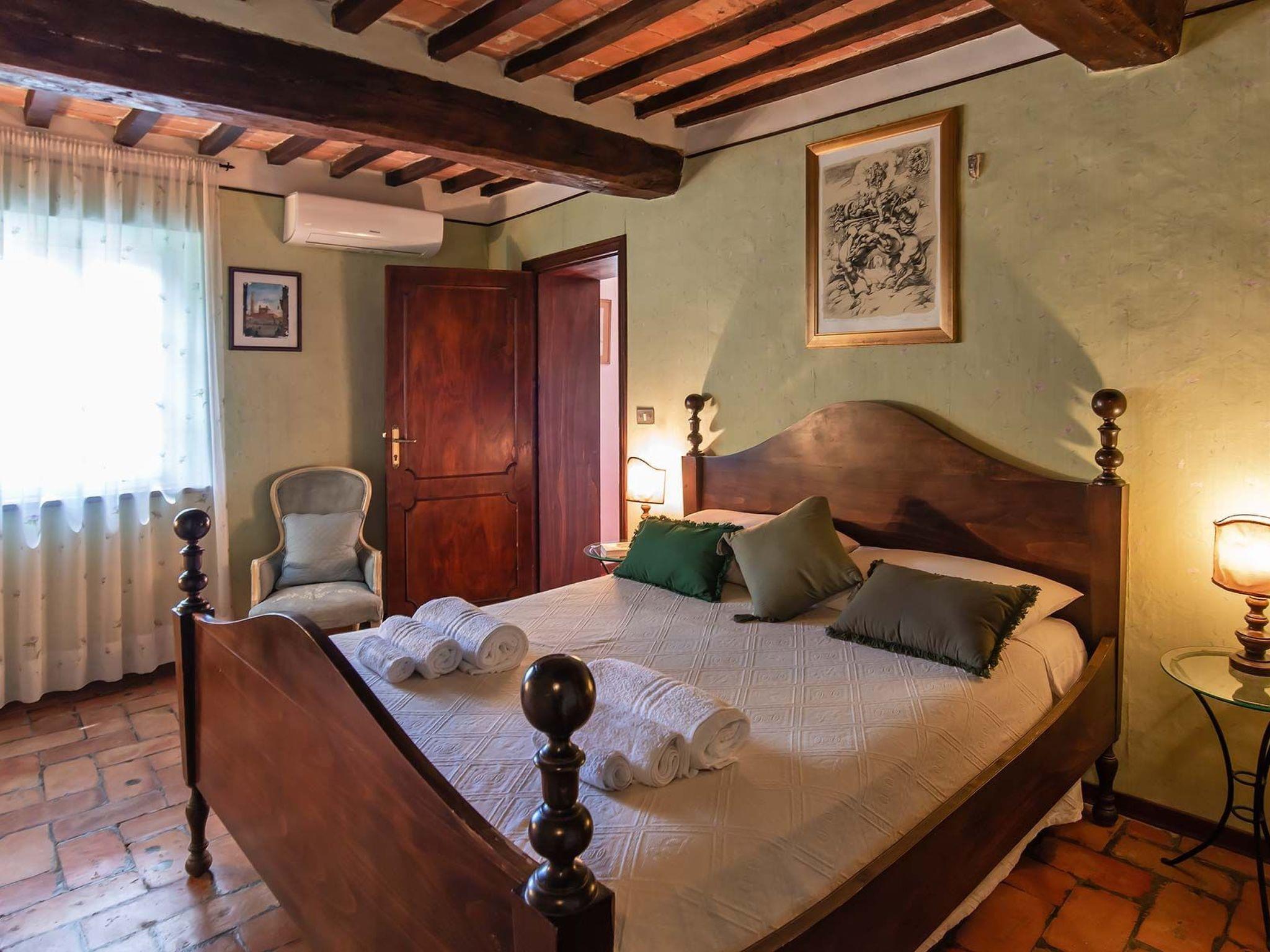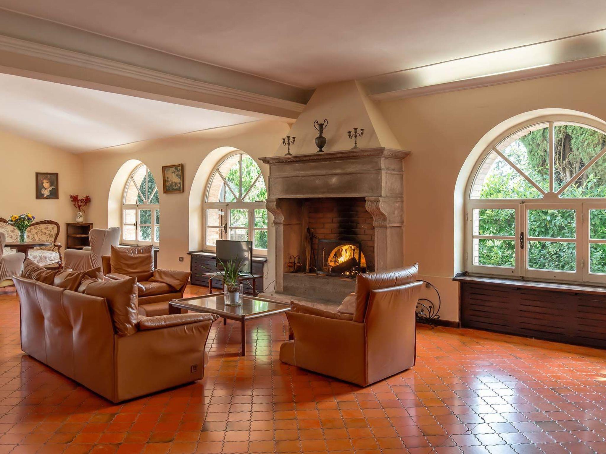 Die Villa besteht aus 2 Etagen: im ersten Stock befinden sich die 5 Schlafzimmer (2 Doppelzimmer, 2 Dreibettzimmer, davon eines mit einem Schlafsofa und 1 Vierbettzimmer mit einem Doppelbett und zwei Einzelbetten) und 6 Bäder sowie ein Wohnzimmer mit einem typisch toskanischen Kamin.