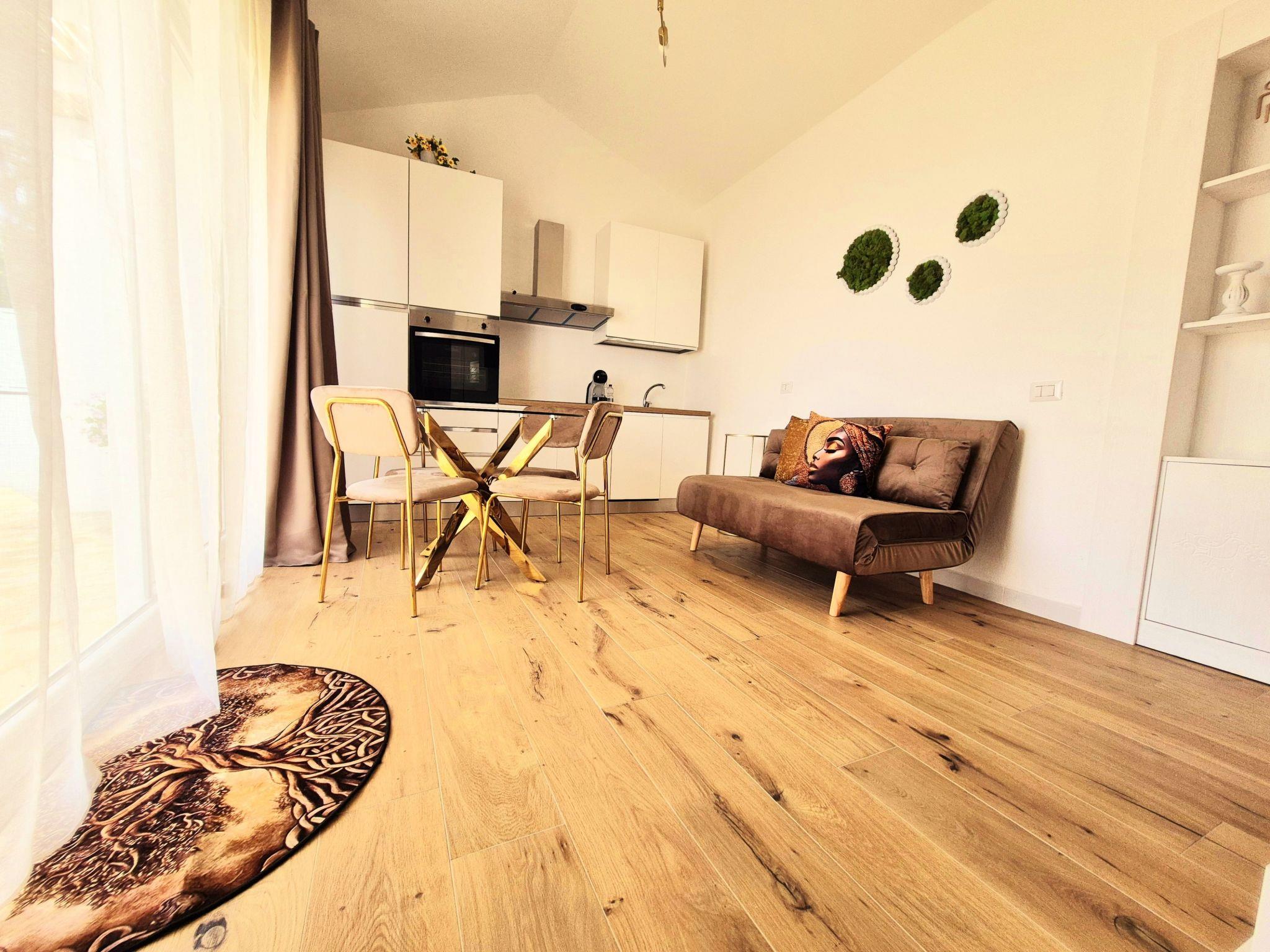 Im Inneren empfängt Sie das Ferienhaus mit allen Annehmlichkeiten, die Ihren Aufenthalt so angenehm wie möglich machen sollen. Ein geräumiges Schlafzimmer lädt zum Ausruhen ein, während das Vorhandensein von modernen Geräten wie einer Waschmaschine zur alleinigen Nutzung, einem Induktionsherd, einer elektrischen Kaffeemaschine und einem Geschirrspüler den Alltag erleichtert. Die Klimaanlage in jedem Zimmer sorgt für eine ideale Temperatur zu jeder Jahreszeit.