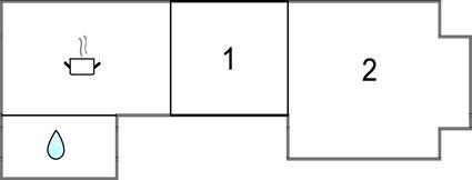 Badezimmer 4m2 (nr. 1) - WC. Warmes und kaltes Wasser. Dusche