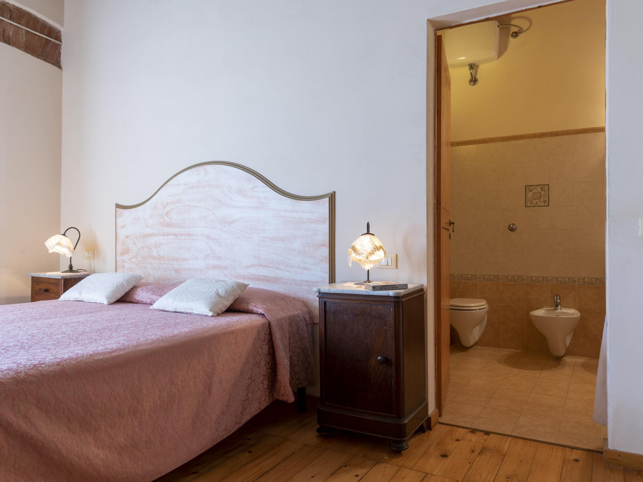 "Antico Convento", 8-Zimmer-Haus 400 m2 auf 3 Stockwerken. Rustikal eingerichtet: Wohn-/Esszimmer mit offenem Kamin, Esstisch und Sat-TV. Ausgang zum Garten. Küche (Backofen, Geschirrspüler, 5 Flammen, Toaster, Mikrowelle, Tiefkühler, elektrische Kaffeemaschine). Sep. WC. Obergeschoss: 1 Doppelzimmer mit Klimaanlage. 1 Zimmer mit 1 Doppeldiwanbett, 1 Doppelbett, Dusche/WC und Klimaanlage. 1 Zimmer mit 1 Doppelbett, Dusche/WC und Klimaanlage. 1 Zimmer mit 1 Doppelbett, Bad/WC, Sprudelbad und Klimaanlage. Dusche/WC. 2. Obergeschoss: Wohnzimmer mit 1 Doppeldiwanbett, Sat-TV und Klimaanlage. 1 Zimmer mit 1 Doppeldiwanbett, 1 Doppelbett, Dusche/WC und Klimaanlage. Ausgang zur Terrasse. 1 Zimmer mit 1 Doppelbett, Dusche/WC und Klimaanlage. Dusche/WC. Ölheizung. Heizung nur verfügbar von 01.11. bis 15.04. Holzdielenboden. Panoramasicht. Zur Verfügung: Waschmaschine, Bügeleisen, Babybett. Internet (Wireless LAN, gratis). E-Ladestation. Bitte beachten: Nichtraucher-Unterkunft. Maximal 2 Haustiere/Hunde erlaubt. Bei Belegung mit weniger Personen als der maximalen Personenzahl steht eine Etage nicht zur Verfügung. IT054009B501014086