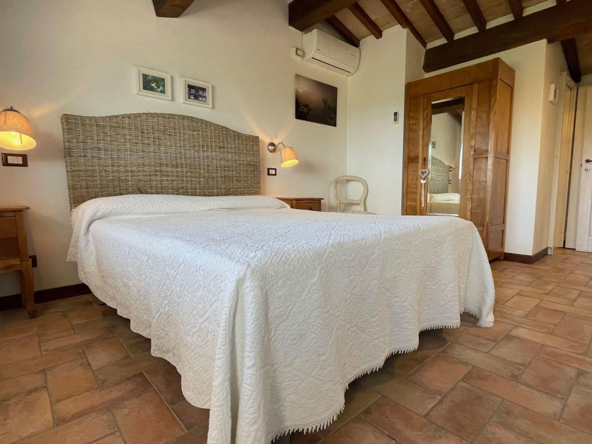 Poggio Cantarello verfügt im zweiten Stock über zwei Doppelzimmer mit eigenem Bad mit Duschkabine, Blick auf die umliegende Landschaft, Holzbalkendecken und einer einfachen Einrichtung mit antiken Arte-Povera-Schränken. Jedes Zimmer hat ein Bad, Satellitenfernsehen, Kleiderschrank, Kommode/Schreibtisch und Wi fi-Internetanschluss. (Kinderbett oder Wiege auf Anfrage) Die Zimmer Den Gästen steht im ersten Stock ein Wohnzimmer mit einem Doppelschlafsofa, einem antiken - und funktionierenden - Kamin, Tisch und Stühlen, Satellitenfernsehen und einer Kochnische mit Elektroofen, Spüle, Gasherd und Kühlschrank zur Verfügung. Der Außenbereich Ein großer Garten mit vielen hohen Bäumen und Olivenbäumen umgibt das Haus 2 Mountainbikes stehen den Gästen kostenlos zur Verfügung.
