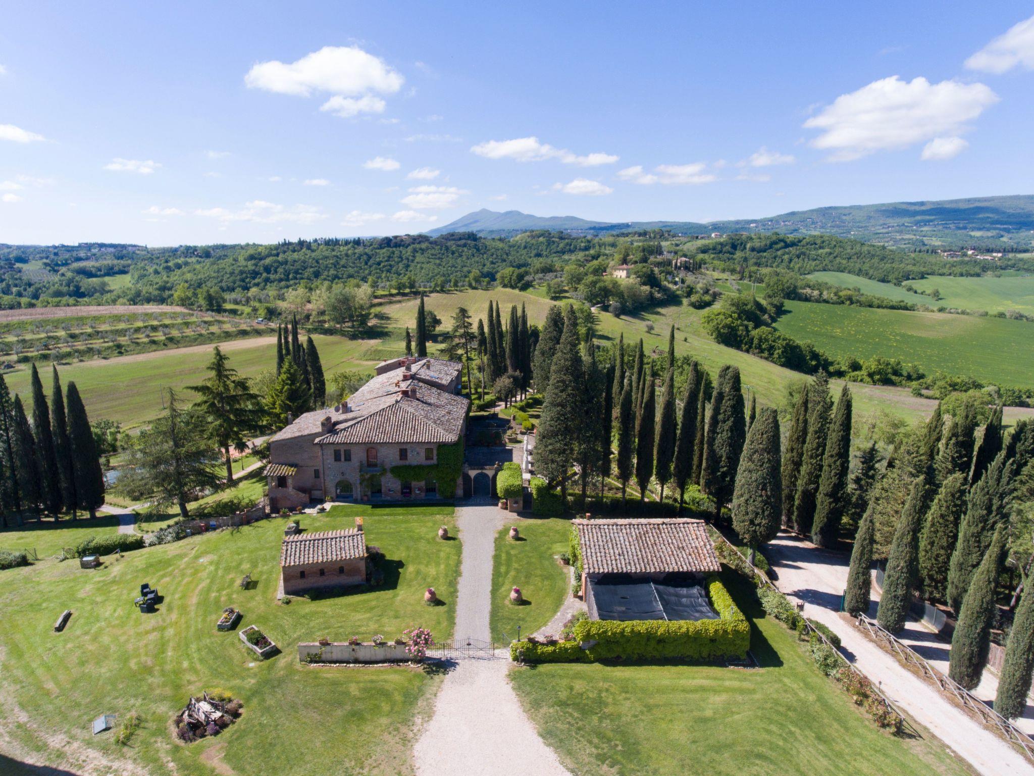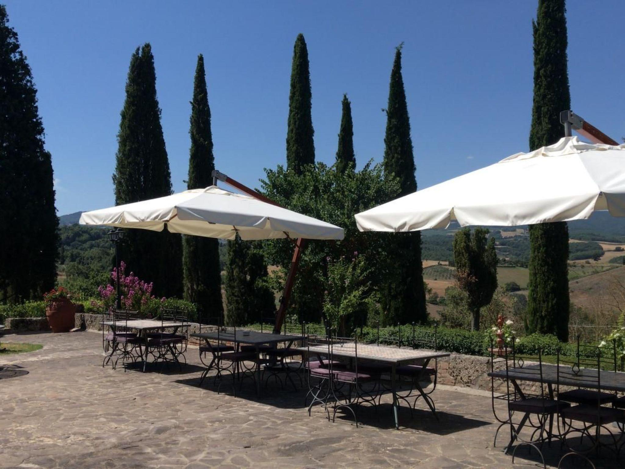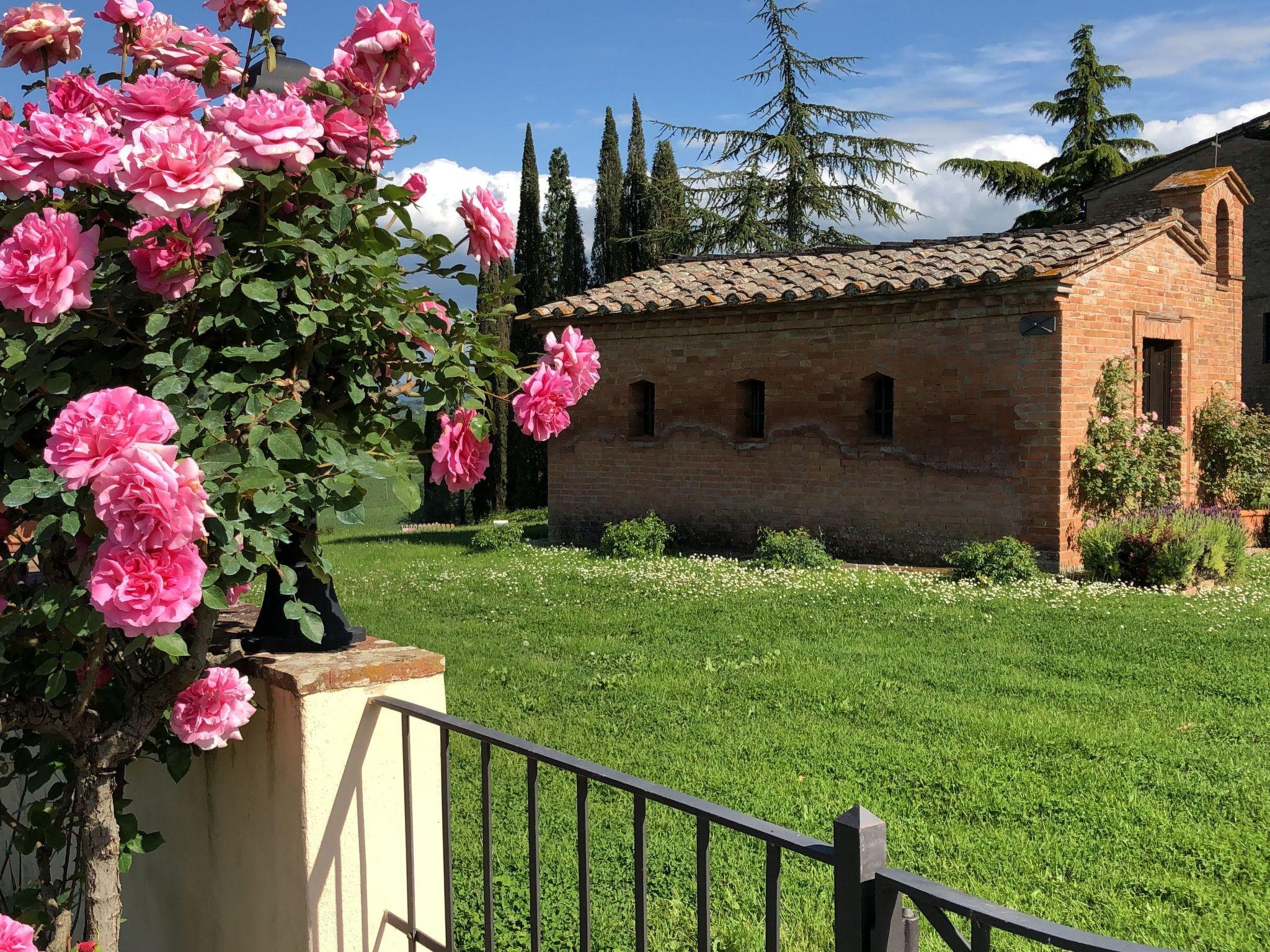 Standort Macciano. Inmitten des herrlichen "Val di Chiana", im ersten Stock eines prächtigen Bauernhauses aus dem 16. Jahrhundert gelegen, das komplett renoviert wurde, genießt die Wohnung einen wunderbaren Blick auf das umliegende Tal dank eines Wohnzimmers, das aus einer antiken Fensterloggia entstanden ist.Vali Wohnung im ersten Stock mit Blick auf den schönen Rosengarten der Villa. Bestehend aus Wohn-Esszimmer, Schlafzimmer mit Doppelbett und kleinem Raum für ein drittes Bett, Kochnische und Bad mit Dusche. Der Außenbereich ist mit Sonnenschirm, Tisch und Stühlen ausgestattet.
