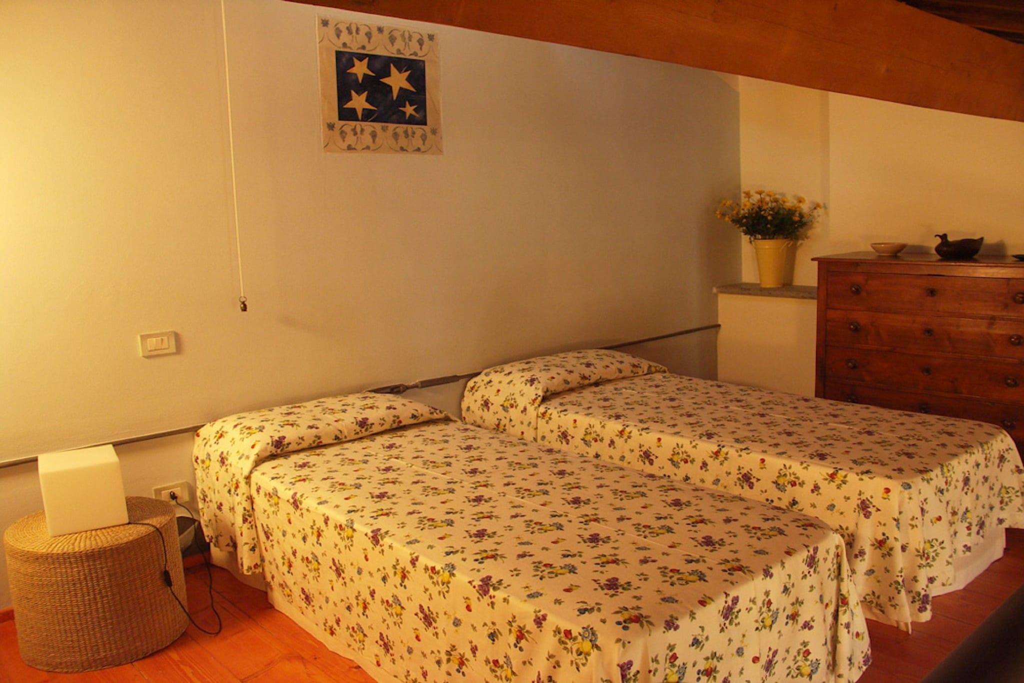 In der malerischen Landschaft von Chiusi gelegen, bietet dieses charmante Ferienhaus einen ruhigen Rückzugsort für bis zu neun Gäste. Das Haus im ersten Stock verbindet rustikale toskanische Eleganz mit modernen Annehmlichkeiten und ist somit ideal für Familien oder Freundesgruppen. Mit einem privaten Pool (13 x 7 m, geöffnet von Juni bis September), einem Garten und einer möblierten Terrasse haben Sie viel Platz zum Entspannen unter der toskanischen Sonne. Der geräumige Innenraum verfügt über eine große Küche mit allen wichtigen Geräten, darunter Herd, Backofen, Geschirrspüler und Kühl-Gefrierkombination. Der gemütliche Wohn-/Essbereich bietet ein Doppelschlafsofa, einen Esstisch und einen dekorativen Kamin für entspannte Abende. Es gibt zwei Doppelzimmer mit eigenem Bad sowie ein Galerieschlafzimmer mit einem Einzel- und einem Doppelbett (oder zwei Einzelbetten) und ein zusätzliches Gemeinschaftsbad – ideal für größere Gruppen. Gäste profitieren von WLAN, privaten Parkplätzen und Fahrrädern, um die wunderschöne Umgebung zu erkunden. Ein lokales Restaurant ist nur 1,1 km entfernt, und die malerische Landschaft der südlichen Toskana bietet unvergessliche Ausblicke und erholsame Spaziergänge. Dieses haustierfreundliche Haus ist eine einladende Oase für alle, die Ruhe, Tradition und einen Hauch des toskanischen Lebensstils suchen.