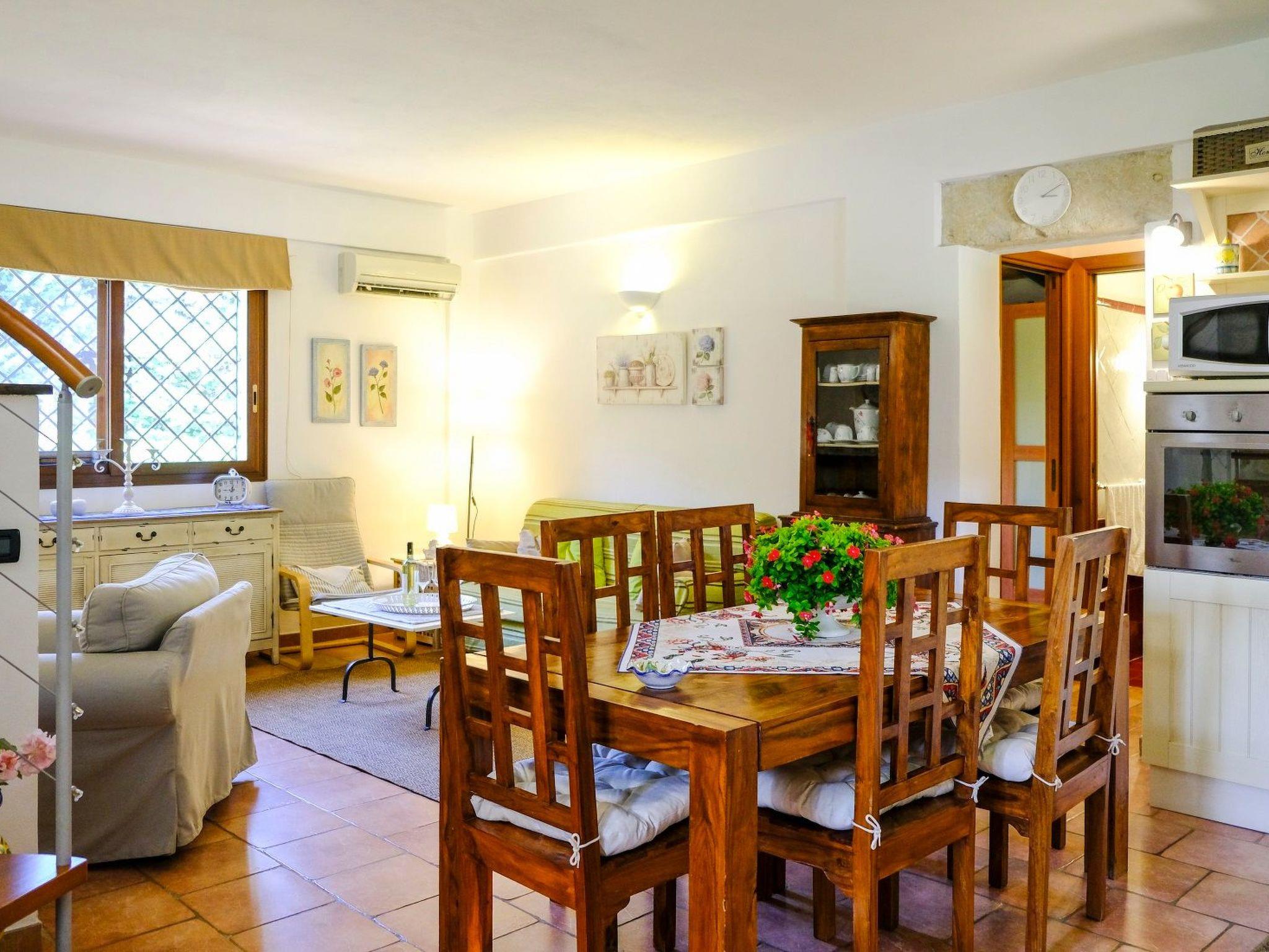 Die Villa ist von einer geräumigen Veranda mit Gartenmöbeln umgeben, von der aus man den Garten und den Swimmingpool überblicken kann. Der schöne Garten, reich an bunten Blumen und mediterranen Pflanzen, ist der perfekte Ort, um entspannende Momente in Kontakt mit der Natur zu verbringen.