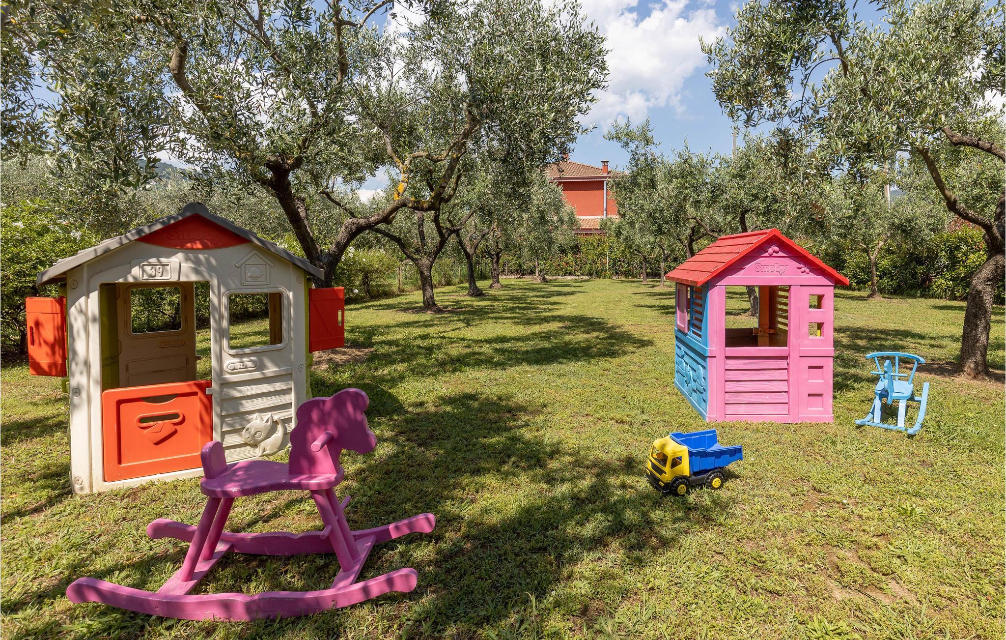 Nur13 km vom Meer entfernt, in Santo Stefano di Magra, befindet sich diese Ferienwohnung in einem Zweifamilienhaus aus dem späten 19. Jahrhundert. Das Haus liegt an der Grenze zu den berühmten Cinque Terre und der mondänen Versilia. Die Wohnung liegt im 1. Stock (ohne Aufzug) eines landwirtschaftlichen Betriebs inmitten von Olivenbäumen (der Eigentümer produziert Wein und Öl auf der anderen Seite des Hauses, dort sind die Felder und ein Lager) und hat einen eigenen Eingang. Der exklusive Außenbereich ist teilweise umzäunt und ausgestattet für Mahlzeiten im Freien, mit gemeinsamer Spielecke. Die Lage ist ideal, um die nahe liegenden Strände zu erkunden, wie: Bocca di Magra (16 km), Ameglia (18 km) und Marinella di Sarzana (12km). Vom Dorf aus kann man den Zug zu den Cinque Terre nehmen. Unumgänglich ist Portovenere (26 km), die „Perle Liguriens“. Der Regionalpark von Montemarcello (20 km) ist ein absolutes „Muss“ für die Liebhaber des Trekkings und bietet eine unglaubliche Sicht, ebenso der Park der Apuanischen Alpen mit Colonnata (34 km), berühmt für den Speck „Lardo di Colonnata“. Für die Liebhaber der Städte gibt es in 12 km Entfernung die alte Hafenstadt La Spezia. Nach Lucca mit imposanter intakter Stadtmauer sind es 69 km. Vor Ort kann man das gute ligurische Olivenöl kaufen. Die letzten 200 m der Zufahrtsstraße sind nicht asphaltiert. Achtung: Vom Haus aus kann man das Geräusch einer 150 m Luftlinie entfernten und von Vegetation verdeckter Autobahn hören. S. auch ILL564. Gratis WLAN : 6 GB pro Woche