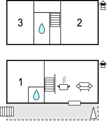 Schlafzimmer (nr. 2) - 1 Schlafmöglichkeit. (Einzelbett(en)). 2 Schlafmöglichkeiten. (Doppelbett(en)).