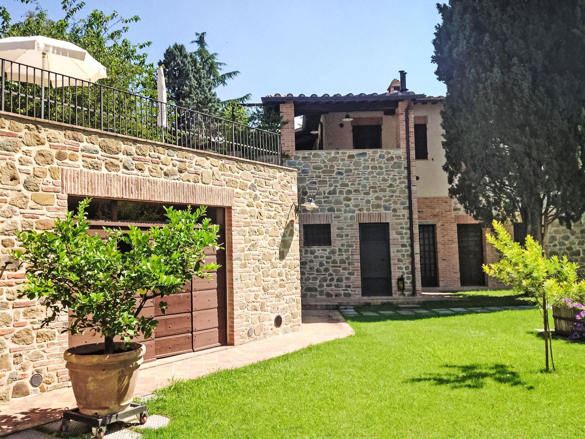 Landsitz "Casa Graziani". 3 Häuser in der Residenz. 9 Wohnungen in der Residenz. Im Weiler Schiacciato, 13 km vom Zentrum von Città della Pieve, 16 km vom Zentrum von Cetona, 46 km vom Zentrum von Perugia, 10 km vom See, im Grünen. Zur Mitbenutzung: Grundstück 4'000 m2 (eingezäunt), gepflegter Garten mit Rasen und Bäumen, Schwimmbad (16 x 8 m, 120 - 180 cm tief, saisonale Verfügbarkeit: 01.Mai. - 30.Sep.). Tischtennis, Feuerstelle, Kinderspielplatz. Im Hause: Sauna (extra). Fitnessraum, Tischfussball, Fahrräder vorhanden. Parkplatz auf dem Grundstück. Supermarkt 3 km, Bushaltestelle 400 m, Bahnstation "Chiusi Scalo" 7 km.
