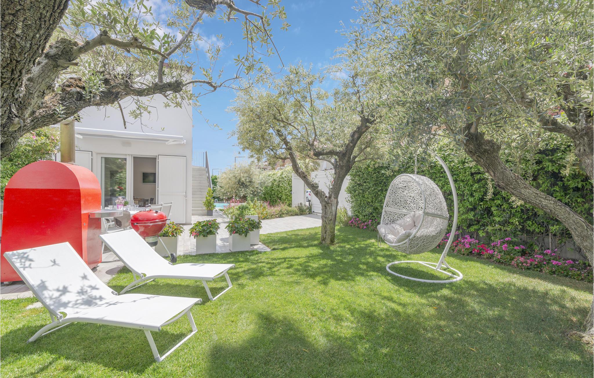 Der großzügige Garten mit alten Olivenbäumen und einem farbenfrohen Spielbereich für Kinder lädt zum Verweilen ein. Entspannen Sie auf einer der Liegen am Pool, der mit einer Hydromassageecke und einer Gegenstromanlage ausgestattet ist. Genießen Sie Wellness pur im Entspannungsbereich mit Whirlpool, Sauna und Hamam. Für kulinarische Höhepunkte steht Ihnen ein Grillplatz zur Verfügung, wo Sie gemütlich im Freien speisen können.