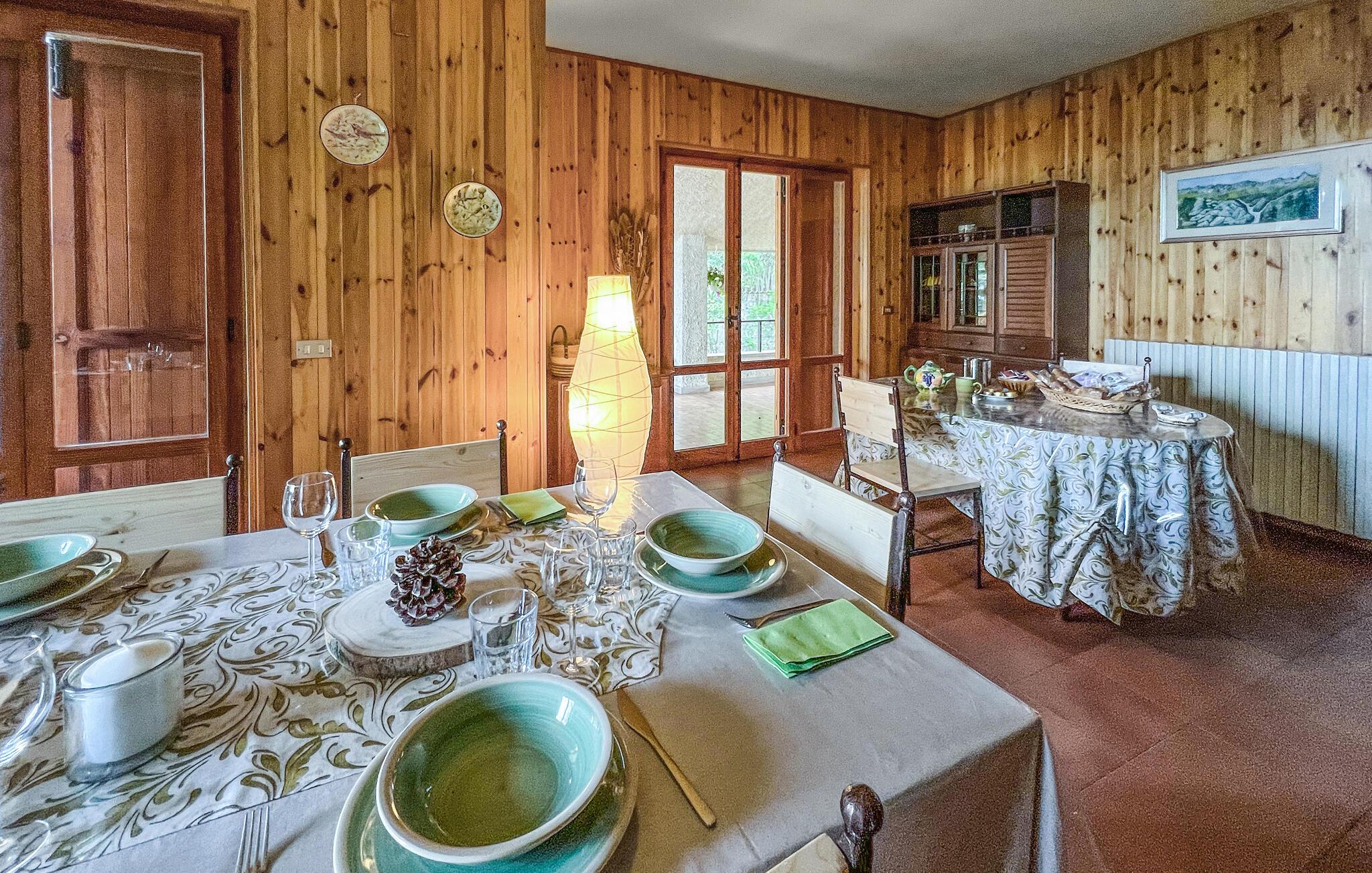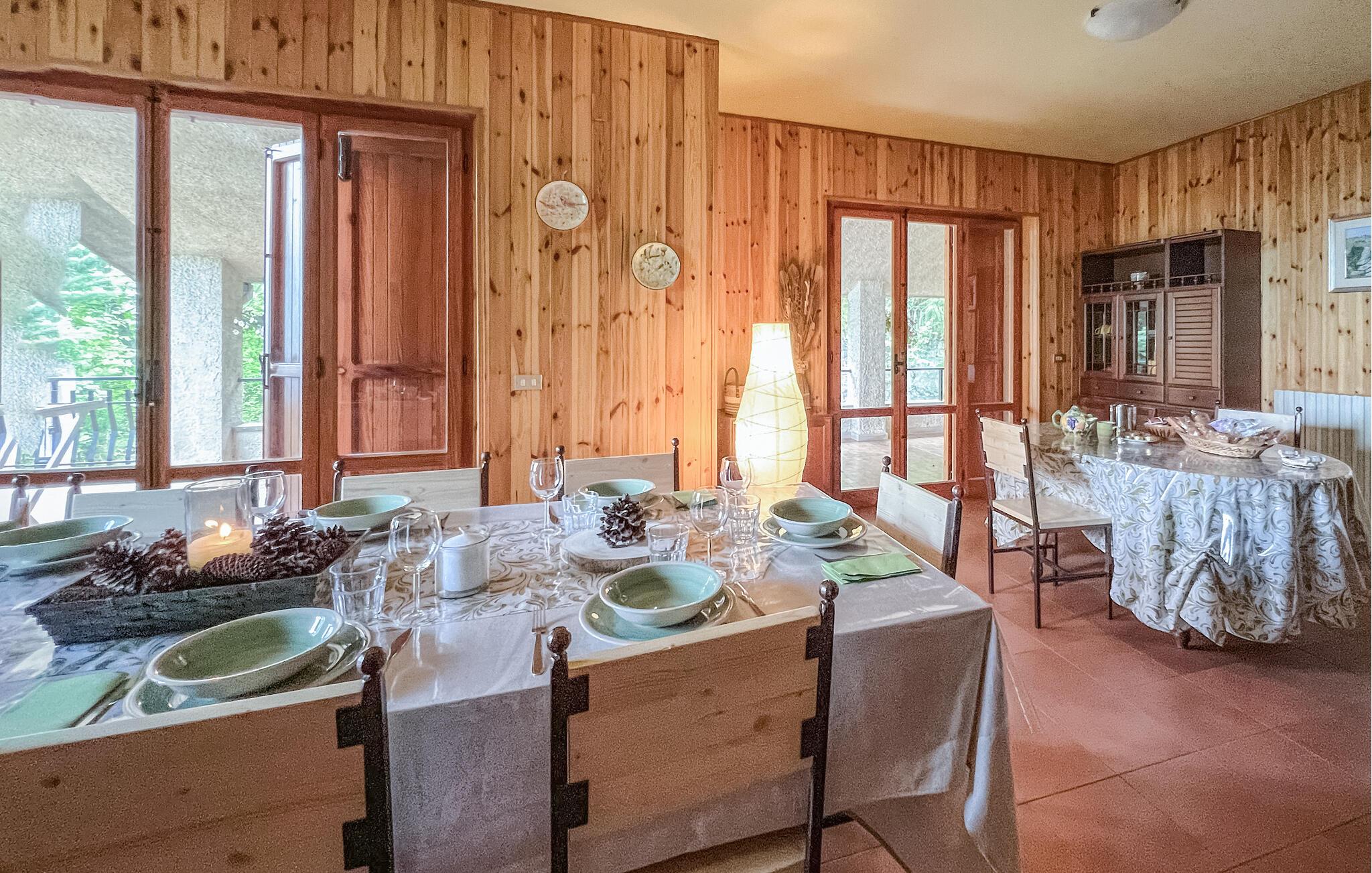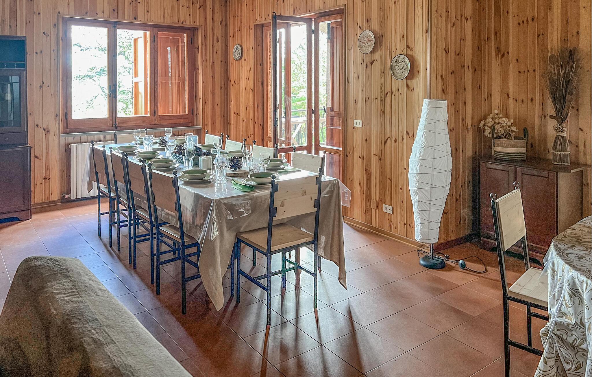 Das Ferienhaus empfängt Sie und Ihre Großfamilie mit einfachem Komfort, bietet aber einen guten Ausgangspunkt für einen Aktivurlaub mit vielen Natur- und Kulturerlebnissen sowie kulinarischen Genuss. Machen Sie es sich in den Zimmern bequem, das hölzerne Innere des Hauses schafft eine gemütliche Atmosphäre. Hier können Sie gemeinsam essen und nach Ihren Ausflügen vor dem Kamin bis spät in den Abend über die Erlebnisse des Tages plaudern.