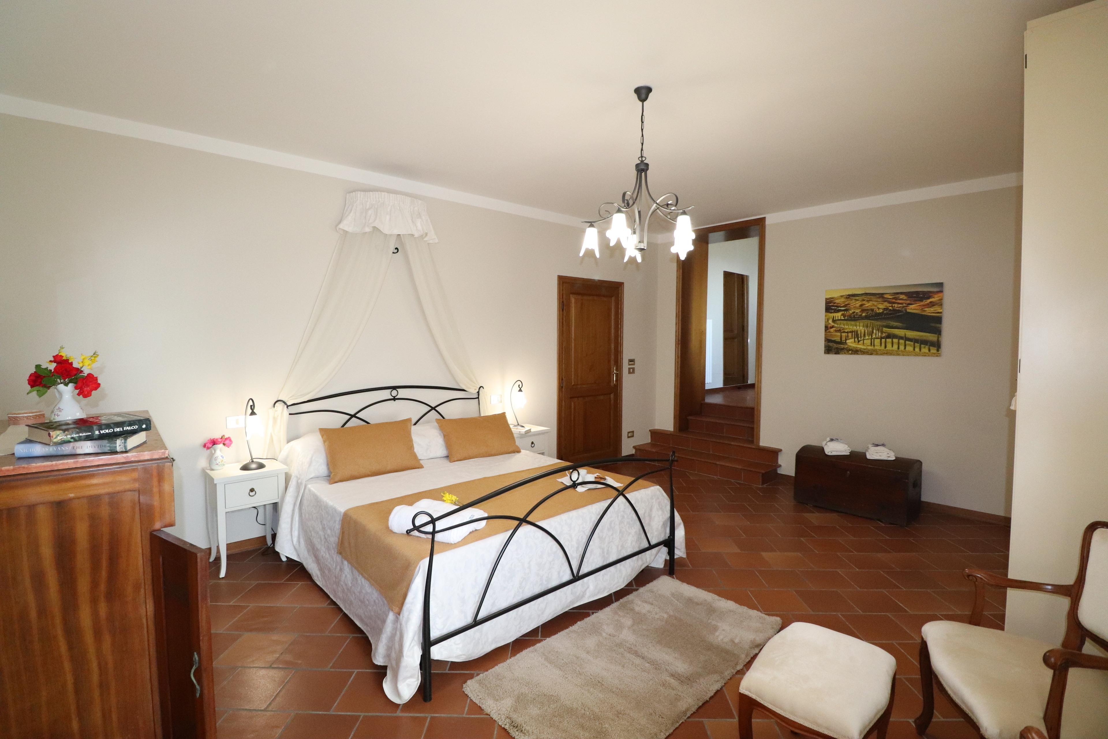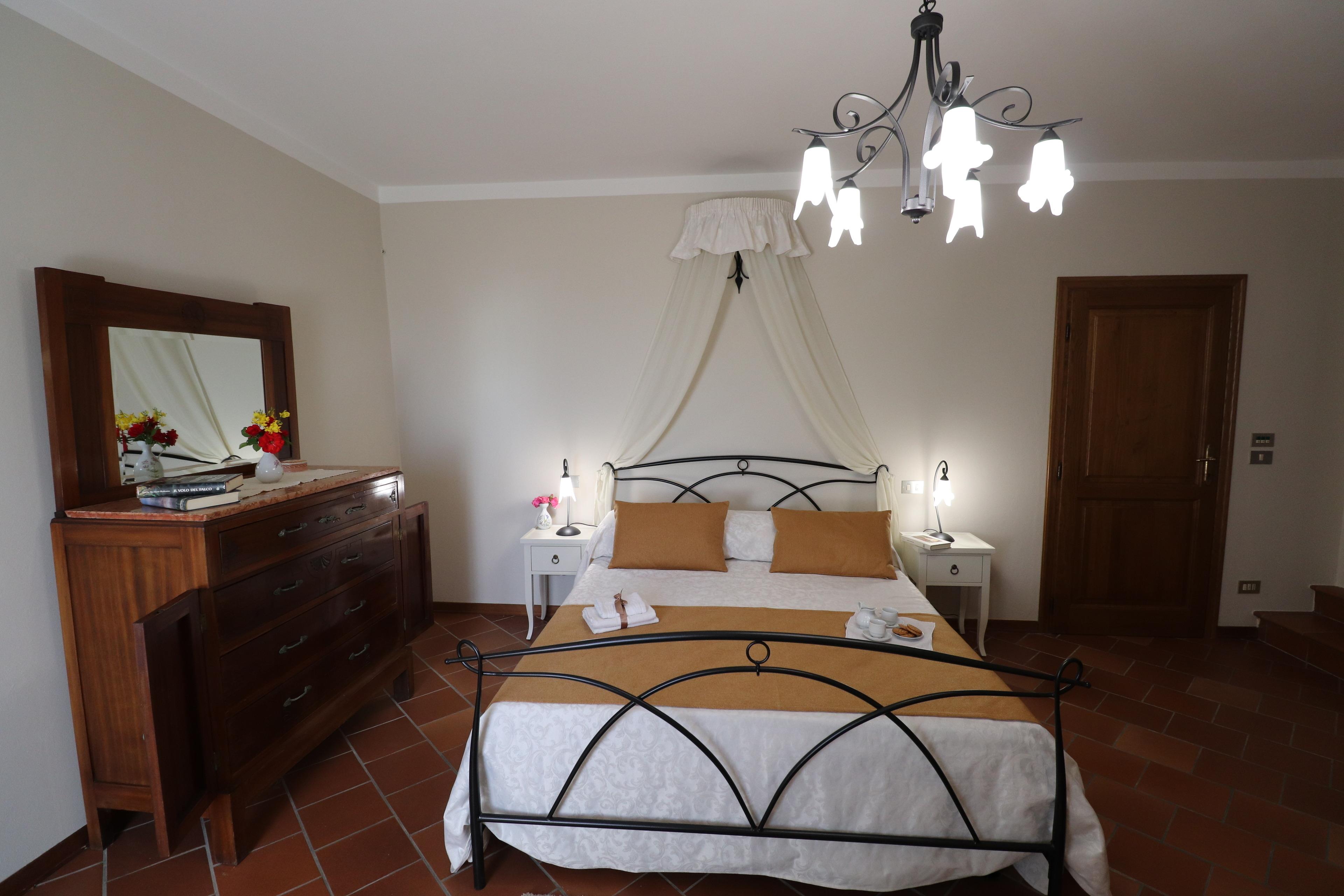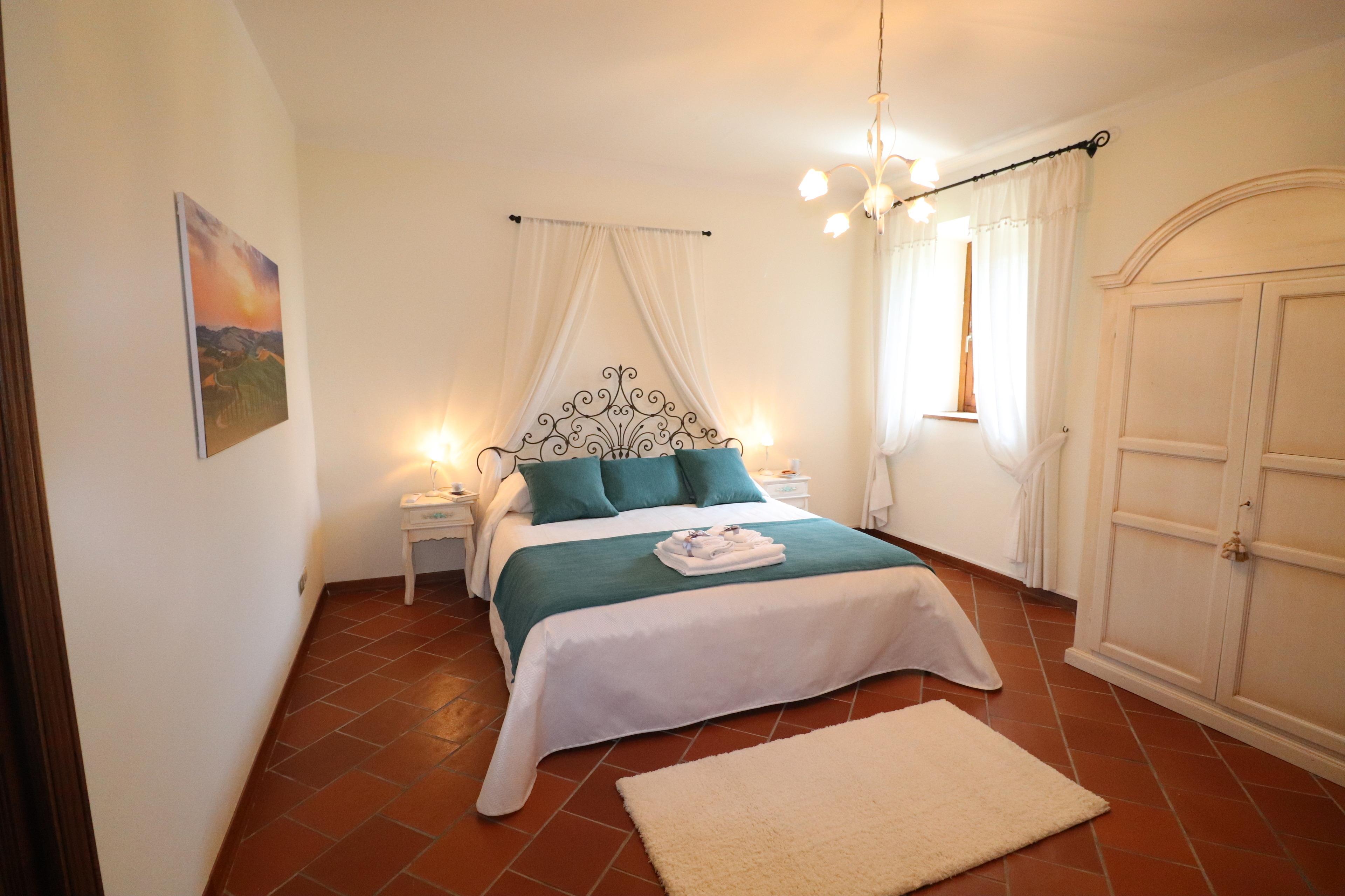 Die Innenräume der Villa Stefi sind geräumig (ca. 400m2) und hell und zeichnen sich durch Hallen mit Decken mit freiliegenden Holzbalken und Terrakotta-Böden im ganzen Haus aus, die an den weltberühmten rustikalen toskanischen Stil erinnern. Die Villa erstreckt sich über zwei Etagen, die sowohl intern als auch über eine Außentreppe aus Stein miteinander verbunden sind. Vom Erdgeschoss aus gelangt man in ein großes Wohnzimmer mit Sofas, Satellitenfernsehen und Kamin. Von dort aus gelangt man in den Essbereich mit Esstisch und angrenzender Küche, die mit allem ausgestattet ist, was man zum Kochen seiner Lieblingsgerichte braucht. Vervollständigen Sie das Erdgeschoss, Klettern 5 Stufen, ein großes Schlafzimmer mit Doppelbett und ein Badezimmer mit Dusche.