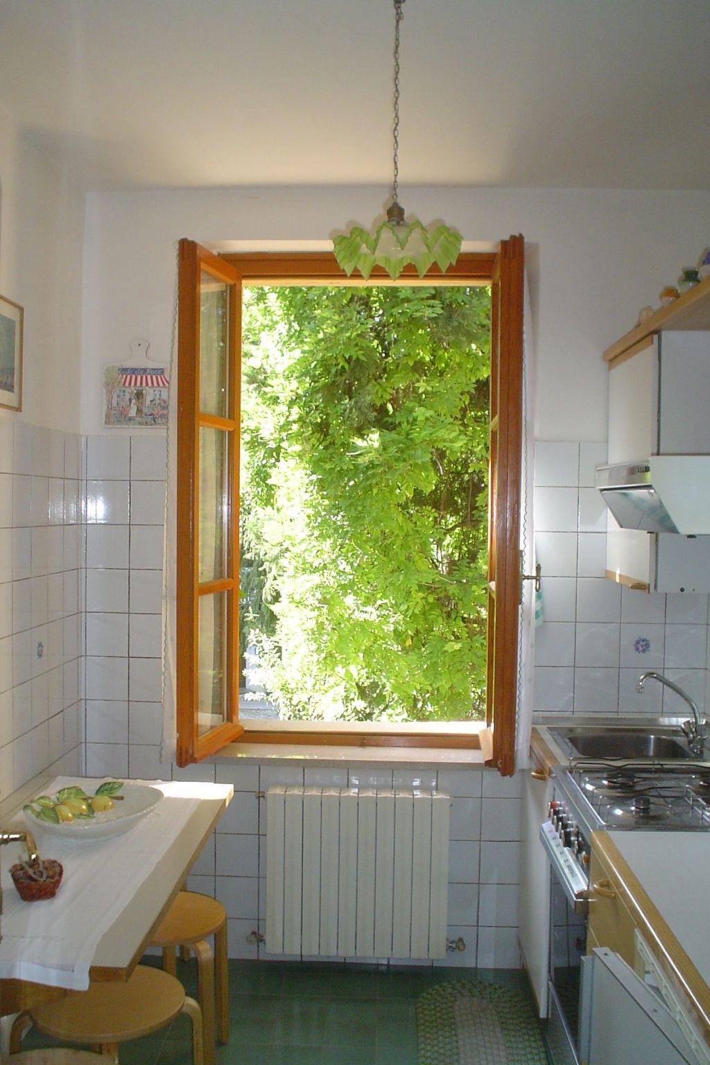 Die Wohnung ist auf 3 Etagen verteilt: Wohnzimmer im Erdgeschoss (30 qm) mit französischen Fenstern und Blick auf den Garten. Eine Natursteintreppe führt in den 1. Stock, wo sich eine Küche (Gasherd, Kühlschrank, Mikrowelle, Geschirr und Töpfe), ein Doppelzimmer (24 qm) und ein Bad (Badewanne/Dusche, Bidet, WC) befinden. Die kleine antike Holztreppe führt in den 2. Stock, wo sich das zweite Schlafzimmer (Doppelzimmer, 24qm) und ein zweites Bad (Dusche, Bidet, WC) befinden. Bei Bedarf kann im Schlafzimmer ein drittes Bett aufgestellt werden. Ein Kinderbett ist ebenfalls vorhanden. Alle Zimmer sind sehr hell und bieten einen Blick auf den Garten oder die Dächer des Dorfes. Es gibt auch einige originale antike Möbel. Heizung in der gesamten Wohnung im Winter, Klimaanlage in beiden Schlafzimmern im Sommer.