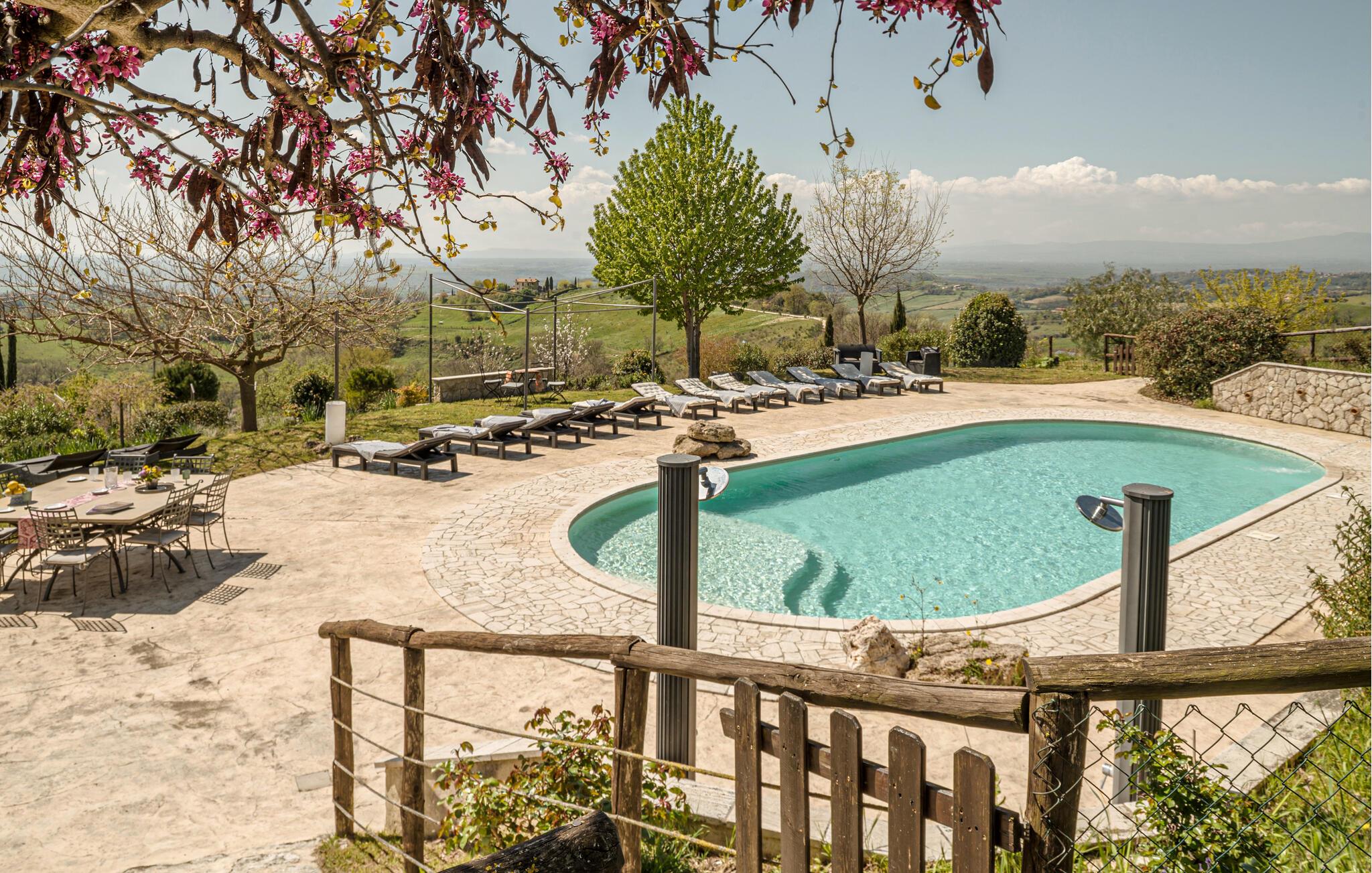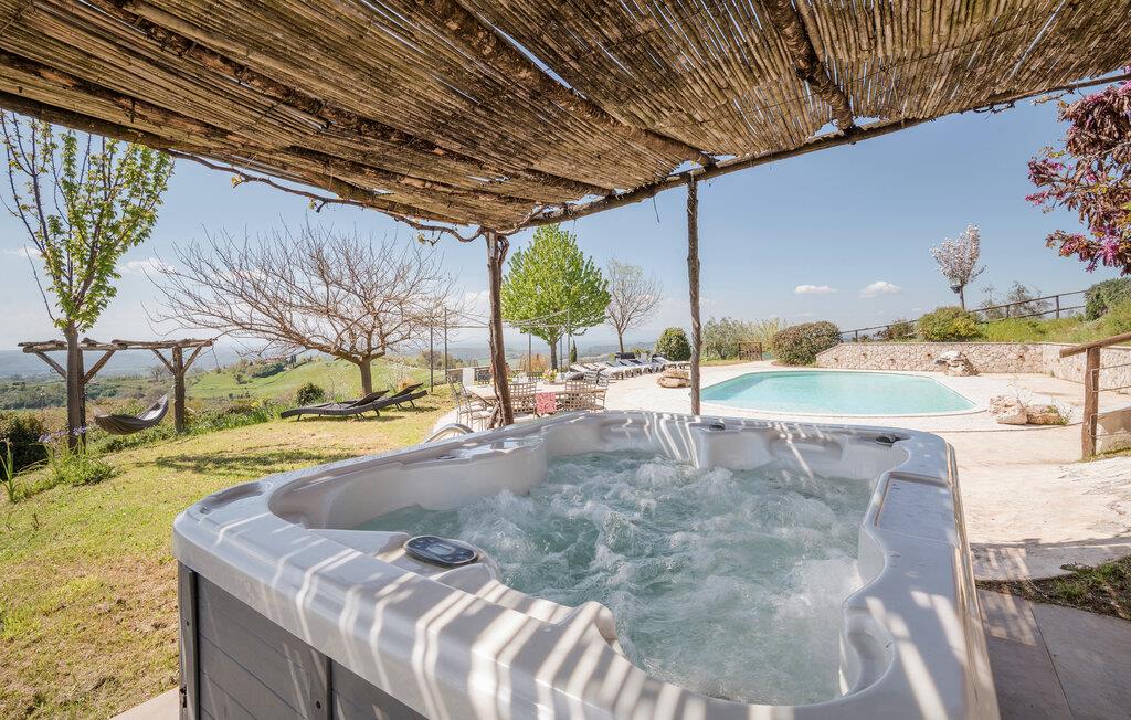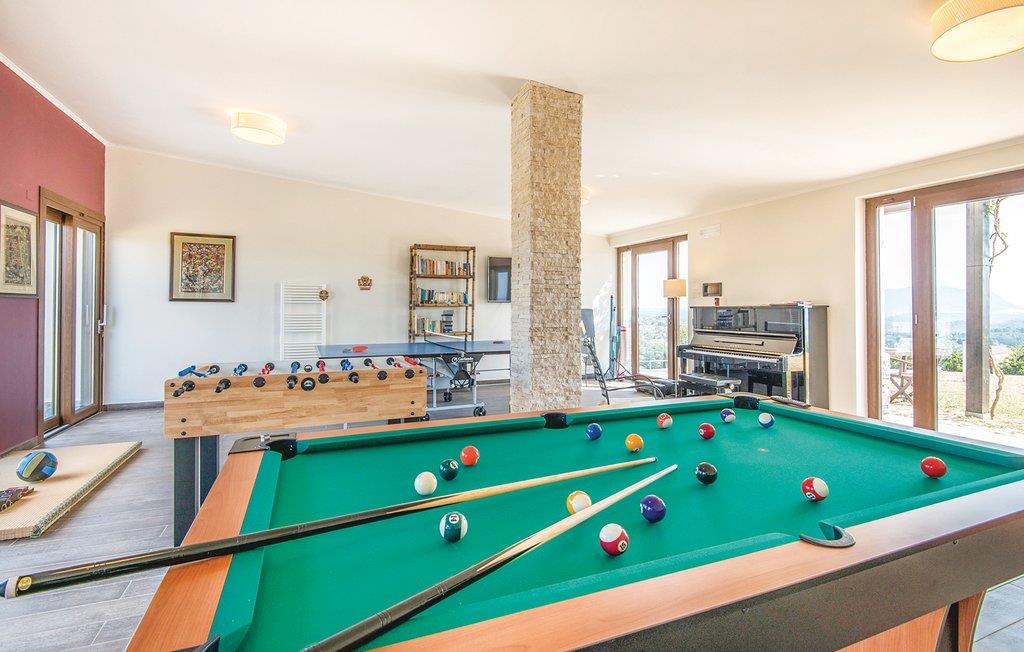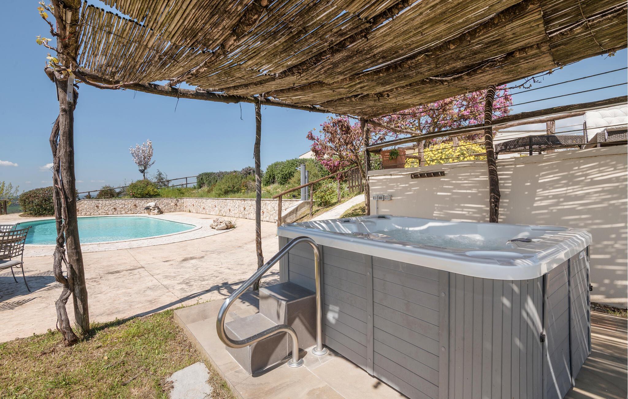 Dieses schöne Ferienhaus mit Pool und Panorama-Whirlpool befindet sich in der charmanten Landschaft der Tuscia, ca. 69 km von Rom entfernt. Das Haus ist die ideale Lösung für Familien oder Gruppen von Freunden. Neben dem Pool und Whirlpool bietet es ein Panorama-Solarium, ein Bereich mit Grill und Backofen mit Veranda für Mahlzeiten im Freien, Mini-Fußballplatz, Volleyballplatz. Im Inneren befindet sich ein großer und heller Erholungsraum mit Tischtennis, Tischfußball, Billard und Videoprojektor, Spa-Raum mit finnischer Sauna, türkischem Bad / Dusche und professionellem Massagetisch (auf Anfrage und nach Vereinbarung kann man Massagen mit Fachpersonal organisieren). Alle Zimmer haben direkten Zugang zum Garten, ein Zimmer zu einem privaten Zen-Garten, ein weiteres Zimmer hat direkten Zugang zu einer privaten Terrasse. Das Grundstück ist komplett eingezäunt und verfügt über internen Parkplatz. Dank der günstigen Lage erreichen Sie von hier aus mehrere touristische Ziele: Rom, "die ewige Stadt", ist ca. 69 km entfernt. Nach Viterbo mit seinen berühmten Thermalbädern und dem mittelalterlichen Stadtteil San Pellegrino sind es 55 km, Orvieto mit seinem imposanten Dom ist 71 km entfernt; Der Bracciano-See mit seinen Stränden 48 km; Tarquinia mit seinen etruskischen Gräbern und dem Meer 100 km. All diese Orte, die nur einige der Möglichkeiten sind, die dieses Gebiet zu bieten hat, erreichen Sie bequem über die Schnellstraße Orte / Viterbo / Tarquinia. Auf Anfrage und gegen Bezahlung stehen zwei Zustellbetten in einem Doppelzimmer zur Verfügung.