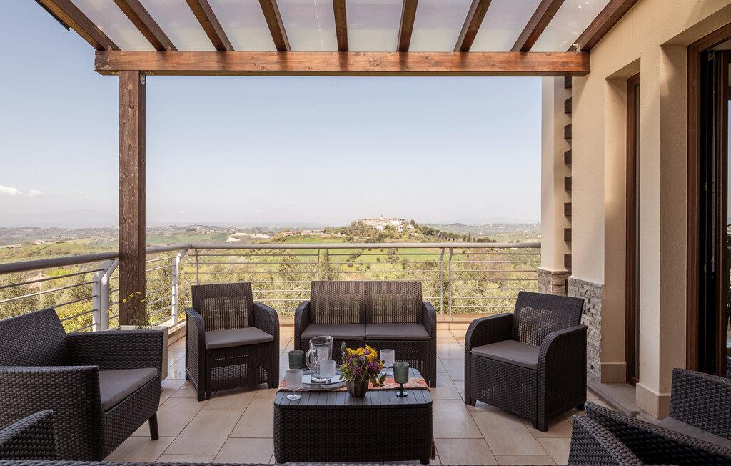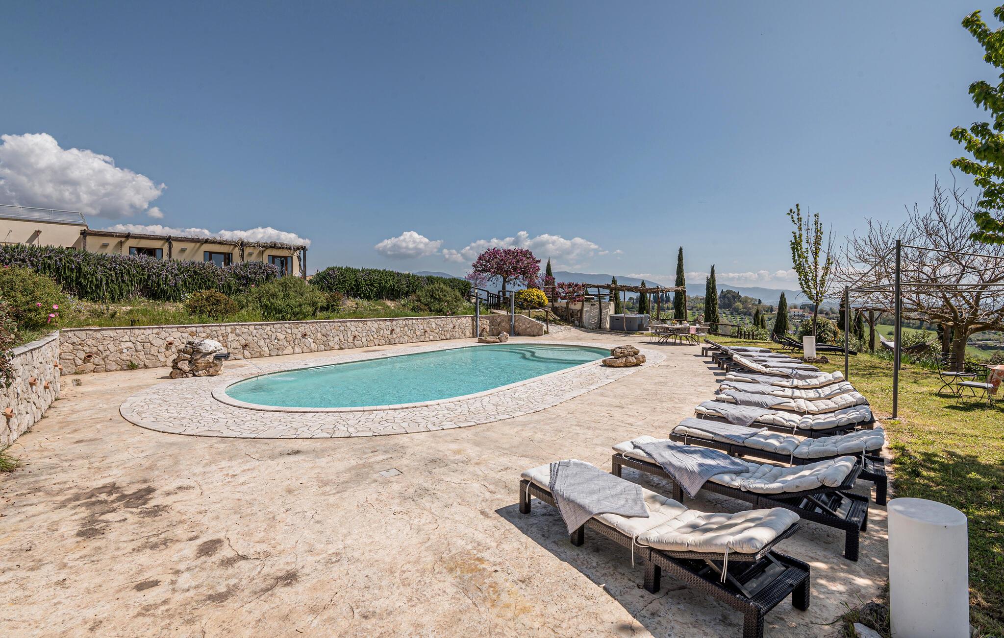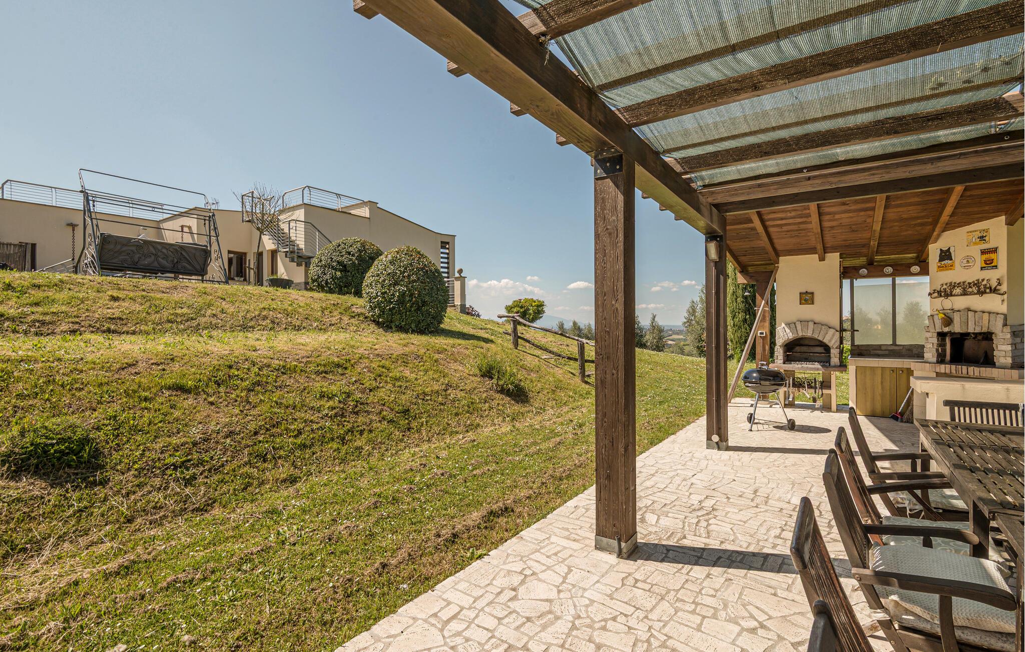 Dieses schöne Ferienhaus mit Pool und Panorama-Whirlpool befindet sich in der charmanten Landschaft der Tuscia, ca. 69 km von Rom entfernt. Das Haus ist die ideale Lösung für Familien oder Gruppen von Freunden. Neben dem Pool und Whirlpool bietet es ein Panorama-Solarium, ein Bereich mit Grill und Backofen mit Veranda für Mahlzeiten im Freien, Mini-Fußballplatz, Volleyballplatz. Im Inneren befindet sich ein großer und heller Erholungsraum mit Tischtennis, Tischfußball, Billard und Videoprojektor, Spa-Raum mit finnischer Sauna, türkischem Bad / Dusche und professionellem Massagetisch (auf Anfrage und nach Vereinbarung kann man Massagen mit Fachpersonal organisieren). Alle Zimmer haben direkten Zugang zum Garten, ein Zimmer zu einem privaten Zen-Garten, ein weiteres Zimmer hat direkten Zugang zu einer privaten Terrasse. Das Grundstück ist komplett eingezäunt und verfügt über internen Parkplatz. Dank der günstigen Lage erreichen Sie von hier aus mehrere touristische Ziele: Rom, "die ewige Stadt", ist ca. 69 km entfernt. Nach Viterbo mit seinen berühmten Thermalbädern und dem mittelalterlichen Stadtteil San Pellegrino sind es 55 km, Orvieto mit seinem imposanten Dom ist 71 km entfernt; Der Bracciano-See mit seinen Stränden 48 km; Tarquinia mit seinen etruskischen Gräbern und dem Meer 100 km. All diese Orte, die nur einige der Möglichkeiten sind, die dieses Gebiet zu bieten hat, erreichen Sie bequem über die Schnellstraße Orte / Viterbo / Tarquinia. Auf Anfrage und gegen Bezahlung stehen zwei Zustellbetten in einem Doppelzimmer zur Verfügung.