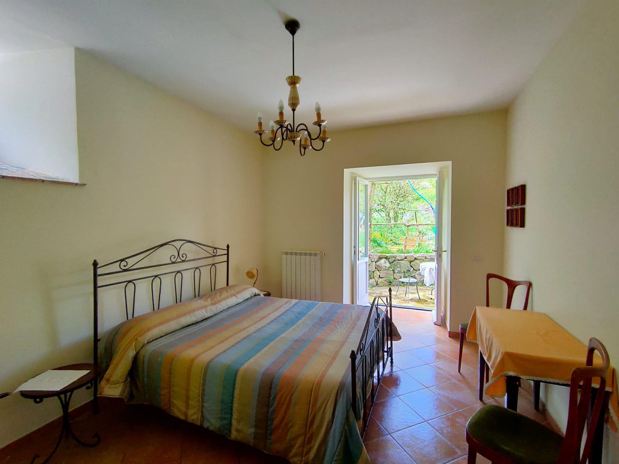 Das Doppelzimmer befindet sich im Bauernhaus. Es hat einen eigenen Eingang und einen Außenbereich in einem Zitronengarten. Das Bauernhaus liegt an einer alten, ruhigen kleinen Straße, die die Colli di Fontanelle mit dem Weiler Trasaelle verbindet, zwei Teile der gleichen Gemeinde Sant'Agnello. Der Ort ist wirklich friedlich und in einen Garten mit Olivenbäumen eingebettet, der sich über die Vorderseite des Hauses und seine Terrassen erstreckt, die zu einem kleinen Haselnusshain hin abfallen. Vom Garten und vom Speisesaal aus, wo wir unseren Gästen das Frühstück servieren, hat man einen Blick auf den Golf von Neapel und den Vesuv.