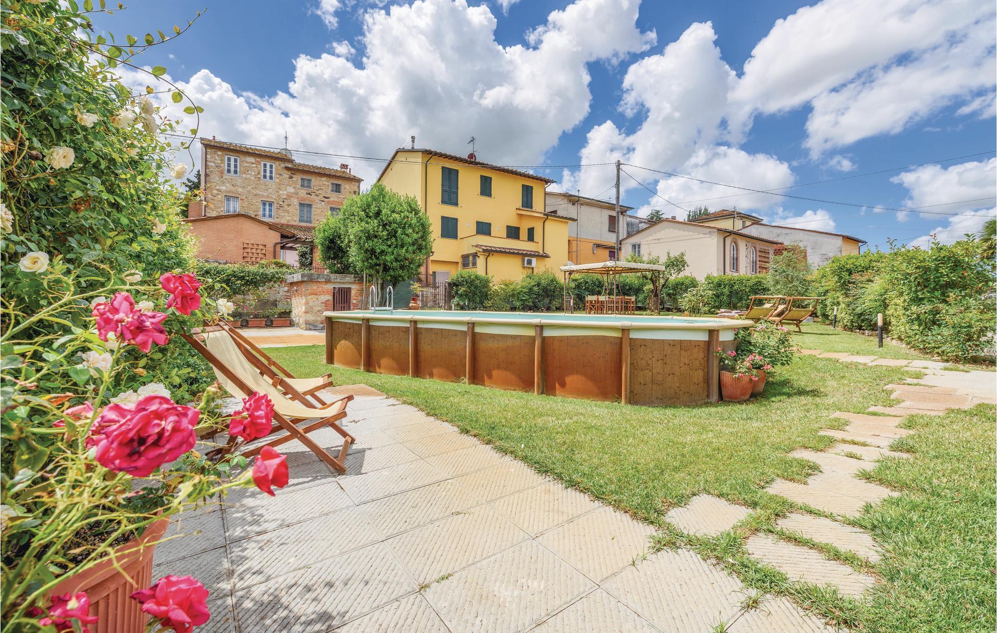 Zweifamilienhaus auf 3 Ebenen (Erdgeschoss, 1. und 2. Stock) in einem antiken renovierten Gebäude aus Stein. Das Haus befindet sich in einem Dorf auf dem Land in Valle di Compito an den Füßen von Hügeln mit Wald in der Nähe von Lucca. Aussicht auf Wälder und auf das Land des Tals. Eine nur mäßig befahrene Nebenstraße verläuft in der Nähe. Die Anlage verfügt über einen eingezäunten Bereich, einen Parkplatz für Autos und ein automatisches Eingangstor. Hinter dem Haus gibt es einen Außenbereich mit Tisch, Stühlen, Sonnenschirm und Grill für Mahlzeiten im Freien; nebenan, von einer kleinen privaten Straße abgetrennt, ein eingezäunter ausgestatteter Garten (300m2- Tisch, Stühle, Sonnenliege, Liegestühle) mit Bäumen und beleuchtetem Pool (8,5x3,5). Im Außenbereich befindet sich ein kleines Nebengebäude, eine zweite Küche, wo sich auch ein Pizzaofen und die Waschmaschine befinden. Möglichkeit der Besichtigung einer archäologischen Stätte mit antiken romanischen Bauernhöfen ganz in der Nähe und ebenfalls in der Umgebung Fallschirmspringen und Fischfang. Kinderbett und Kinderstuhl im Mietpreis inklusiv. Entfernungen: Lucca 7km, Pisa 32km, Florenz 65km, Restaurant 0,2km, Geschäfte aller Art und Tennis 2km, Reitschule 5km, Strände 37km.