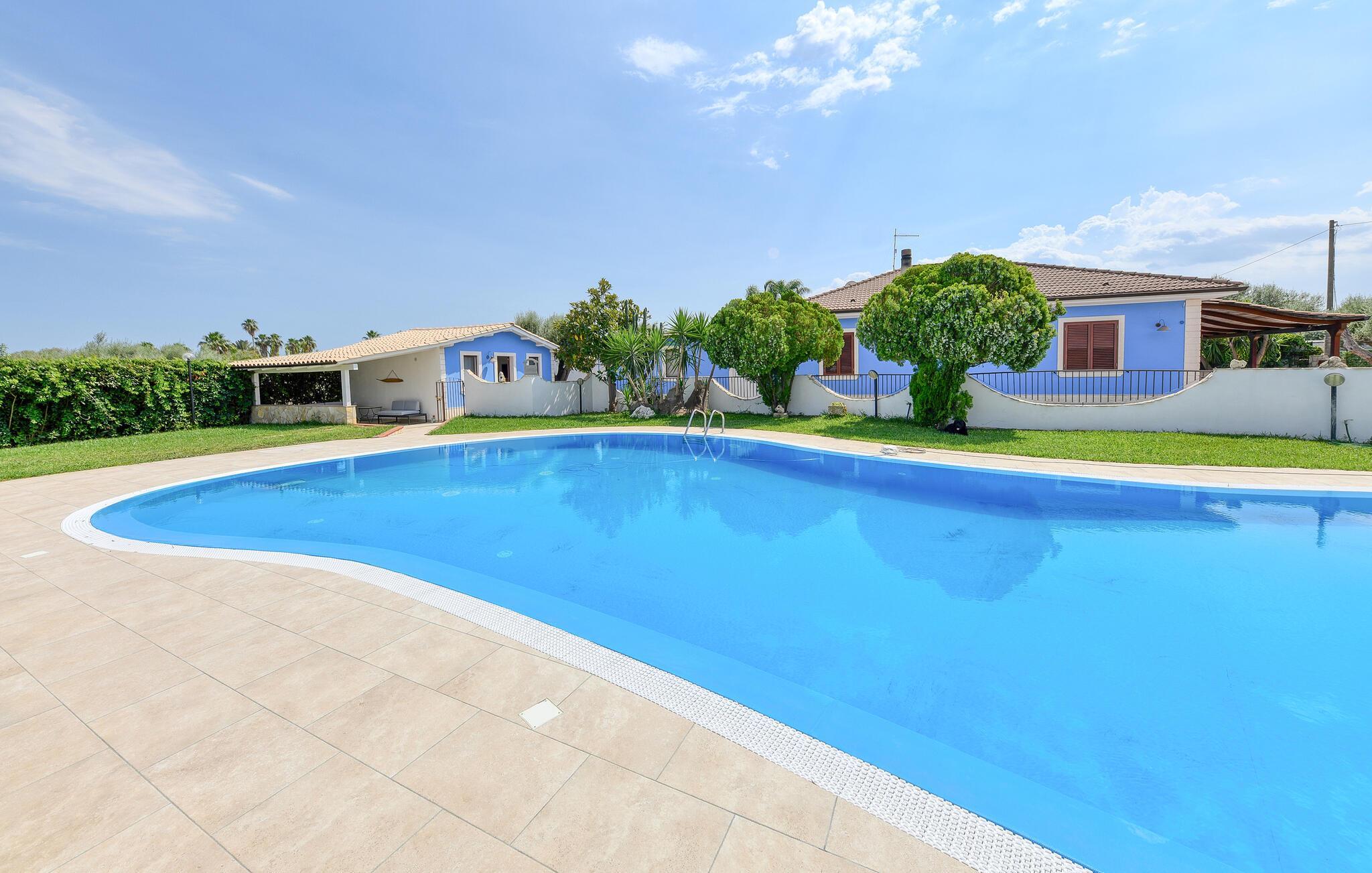 Freuen Sie sich auf einen herrlichen Urlaub in diesem schön gelegenen Ferienhaus mit Pool.