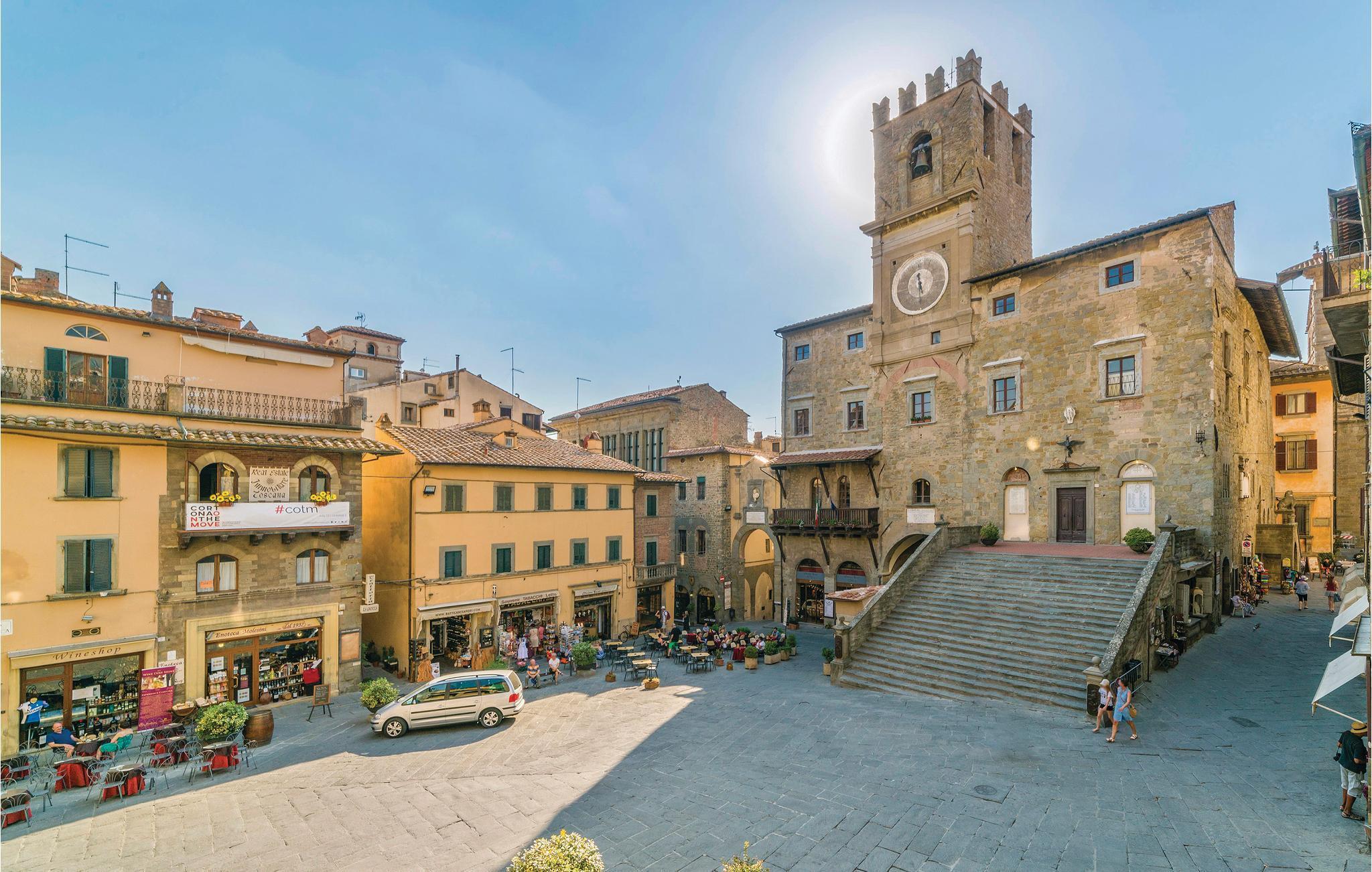 Nach Cortona sind es 18 km, zum Lago Trasimeno mit seinen Sandstränden und kleinen Inseln 30 km; für Stadtbesichtigungen haben Sie die Wahl zwischen vielen sehenswerten toskanischen und umbrischen Städten und Städtchen wie Castiglion Fiorentino 30 km, Arezzo 40 km, Città di Castello 25 km, Perugia 50 km. Unasphaltierte Zufahrt (1,2 km).