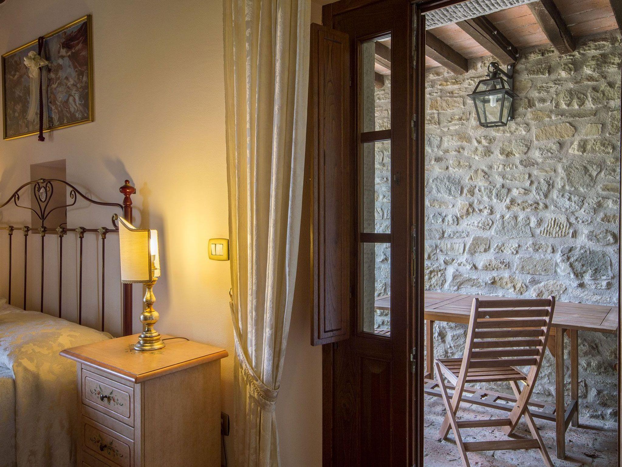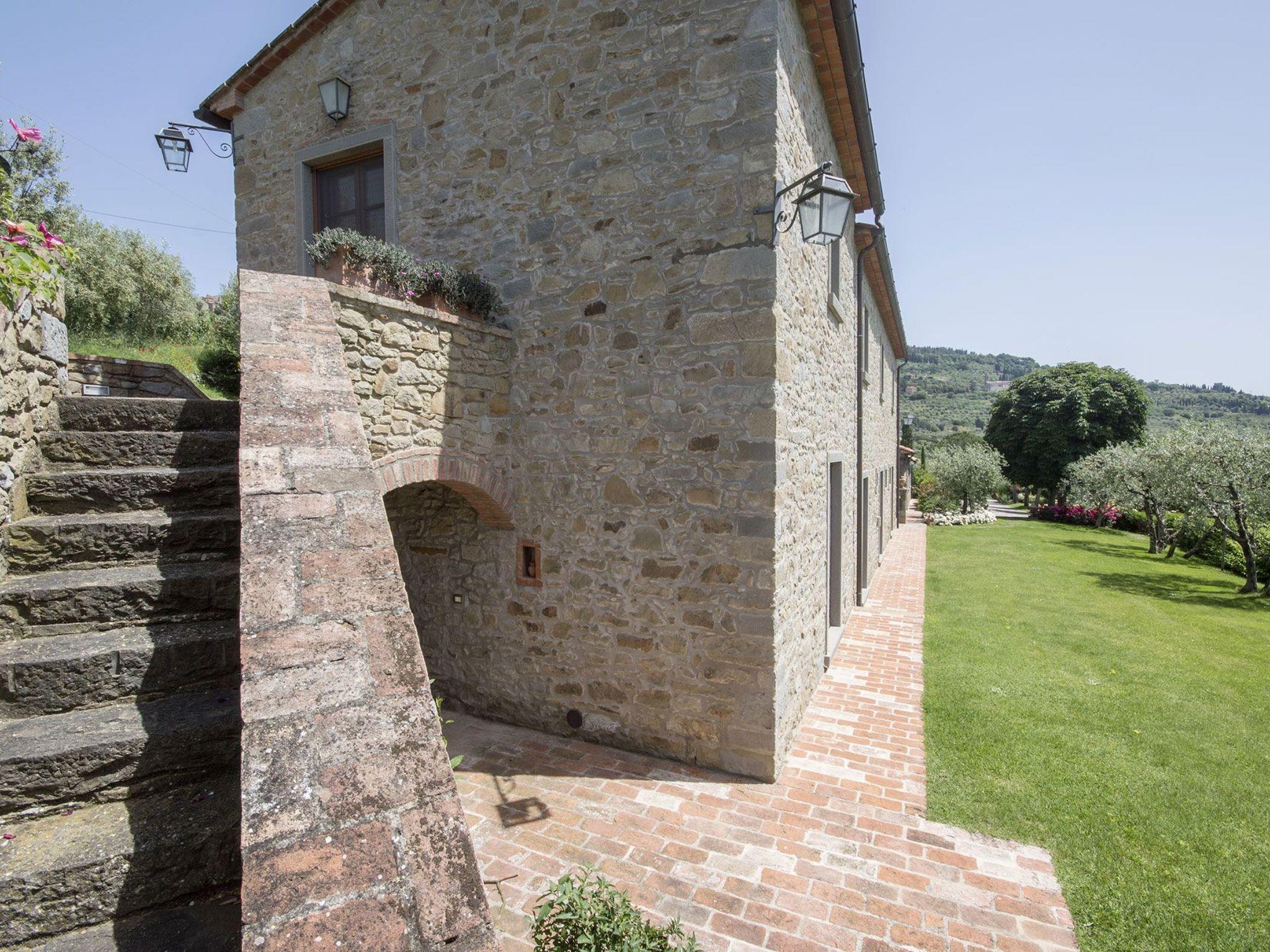 Die erst kürzlich renovierte, ganz aus Stein gebaute Villa liegt inmitten eines großen, gepflegten Gartens mit vielen verschiedenen Pflanzen und Blumen. Ihre Lage macht sie zu einem idealen Ausgangspunkt für die Erkundung der schönsten Städte der Toskana und Umbriens, wie Cortona, Montepulciano, Montalcino, Perugia, Assisi, Pienza, Florenz und viele andere, die alle in weniger als einer Stunde mit dem Auto oder dem Zug erreichbar sind.